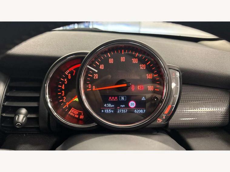 Acoustic seat-belt warning, Basic bluetooth function with USB audio, Brake fluid level warning light, Brake pad wear indicator warning light, DTC - Dynamic traction control, Exterior temperature gauge, Intelligent emergency call, MINI TeleServices, Oil level indicator, On board computer, Push button starter, Service interval indicator, Servotronic PAS, Electronic differential lock, Auxiliary input socket, DAB digital radio module, 2 speed wipers+intermittent wipe, Aluminium tailgate, Anti dazzle mirror, Anti trapping/one touch open close front windows, Body coloured bumpers, Chrome bezels around rear lights and headlights, Chrome door handles, Chrome exhaust tailpipe, Chrome grille surround, Chrome plated trim on bottom edge of window, Chrome strip on lower grille, Electric front windows, Electric rear windows, Electrically adjustable door mirrors, Flared wheel arches, Follow me home headlights, Green tinted heat insulating glass, Heated door mirrors/heated windscreen washers, Heated rear window with auto timer, High gloss black tailgate, LED fog lights, LED rear lights, Rear wiper, Side scuttles, White indicator lights, 2 rear head restraints, 4 boot load lashing points, 4 way manually adjustable passenger seat with height, reach, tilt, backrest and headrest, 6-way manually adjustable driver's seat, Active carbon filter, Adjustable front seats backrest, Air recirculation system, Auxiliary socket in centre console storage compartment, Centre console storage, Driver's seat height adjuster, Driver/passenger sunvisors, Front and rear cupholders, Front head restraints, Front passenger grab handle, Gear/selector and handbrake in artificial leather, Internal chrome door handles, Isofix child seat preparation, Luggage compartment lighting, Multifunction steering wheel, Reach + rake adjustable steering column, Rear grab handles, Rear storage trays, Split folding rear seats, Storage compartments in doors, Toolkit in luggage compartment, 3 point seatbelts, 3x3 point rear seatbelts, ABS/EBD, ASC+T, Cornering brake control (CBC), Crash Sensor - activates hazard/interior lighting + unlocks doors, Driver and passenger airbags, Driver/front passenger side airbags, DSC - Dynamic Stability Control, Fuel cut off safety device, Head airbags, Hill start assist, Passenger airbag deactivation system, Seatbelt pretensioners, Tyre pressure warning, Ventilated front disc brakes, Drive away door locking, Locking wheel bolts, Remote central locking/doors+fuel cap+tailgate, Second remote key, Thatcham category 1 alarm + immobiliser,