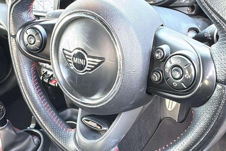 Acoustic seat-belt warning, Basic bluetooth function with USB audio, Brake fluid level warning light, Brake pad wear indicator warning light, DTC - Dynamic traction control, Exterior temperature gauge, Intelligent emergency call, MINI TeleServices, Oil level indicator, On board computer, Personal Profile, Service interval indicator, Servotronic PAS, Stop/start button, Electronic differential lock, 6.5" touchscreen, Auxiliary input socket, DAB digital radio module, Anti dazzle mirror, Anti trapping/one touch open close front windows, Body colour scoop integrated into engine- compartment lid, Body coloured bumpers, Chrome bezels around rear lights and headlights, Chrome door handles, Chrome plated fuel cap, Chrome plated radiator grille, Electric front windows, Electrically adjustable door mirrors, Follow me home headlights, Heated door mirrors, Heated rear window with auto timer, Heated windscreen washer jets, High gloss black tailgate handle, Honeycomb radiator grille, LED fog lights, LED rear lights, Metal look door sill finishers, Twin chromed exhaust pipes, White indicator lights, 2 rear head restraints, 4 boot load lashing points, 50/50 split folding rear seats, 6-way manually adjustable driver's seat, Active carbon filter, Auxiliary socket in centre console storage compartment, Centre console storage, Driver/passenger sunvisors and vanity mirrors, Easy entry seats, Front and rear cupholders, Front head restraints, Front sports seats with front seat backrest storage nets, Gear/selector and handbrake in artificial leather, Glovebox, Internal chrome door handles, Isofix child seat preparation, Luggage compartment lighting, Multifunction steering wheel, Reach + rake adjustable steering column, Stainless steel pedals with rubber inserts, Storage compartments in doors, Toolkit in luggage compartment, 3 point seatbelts, ABS/EBD, ASC+T, CBC - (Cornering brake control), Crash Sensor - activates hazard/interior lighting + unlocks doors, Driver and passenger airbags, Driver/front passenger side airbags, DSC - Dynamic Stability Control, Fuel cut off safety device, Head airbags, Hill start assist, Passenger airbag deactivation system, Seatbelt pretensioners, Two tone horn, Tyre pressure warning, Drive away door locking, Keyless Start, Locking wheel bolts, Remote central locking/doors+fuel cap+tailgate, Second remote key, Thatcham category 1 alarm + immobiliser,