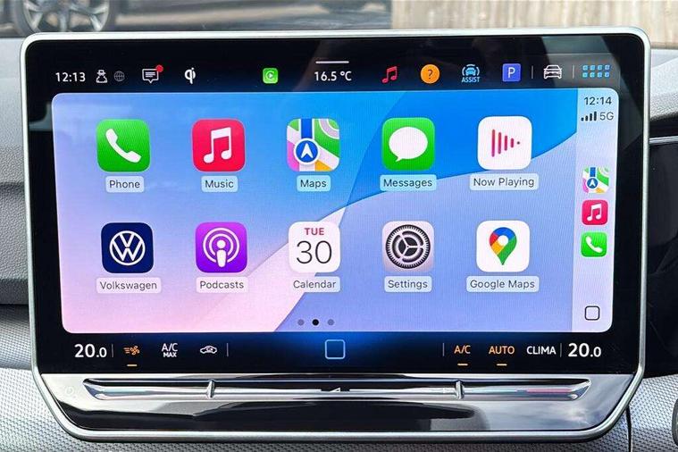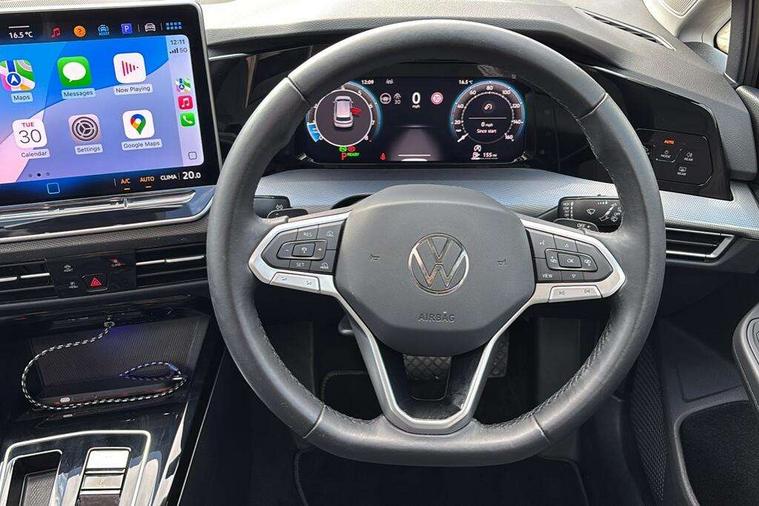 Activated carbon canister, Adaptive cruise control (ACC), Advanced driver attention and drowsiness monitor, Dynamic road sign display, E-Sim card for online connectivity, eCall emergency call system, Multi-color Digital cockpit pro, selection of different info profile possible, Multifunction front facing camera for distance control, Navigation system, Oncoming vehicle braking when turning including swerve support, Preparation for light assist system, Side assist blind spot lane change system, rear traffic alert and exit warning system, Speed limiter, Speedo, rev counter, electronic odometer, trip, service interval display, exterior temperature and fuel gauge, Traffic jam assist, Voice enhancer and voice control, Warning signal and warning light for front and rear seatbelts not fastened, We connect plus preparation, We connect preparation, Wireless app connect, Hybrid propulsion system, Petrol Particulate Filter, Start-stop system with battery regeneration (recuperation - energy recovery during braking), XDS electronic differential lock for improved traction and handling, 2 USB C ports in front, 2 USB charging sockets on the centre console in the rear charging capacity upto 45W, Comfort telephony + wireless charging, without wireless aerial connection, Digital radio reception (DAB), Diversity antenna for FM reception, Gaming platform via car app, Infotainment system with 12.9" display, Mobile phone interface with inductive charging feature, 3rd brake light, Auto dimming rear view mirror, Auto headlights, Automatic headlamp activation with Coming home and Leaving home feature, Body colour bumpers, Body colour door handles, Body colour door mirrors, Chrome trimmed front air intake surrounds, Chrome trims on the side window bottom, Exterior ambient lighting with with illuminated molding between the headlamps and door handle recess, Exterior mirrors convex on the left and aspherical on the right, Front and rear electric windows, Heat insulating windshield made of laminated glass, LED daytime running lights, Rain sensor, Rear exhaust tailpipe, Rear fog light on one side and reversing lights on both sides, Rear side wing doors, Rear windscreen washer and wiper with interval delay, Remote electrically foldable door mirrors, puddle lights and reverse activated passenger's door mirror, Welcome light with surround lighting, 12V socket in front centre console, 12V socket in luggage compartment, 3 rear head restraints, 3 seat bench in 2nd row, Air care climatronic 3 Zone automatic climate control with rear air conditioning control panel, Ambient lighting with 30 colour including LED light unit in front footwell with selectable light colour, Art velours cloth upholstery, Carpet mats, front and rear, Chrome plated radiator grille inserts, air vent surrounds and light switch surrounds, Door insert, side trim panel and arm support in leatherette, Front centre armrest, Front head restraints, Front seat lumbar support adjuster, ISOFIX anchors for child seats on outer rear bench seats and on front passanger seat compatible for i-Size, Luggage compartment lighting, Manual height adjustable front seats, Plastic gear knob, Rear cupholder and loadthough, Single front passenger seat, Soul black instrument panel, Split folding backrest with centre armrest and unsplit rear seat bench, Sports comfort seats in front, Standard pedal cluster, Storm grey roof lining, Sun visors with illuminated vanity mirrors, Driver assistance pack - Golf DSG Estate/Hatchback, 3 point height adj front seatbelts + pretensioners, 3 rear three point seatbelts, ABS, Autonomous emergency braking front assist with pedestrian and cyclist monitoring, Child locks on rear doors, Driver and front passenger airbag with front passenger airbag deactivation, Electronic parking brake with auto hold, ESC (Electronic Stability Control), Extended pedestrian protection measures, Hill start assist, Rear disc brakes, Two tone horn, Tyre pressure loss indicator, Volkswagen roadside assistance, Anti theft wheel bolts, Preparation for alcohol interlock, New brushed dark metal decorative inserts for dashboard and front door panels,