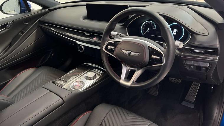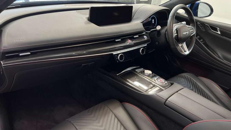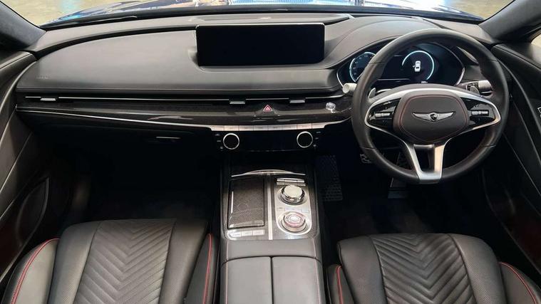 8" Dashboard cluster TFT display, Apple car play/Android Auto, Blind spot collision avoidance assist rear (BCA-R), Bluetooth connection with voice recognition, Drive mode select, Driver attention warning, E-call, Electric power steering wheel with variable gear ratio steering, Electric rear tailgate opening, FCA - Forward Collision Avoidance Assist (car, pedestrian, bicycle), Forward Collision Avoidance Assist Junction Turning (FCAJX), Front and rear parking sensors, Highway Driving Assist (HDA), Intelligent speed limit assist (ISLA), Lane Following Assist (LFA), Lane keeping assist (LKA), Lighting backup guidelines, Manual speed limit assist (MSLA), Proximity sensor for front doors, Rack and pinion optimized R-MDPS steering responsiveness and improved full turn steering wheel, Rear cross traffic collision avoidance assist (RCCA), Reversing camera with dynamic guide lines, Smart cruise control (NSCC-R) with stop and start, Traffic sign recognition, Trip computer, Wireless phone charger front, Preview electronically controlled suspension, 14.5" navi screen + DAB radio + phone mirroring + genesis connected + knob type CCP/RRC, 1x USB charger in rear armrest, Steering wheel audio remote control, Auto defog and rain sensing wipers, Automatic headlights with dusk sensor, Automatic window defogger, Black painted dual rear muffler and chrome coating, Body coloured bumpers, Dual front LED low and high projection headlamps with high beam, Electrochromic inside rear view mirror, Full LED rear combination lamps, Laminated front side glass, LED daytime running lights, LED rear fog lamps, LED rear stop lamp, LED side fender lamp, Outside door handles chrome coating, Outside rear mirrors electrical adjustment + heated, Outside rear mirrors electrical folding, Power front and rear windows with auto down/up, Puddle lamps with logo, Rain sensor, Rear boot, Rear side wing doors, Sport appearance, Windshield acoustic film, 2 way electric cushion tilt up for driver and passenger, 2 way electric height adjust driver's seat, 2 way electric height adjust front passenger seat, 2nd row heating floor output, 3 rear headrests, 3 zone auto air conditioning (incl rear), 4 way electrically adjustable drivers seat, 4 way electrically adjustable lumbar support for driver and front passenger, 4 way electrically adjustable passenger seat, 4 way manual headrest adjust for front seats, Adjustable interior ambient lighting, Console storage box with dual pop, Drink holder at centre armrest, Fixed rear bench for 3 passengers with ski through, Front passenger seat, Heated leather steering wheel, Leatherette console box, Lever type paddle shifter, Metal pedals, Power outlet for rear (lower centre console), Premium air filter, 10 airbags - Driver knee, front, enhanced front side and rollover-sensing side curtain, rear seat-mounted side, front center, 3 rear three point seatbelts, ABS + ESC + HAC + MCB (Multi Collision Brake), Electronic parking brake with auto hold, Front thorax and pelvis + rear thorax + side curtain (ff/rr) airbag, ISOFIX rear child anchor with upper and lower, Power child locks, Tyre pressure monitoring system, Ventilated front and rear disc brakes, Alarm, Central door lock driver's and passenger's control, Immobiliser, Remote central locking, Smart key/button start, Carbon/hybrid weaving grain trim, Leatherette dashboard real stitching, CTR trim in PU leather, Michelin tyres, Summer tyres pilot sport 4, Tyre mobility kit,