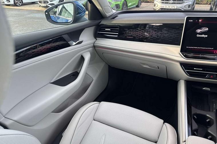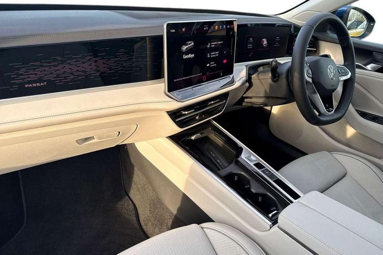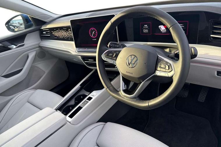 2 x Front USB-C ports, 2 x USB-C charging sockets on the centre console in the rear, charging capacity up to 45W, Adaptive cruise control, Advanced driver attention and drowsiness monitor, Chat GPT function for IDA voice assistant, Digital cockpit pro 10.25" high resolution, Discover media navigation system includes streaming and internet, Dynamic road sign display, E-Sim card for online connectivity, eCall emergency call service, Electronic engine sound, Full electric tailgate operation, Inductive smartphone charging without external antenna connection, Memory feature for park assist, Oncoming vehicle braking when turning including swerve support, Park assist pro with park distance control (Remote park assist), Predictive speed limiter, Preparation for We connect and We connect plus, Wireless app connect, Battery 340 A (58 Ah), Front wheel drive, Petrol Particulate Filter, 8 Speakers, Auto dimming interior rear view mirror, Automatic headlights, Body colour bumpers, Body colour door handles, Electric panoramic sunroof, tilting and sliding panoramic sunroof with rear panoramic sunroof, Heated windscreen washer jets, Laminated safety glass windshield, heat and sound insulating, LED third brake light, Rain sensor, Rear side wing doors, Rear wiper, Welcome light with surround lighting, 3 seat bench in 2nd row, 3 zone air care climatronic with rear air conditioning control panel, 30 colours options interior ambient lighting, Front + rear carpet mats, Front head restraints, Front sports comfort seats, Isofix child seat preparation, easy-fit (for two outer rear seats, and front passenger seat), compatible with I-size, Leather-wrapped, heated and multi-function steering wheel with shift paddles, Luggage compartment cover, power operated, Rear centre armrest, Single front passenger seat, Standard pedal cluster, Sun visors with illuminated vanity mirrors for driver and front passenger, Sunblind for rear side windows, Three rear head restraints, Unsplit rear seat bench, split folding backrest, LED High matrix headlamps pack with Illuminated VOLKSWAGEN emblem rear - Passat, 3x3 point rear seat belts, ABS (Anti locking brake system) includes BAS (Brake assist) and EBD (Electronic brake pressure distribution), Autonomous emergency braking front assist with pedestrian and cyclist monitoring, Disc brakes in front, Driver/Front Passenger airbags, Drivers knee airbag, Electronic parking brake with auto hold, ESC (Electronic stability control) + EDL (Electronic Differential lock) and ASR (Traction control), EDTC (Engine drag torque control), Extended safety system with proactive passenger protection system, Front passenger airbag deactivation switch, Hill hold function, Tyre pressure loss indicator, Warning triangle and first aid kit, Alarm with interior protection, Electronic engine immobiliser, Keyless locking and starting system keyless access with safelock, Aluminium decorative inserts, Tool kit for tyre mobility set, Trims for alloy wheels,