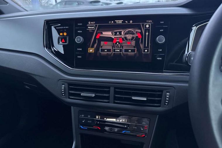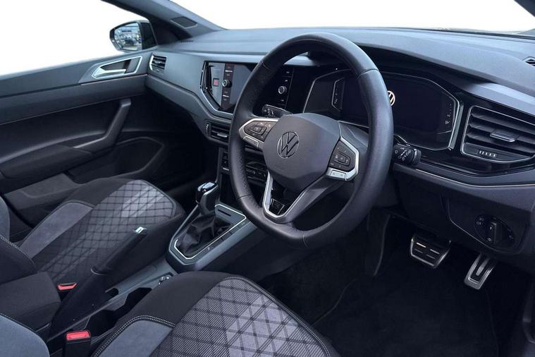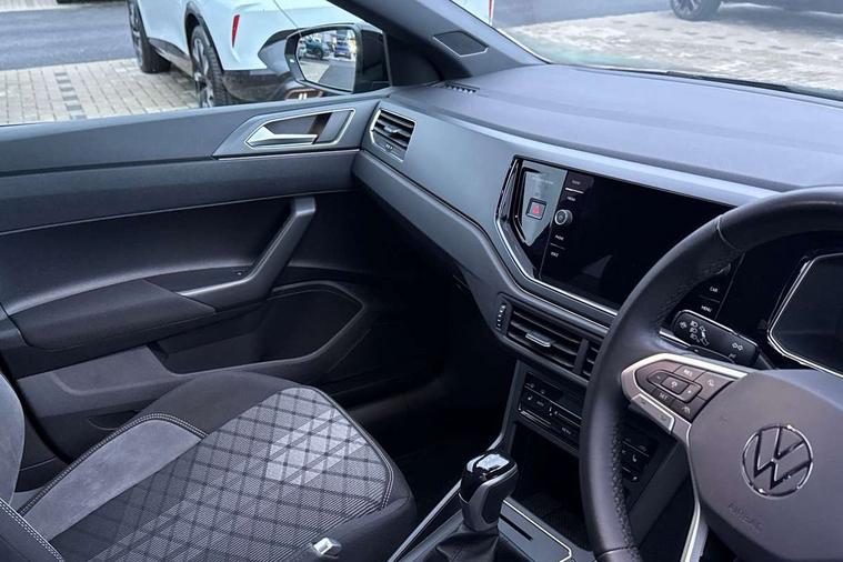 Adaptive cruise control with follow-to-stop and speed limiter, Advanced driver attention and drowsiness monitor, Bluetooth mobile phone interface, Digital Cockpit Pro with 10.25" Display, Dynamic road sign display, Emergency call service, Multifunction camera, Power assisted speed sensitive steering, Preparation for We connect and We connect plus, Speedo and rev counter, electronic odometer, trip, service interval display and fuel gauge, Standard rear axle, Travel Assist - Lane keeping system and traffic jam assist, Travel assist including emergency assist, Trip computer, Warning signal and warning light for front and rear seatbelts not fastened, Washer fluid level indicator, Wireless app connect, Front wheel drive, Rear shock absorpion, Start-stop system with battery regeneration (recuperation - energy recovery during braking), DAB Digital radio, Diversity antenna for FM reception, Front and rear 6 speakers, Body colour bumpers, Body colour door handles, Electric front windows, Front scuff plates with Black edition logo, Heat insulating glass windscreen, Power folding adjustable/heated exterior mirrors and front passenger exterior mirror lowering function, Rear electric windows, Rear fog light, Rear side wing doors, Rear windscreen washer and wiper with interval delay, Third brake light, 12V power socket in centre console, 2 USB-C ports in the front, 2 USB-C charging sockets on the center console in the rear, 3 rear head restraints, 60/40 split folding rear seat and rear seat bench not split, Air care climatronic air conditoning system with active combination filter and 2-zone temperature control, Black roof lining, Carpet mats, front and rear, Chrome plated radiator grille inserts, air vent surrounds and light switch surrounds, Door and side trim panel, Driver and front passenger seat height adjustment, Driver/passenger sunvisors with illuminated vanity mirrors, Front centre armrest, Front footwell illumination, Front seat backrest storage pockets, Front sports comfort seats, Handbrake lever handle in leather, Headliner in recycled material, Heated front seats, Isofix child seat preparation easy-fit (for two outer rear seats, and front passenger seat) compatible with I-size, Karoso artvelours cloth upholstery, Leather trimmed gear knob, LED interior light with switch off delay and dimmer, 2 reading lights front and rear, Luggage compartment cover, Luggage compartment floor, Luggage compartment lighting, Lumbar adjustment for front seats, Single front passenger seat, Stainless steel pedals, Standard pedal cluster, Three spoke leather wrapped multifunction steering wheel with shifting paddles, Black roof pack - Polo, IQ LED matrix headlights pack - Polo, Light and sight pack - Polo R-Line/Black Edition, 3 point height adj front seatbelts + pretensioners, 3x3 point rear seatbelts, ABS, Driver and front passenger airbag with front passenger airbag deactivation, Drivers and front passengers safety optimised head restraints, ESC (Electronic stability control) + EDL (Electronic Differntial lock) and ASR (Traction control), Extended and predictive pedestrian/ cyclist protection, Front curtain and side airbags with center airbag, Front/rear disc brakes, Hill hold control, Manual child lock in rear doors, Single tone horn, Tyre pressure loss indicator, Alarm with interior protection, Anti-theft alarm system with interior monitoring, backup horn, and towing protection, Anti-theft wheel bolts, Electronic engine immobiliser, Black dashboard, Chrome applications on rotary light, mirror adjustment, window regulator switches, outlet with frame in black, Dark grey anodised matt decorative inserts in dash and front door panels, 17" York alloy wheels, Low rolling resistance tyres,