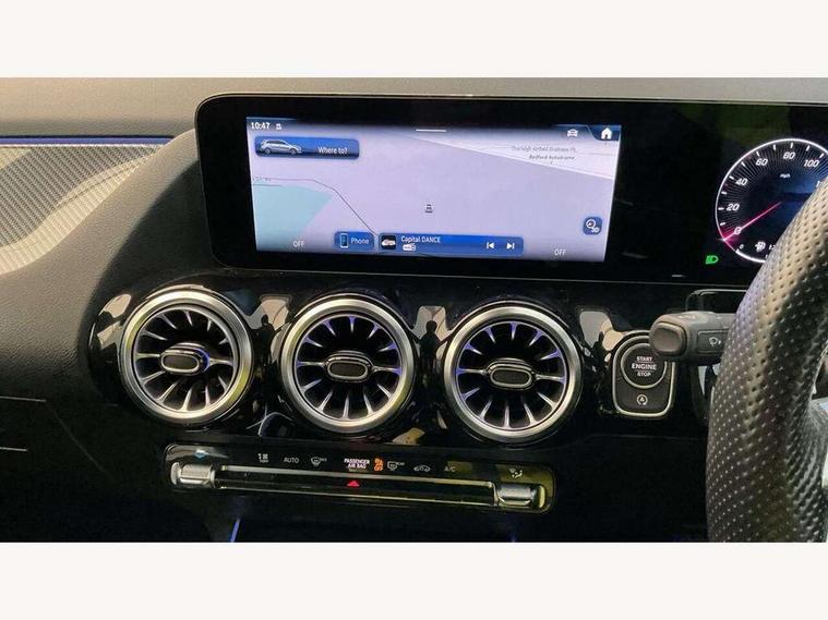 10.25 inch touchscreen central media display, 10.25" Digital instrument cluster display screen, Attention assist - Monitors steering behaviour and long journey fatigue, Brake pad wear indicator warning light, Cruise control + speed limiter, Direct steer system, Dual bluetooth interfaces, DYNAMIC SELECT with a choice of driving modes (ECO, Comfort, Sport and Individual), ECO start/stop function, Engine start/stop button, Fluid level warning indicator for fuel, oil, coolant and washer fluid, GPS aerial, Hard disk navigation, Hey Mercedes Voice activation, Lamp failure indicator, Lane keeping assistant (LKA), Live traffic information, Mercedes me connect including emergency call system, accident recovery, breakdown and maintenance management, Mercedes me remote services, Outside temperature gauge, Owners manual and service booklet in English, Pre-installation for private car sharing, Preinstallation for Mercedes Benz link, Remote boot closing, Service indicator (ASSYST), Smartphone integration with Apple CarPlay and Android auto, Speed limit assist, Speed sensitive power steering, Trip computer in multifunction display with current consumption indicator, Wireless charging, Lowered comfort suspension, DAB digital radio tuner, MBUX multimedia system, Mercedes Benz sound system (100 W) with 6 speakers, 4 Electric Front and Rear windows, Adaptive brake lights, Adaptive high beam assist, AMG body styling - AMG front apron with front splitter and AMG rear apron and visible exhaust tailpipe trim elements, Body coloured bumpers, Body coloured door handles, Body coloured side skirts, Car wash function, Chrome window line, Diamond radiator grille with pins in fine star pattern, Electric adjustable and heated door mirrors with integrated LED side indicators, Exhaust system with 2 Visible tailpipe trim elements and rear apron with trim in chrome, Headlamp assist automatic headlamp activation, Heat insulating dark tinted rear and rear side windows, Heated glass rear windscreen + timer control, High level LED third brake light, Interior mirror with black reading lamps and frameless, LED high performance headlamps with integrated LED daytime running lights, LED tail lamp, Privacy glass, Rain sensing windscreen wipers with two sensitivity settings, Rear fog lamp, Rear side wing doors, Rear windscreen wiper, 3 seat rear bench, 3 spoke multifunction sports steering wheel in nappa leather with flattened bottom and perforated grip area, 4 way lumbar support, 40:20:40 split folding rear seat backrests, Air conditioning - air vents with silver chrome surround, Air conditioning - One zone THERMATIC automatic climate control with automatically controlled air distribution, Artico man-made leather/ MICROCUT microfiber upholstery with contrast topstitching, Automatic child seat recognition sensor, Black roof lining, Brushed stainless steel sports pedals with rubber studs, Floor mats with black top stitching embroidered edition logo and piping in light grey, Folding rear armrest, Freight packaging without tie-down hooks, Front centre armrest with stowage, Front door sills with Mercedes Benz lettering, Front sports seats with adjustable head restraints, Galvanished gear shift paddles on steering wheel, Heated front seats, Illuminated glove compartment stowage, Interior lighting - 64 colour Ambient lighting, Luggage net on driver/front passenger seat backrest, Manually adjustable front seats, Manually height and reach adjustable steering column, Rear headrests, Seat occupancy sensor for front passenger seat, Single front passenger seat, Stowage compartment in centre console with retractable cover, Sunvisors with illuminated vanity mirrors, Twin front cupholders, Two outer rear seat isofix and top tether child seat fixing points, 360 degree guard vehicle protection pack - B Class, Interior lighting with light and sight pack - B Class, Keyless Go Comfort pack - B Class, Mirror package with self dimming mirror - B Class, Parking pack - B Class, Seat comfort pack - B Class, USB plus pack - B Class, 3 rear three point seatbelts, Active bonnet pedestrian safety measure which detects an impact and raises bonnet, Active brake assist includes forward collision warning system with autonomous braking, Adaptive brake assist with hold function and hill start assist, Airbags - kneebag for driver, Anti-lock braking system (ABS), Black seat belts, Brake assist, Childproof locks manually operated for rear doors and electrically operated for rear power windows, Crash responsive emergency lighting, Curve dynamic assist, Driver and front passenger head and sidebags, Driver and front passenger windowbags, Dual stage driver/passenger airbags, Electric parking brake, Electronic stability programme with acceleration skid control, Front and rear seatbelt reminder, Front passenger airbag deactivation, Tyre pressure monitoring system, Warning triangle and first aid kit, Alarm system with immobiliser and interior protection -Thatcham category 1, Remote central locking and crash sensor with emergency opening function, Carbon structure trim, 18" AMG 5 twin spoke light alloy wheels, aerodynamically optimised, painted in termolite grey with high sheen finish, Summer tyres, Tirefit tyre sealant kit,
