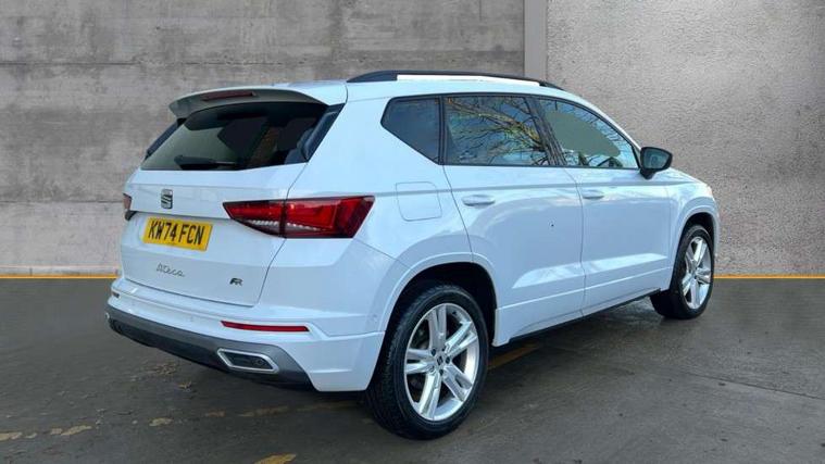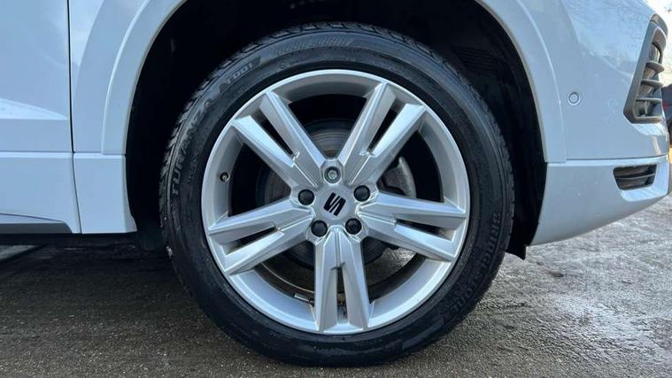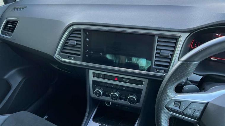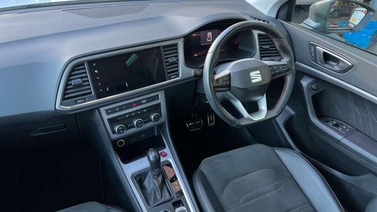 8" Digital cockpit, Colour multi-function on board computer display, Cruise control system with speed limiter, E-call, Outside temperature gauge, Progressive power assisted steering, SEAT drive profile with driving experience button - Normal, Sport, Eco and Individual mode, gearshift, steering and throttle response, Self parking functionality (includes front and rear parking sensors), Start/stop system, Tailgate, Trip computer, wired and wireless full link smartphone integration, Wireless phone charger, Steering wheel mounted audio/phone controls, Black roof rails, Black side window trim, Body colour bumpers, Body coloured wheel arch surrounds, Chrome front grille frame, Dark tinted rear windows, Daytime running lights, Door mirrors with welcome light silhouette, Dynamic headlight range control with self adjusting whilst driving, Electric adjustable/heated/folding door mirrors, Front and rear electric windows, Full LED headlamps with lens and LED front fog lamps with cornering function, Illuminated aluminium front door sill, LED 3rd brake light, LED rear tail lights with dynamic indicators, Rear exhaust tailpipe, Rear fog lights, Rear side wing doors, Rear wash/wipe, Roof spoiler, Variable front intermittent wipers, 12V socket in front, 3 seat bench in 2nd row, 60/40 split folding rear seat, Aluminium pedals, Dinamica upholstery with front comfort seats, Drawer under right front seat, Dual zone climate control, Front and rear head restraints, Front centre armrest, Front seat back storage pockets, Height adjustable driver and passenger seat with lumbar adjustment, ISOFIX points in outer rear seats with top tether anchorage points, Leather sports steering wheel and gear knob, Rear armrest and easy back seat release mechanism from boot, Single front passenger seat, Steering wheel mounted gearshift paddles, Convenience pack - Ateca, Interior lighting pack - Ateca, Navigation system pack with DAB - Ateca, Safety and driving pack with attention and drowsiness assist - Ateca, 3x3 point rear seatbelts, ABS, Traction control system (TCS), Electronic stability control (ESC) and Electronic differential lock system (XDS), Airbags - Driver and front passenger airbag with deactivation, front side, two curtain and driver's knee airbags, Electric parking brake with auto hold function, Front and rear seatbelt reminder, Front assist with autonomous emergency braking, Hill hold control, Manual rear child locks, Single tone horn, Tiredness recognition system, Tyre pressure monitoring system, Alarm, Keyless entry, Locking wheel bolts, Remote central locking, Chrome interior detailing, 18" Brillaint silver alloy wheels,