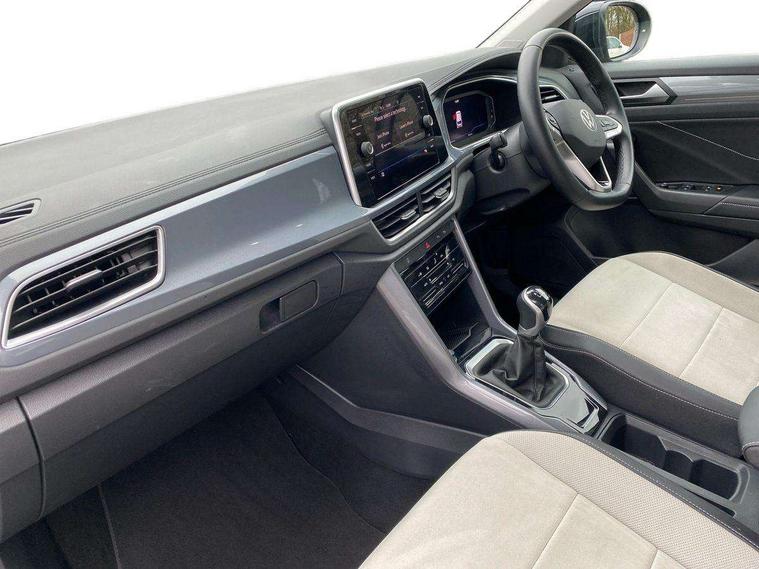 10.25" Digital cockpit pro, Bluetooth mobile phone interface, Driver alert system with fatigue detection, Driver tips and journey analysis, Dynamic road sign display, Emergency call service, Lane keeping system Lane Assist, Modified key software - reduce switch off time for key status change to Long no motion, Online services, Park assist including front and rear parking sensors, Power assisted speed sensitive steering, Service interval indicator, Tailgate/trunk lid release from outside, Think blue trainer driver tips and journey analysis, Warning sound and light for front seatbelts unfastened, Wireless app connect, Battery regeneration during braking, Front shock absorption, Rear shock absorption chassis with increased ride height, Start/stop function with battery regeneration, Diversity antenna for FM reception, Front and rear 6 speakers, Music playback - MP3, WMA and AAC files, Premium USB cable in choice of either Apple or Android smartphone compatibility, SD card slot, Simultaneous pairing of 2 compatible mobile devices, Title and cover art display, We Connect and We Connect Plus functionality, 3rd brake light, Auto dimming interior rear view mirror, Automatic hazard lights activation under emergency braking, Automatic headlight control with LED separate daytime running lights with coming/leaving home function, Body colour sports bumpers with silver metallic underbody fascia, Dynamic headlight range control with self adjusting whilst driving, Extended roof spoiler, Exterior mirrors aspherical on driver side, convex on front passenger side, External USB type C socket and charging sockets, Front windscreen wiper with intermittent wipe and 4 position delay, Heated rear window, LED Plus headlamps, LED rear combination lamps, LED rear number plate lights, LED tail lamp rear comination lamps, Light mode for poor weather, rain, fog or snow, Power windows with comfort operation and circuit breaker, Rain sensor, Rear exhaust tailpipe, Rear fog light on one side and reversing lights on both sides, Rear side wing doors, Rear wash/wipe with intermittent wipe setting, Remote electrically foldable door mirrors, puddle lights and reverse activated passenger's door mirror, 12V power socket in centre console, 3 rear head restraints, 3 seat bench in 2nd row, 4 load lashing points in luggage compartment, Air care climatronic air conditoning system with active combination filter and 2-zone temperature control, Chrome plated radiator grille inserts, air vent surrounds and light switch surrounds, Door and side trim panel with leatherette insert, Drawer under drivers seat, Front + rear carpet mats, Front centre armrest, Front comfort sports seats, Front cupholders x 2, Front footwell illumination, Instrument lighting, white adjustable panel illumination, Interior ambient lighting and surround lighting, Interior light delay, Isofix child seat preparation, Leather gearshift handle, LED interior light with switch off delay/dimmer and 2 front/rear LED reading lights, Load-through provision with cup holder when folded down ('Unsplit rear seat bench, split folding backrest, with centre armrest), Luggage compartment lighting, Non-folding front passenger seat backrest, Single front passenger seat, Storage compartment in left and right luggage area, Storage compartment in rear doors, Storage compartments in driver and front passenger doors, Sunvisors with illuminated vanity mirrors, Variable boot floor, height adjustable and removable, Driver assistance pack without proactive passenger protection - T-Roc, 3 point height adj front seatbelts + pretensioners, 3 point seatbelts in outer rear with ECE label, ABS, Child locks on rear doors, Driver and front passenger airbag with front passenger airbag deactivation, Driver and front passenger safety-optimised head restraints, Drivers seatbelt reminder, Electronic parking brake, Electronic Stability Control (ESC) inc EDL (Electronic Differential Lock) and ASR (Traction Control), Front and rear passengers curtain airbag system including front side airbags, Front assist with city emergency braking and pedestrian monitoring, Front disc brakes, Front seat side impact airbags, Predictive pedestrian protection, Rear disc brakes, Single tone horn, Tyre pressure loss indicator, Volkswagen roadside assistance, Alarm with interior protection, Anti-theft alarm system with interior monitoring, backup horn, and towing protection, Remote central locking with SAFELOCK, radio remote control with 2 remote control folding keys, Trims for alloy wheels,