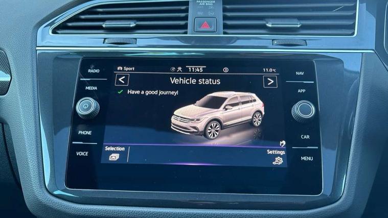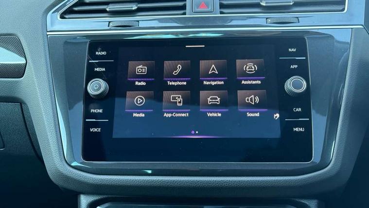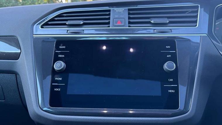 Adaptive cruise control ACC stop and go including speed limiter, App-Connect incl. App-Connect Wireless for Apple CarPlay and Android Auto, Bluetooth phone integration system, Distance control assist, Driver alert system, Driver profile selection, Dynamic road sign display, eCall emergency call system, Electromechanical speed sensitive power steering, Engine start/stop button, Lane keeping system Lane Assist, Lights on warning, Motorised electric tailgate operated via key fob, drivers door and foot movement under tailgate, Multifunction front facing camera, Outside temperature display, Premium multifunction display with multi colour display, Remote control boot opening, Rev counter, Revision / skills operating concept travel assistant, Service interval indicator, Speed limit display, Start/stop system with regenerative braking, Tailgate/trunk lid unlocking from outside, Trip computer, Warning sound and light for doors and tailgate open, Battery regeneration during braking, Diesel particulate filter, Misfuel prevention device for diesel engine, Selective Catalytic Reduction, XDS electronic differential lock for improved traction and handling, 4 X 20 watt output, 8 Speakers, Diversity antenna for FM reception, Radio, SD card slot, Simultaneous pairing of 2 compatible mobile devices, SMS functionality - read, compose and send SMS messages using touch-screen display, Title and cover art display, USB C ports, Aluminium door sill protectors, Auto dimming interior rear view mirror, Automatic headlight control system, Body colour door handles, Body coloured bumpers, Body coloured door mirrors with integrated indicators, Coming/leaving home lighting function, Dynamic headlight range control, Front and rear electric windows, Heated rear window, High level 3rd brake light, IQ light-Adv high beam, Dynamic light assist for LED matrix headlamp+LED separate DRL+DCL, dark red rear LED tech, Poor weather light+ cornering light, Laminated safety glass windshield, heat and sound insulating, LED rear number plate lights, Poor weather light and cornering light, Privacy glass for rear side windows and rear window, Rain sensor windscreen wipers, Rear exhaust tailpipe, Rear fog lamp, Rear side wing doors, Rear windscreen washer and wiper with interval delay, Side and rear windows in heat insulating glass, Tilting and sliding panoramic sunroof with rear panoramic sunroof, Trailer Stability Programme, Windscreen wipers/ intermittent wipe + 4 position delay, 12V outlet in center console rear and in luggage compartment, 12V outlet in front and tray, 2 cup holders in front, 2 LED front reading lights, 2 LED rear reading lights, 3 bench rear seats in 2nd row, 3 rear headrests, 4 load lashing points, 40:20:40 split folding rear seats, Air Care Climatronic 3 zone automatic climate control with enhanced air filter and controls in the rear, Backrest release for left front seat, Climate control unit rear with touch function, Door and side trim panel in foam film and woven fabric, Front centre armrest, Front footwell illumination, Front seats head restraints (x-adjustment), Height adjustable front seats, Height/reach adjust steering wheel, Instrument lighting white adjustable panel illumination, Interior light with delay, Isofix Preparation 2 Rear child seats, Leather gear knob, Lockable cooled glovebox, Luggage compartment lighting, Luggage net, Rear bench seat asymetrically split folding, longitudinally movable and folding with load-through hatch and center armrest, Remote unlocking for rear seat backrest, Removable luggage cover, Removable rear headrests, Safety optimised front head restraints, Single front passenger seat, Sliding/reclining rear seats, Standard rear seat release, Storage compartment in driver's door, Storage compartment in passenger's door, Storage compartment in rear doors, Storage compartments in luggage area left and right, Storage tray on dashboard, Sun visors with illuminated vanity mirrors, Top front comfort seats, Variable boot floor, height adjustable and removable, Easy open and close pack with safelock - Tiguan, 3 point seat belt for centre rear seats, 3 point seat belts with seat belt pretensioners for the outer rear seats, Active bonnet, Curtain airbags for front and rear passengers, Driver/Front Passenger airbags, Drivers knee airbag, Electronic parking brake with auto hold, Electronic Stability Control with driver steering recommendation, ABS, ASR, EDL, EDTC and trailer stabilization, Front assist with autonomous emergency braking (for Adaptive Cruise Control ACC up to 130 mph), Front disc brakes, Front passenger airbag deactivation, Front side airbags, Height adjustable front 3 point seatbelts + pretensioners, Hill hold control, Manual child proof rear door locks, Pedestrian monitoring system, Power assisted brakes, Proactive passenger protection system in combination with front assist, Rear disc brakes, Rigid safety cell with front and rear crumple zones, Two tone horn, Warning sound and light for front seat belts if unfastened, Anti theft alarm system with interior monitoring, backup horn and towing protection, Anti theft wheel bolts, Central locking system with safelock radio remote control and 2 remote control folding keys, Electronic engine immobiliser, Tool kit,