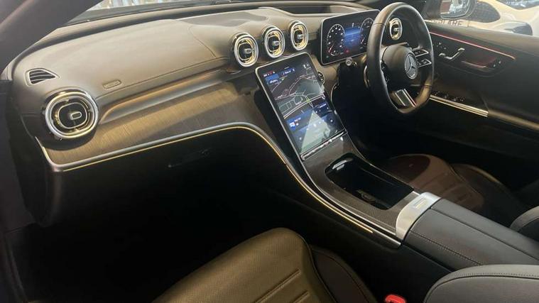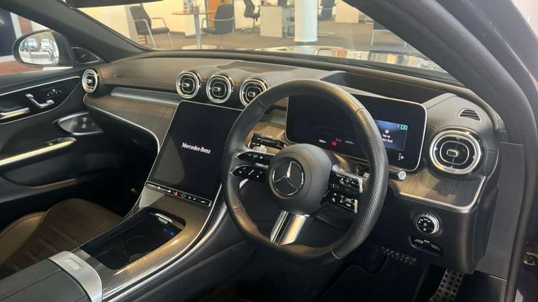 11.9" high resolution multimedia colour display, 12.3" digital instrument cluster display, Active parking assist with PARKTRONIC, Attention assist, DYNAMIC SELECT with a choice of driving modes (Comfort, ECO, Sport, Sport+, Individual), E-call, Extended MBUX functions, Finger print sensor, Fluorescent jacket for driver, Hard disc navigation, Head up Display, MBUX navigation premium, Mercedes me remote services, Outside temperature gauge, Service indicator (ASSYST), Smartphone integration, Sports direct steer speed sensitive steering, Status display for rear seat belts in instrument cluster, Traffic sign assist, Wireless charging system for mobile devices, 9G TRONIC 9 speed automatic transmission, Petrol Particulate Filter, Sport suspension, Burmester 3D surround sound system, DAB Digital radio, MBUX multimedia system, Adaptive brake lights, Adaptive high beam assist plus, AMG body styling front apron, rear apron and side skirts, AMG Line exterior, Body coloured bumpers, Body coloured door mirrors, Digital light LED headlamps, Electric panoramic glass sunroof, Electric windows with one touch opening/closing and obstruction sensors, Electrically adjustable and heated door mirrors, Heat insulating dark tinted glass, LED daytime running lights, LED Indicators, LED tail lights, LED third brake light, Noise acoustic glass, Radiator diamond grille with integrated Mercedes Benz star and louvre silver with chrome pins, Rain sensor with automatic windscreen wiper activation, Rear boot, Rear side wing doors, Two visible exhaust pipes integrated into rear bumper, 3 seat bench in 2nd row, 40:20:40 split folding rear bench seat, Ambient lighting premium, Ambient lighting with projection of brand logo, AMG floor mats, AMG line interior, Artico man-made leather upholstery, Auto Mercedes-Benz child seat recognition sensor, Black roof liner, Boot lid convenience closing feature, Comfort seats, Double cupholder in centre console, Electrically height/reach adjustable steering column, Folding rear seat backrest, Front and rear head restraints, Gearshift paddles on steering wheel, Illuminated door sills with Mercedes Benz lettering, Illuminated glove compartment stowage, Multifunction sports steering wheel in nappa leather, Rear top tether child seat ISOFIX attachment, Single front passenger seat, Sunvisors with illuminated vanity mirrors, THERMATIC 2 zone automatic climate control, AIR BALANCE Package - C Class, Energizing package plus - C Class, Interior light package - C Class, Keyless go comfort package - C Class, Memory package - C Class, Mirror package - C Class, Parking package with 360 degree camera - C Class, Stowage space pack - C Class, USB package plus - C Class, 3 rear 3 point seatbelts, Active bonnet pedestrian safety measure which detects an impact and raises bonnet, Adaptive brake system with HOLD function and brake drying in the wet, Anti-lock braking system (ABS), Black seat belts, Brake calipers with Mercedes-Benz lettering + perforated front brake discs, Child proof door locks, Drivers knee airbag, Drivers pelvis airbag, Dual stage driver/passenger airbags, Electric parking brake, Electronic Stability Programme (ESP), Front centre airbag between driver and front passenger seats, Front side airbags, Tyre pressure monitoring system, Warning triangle and first aid kit, Window airbags for driver, front passenger and rear passenger, Antitheft alarm system, Interior monitoring system and Increased antitheft protection, Central locking with interior switch, automatic locking and crash sensor with emergency opening function, Chrome surround in electric key, Urban guard vehicle protection plus, Black open pore aluminium lines wood trim with centre console in metal structure finish, Dashboard, instrument panel and beltlines in ARTICO man made leather in nappa look, 19" AMG multi spoke light alloy wheels painted black with high sheen finish, TIREFIT with tyre inflation compressor,