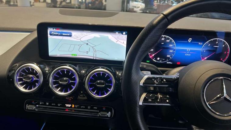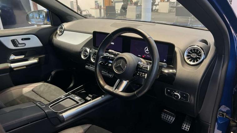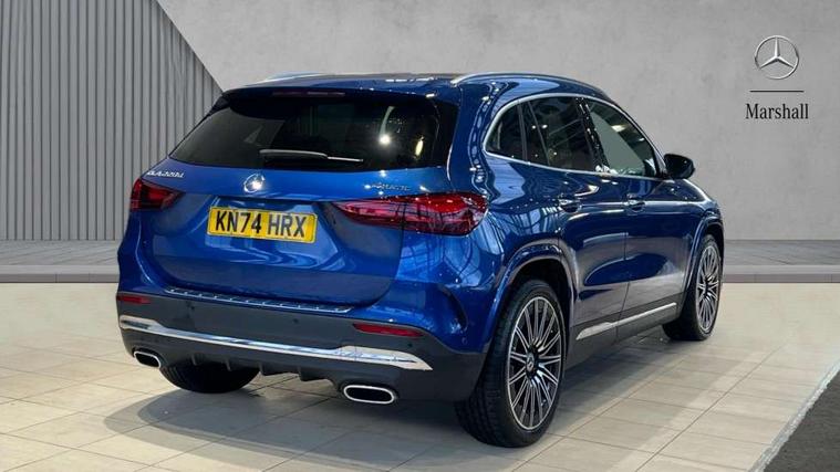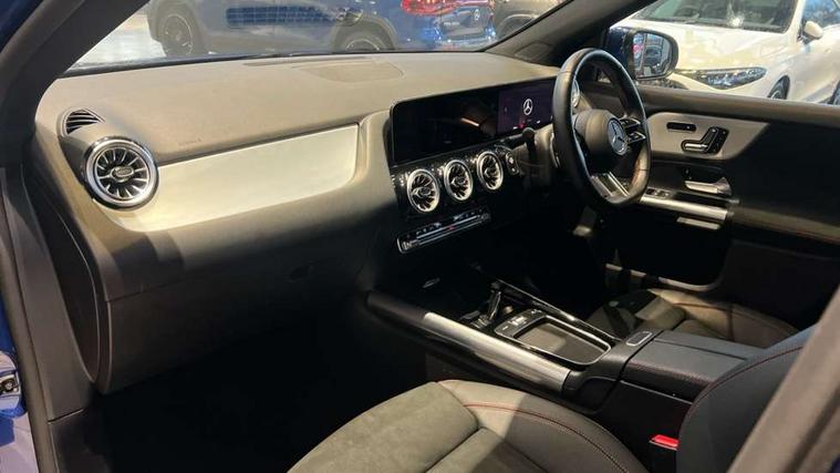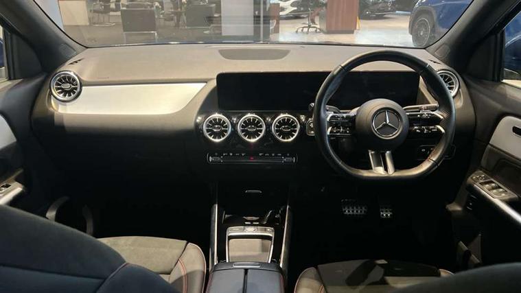 10.25 inch touchscreen central media display, 10.25" Digital instrument cluster display screen, Attention assist, Direct steering, DYNAMIC SELECT with a choice of driving modes (ECO, Comfort, Sport and Individual), Easy-pack tailgate, ECO start/stop function, Fingerprint scanner, Fluid level warning indicator for fuel, oil, coolant and washer fluid, Full color head up display, Hard-disk navigation, Hey Mercedes Voice activation, Lamp failure indicator, Lane keeping assist (LKA), Mercedes me connect including emergency call system, accident recovery, breakdown and maintenance management, Mercedes me remote services, Multi function trip computer, Outside temperature gauge, Owners manual and service booklet in English, Pre-installation of private car share, Radio aerial integrated into front and rear windshields, Service indicator (ASSYST), Smartphone integration with Apple CarPlay and Android auto, Traffic sign assist, Wireless charging, Lowered comfort suspension, Rear axle multi-link, Suspension with adaptive damping system, Bluetooth connectivity including audio streaming, DAB Digital radio, MBUX multimedia system, Mercedes-Benz (225w) sound system with 10 speakers, Adaptive brake lights, Adaptive full LED rear lights with automatic adjustment of light intensity to the surroundings, Aluminium roof rails, AMG front apron with front splitter in the colour of the vehicle with chrome trim element, AMG rear apron with visible tailpipe trim and chrome trim element, AMG specific/dual flow exhaust pipes in chrome (non-functional), Automatic headlamp activation, Beltline trim and window line trim strip in high gloss black, Black grained side sill trim with chrome inlay, Body coloured door handles with chrome insert for keyless entry, Car wash function, Cornering light function with activated high beam, Dark privacy glass from B-pillar backwards, Electric front windows, Electric rear windows, Electrically adjustable and heated door mirrors with integrated LED indicators, Exhaust system with 2 Visible tailpipe trim elements and rear apron with trim in chrome, Heat insulating dark tinted glass, Heated glass rear windscreen + timer control, Illuminated door sill panels with Mercedes-Benz lettering, Interior mirror with black reading lamps and frameless, LED daytime running lights, LED third brake light, Multibeam LED headlamps with adaptive highbeam assist plus, Panoramic sunroof, Rain sensor windscreen wipers, Rear fog lights, Rear side wing doors, Rear wiper, Wheel arch liners in the colour of the vehicle, 3 seat bench in 2nd row, 3 spoke flat bottom multifunction nappa leather steering wheel, 40:20:40 split folding rear seat backrests, Adjustable head restraints, Air conditioning - air vents with silver chrome surround, Air conditioning - Two zone thermotronic luxury automatic climate control with display, AMG floor mats, Auto Mercedes-Benz child seat recognition sensor, Black roof lining, Courtesy light in boot, Electrically adjustable front memory seats with four way lumbar support, Fluorescent jacket, Front centre armrest with stowage, Galvanished gear shift paddles on steering wheel in silver chrome, Heated front seats, Illuminated glovebox, Interior lighting - 64 colour Ambient lighting, Luggage net on driver/front passenger seat backrest, Manually height and reach adjustable steering column, Single front passenger seat, Sports pedals in brushed stainless steel with black rubber studs, Sports seats, Sports steering wheel, Stowage compartment in centre console, Stowage compartment with retractable cover, Sunvisors with illuminated vanity mirrors, Twin front cup holders, Two outer rear seat isofix and top tether child seat fixing points, Comfort seat pack - GLA Class, Driving assistance package - GLA, Interior lighting with light and sight pack - GLA, Keyless go comfort package - GLA, Mirror pack - GLA Class, Night package - GLA, Off road engineering pack - GLA, Parking package with 360-degree camera - GLA, USB package plus - GLA, 3 rear 3 point seatbelts, ABS with Brake Assist, Active bonnet pedestrain safety measure which detects an impact and raises bonnet by 65mm, Active brake assist includes forward collision warning system with autonomous braking, Adaptive brake assist with hold function and hill start assist, Black seatbelts, Bonnet with power domes, Brake pad wear warning indicator, Braking system with larger brake discs on the front axle, Childproof locks manually operated for rear doors and electrically operated for rear power windows, Crash responsive emergency lighting, Driver and passenger head and side airbags, Drivers knee airbag, Dual stage driver/passenger airbags, Electronic parking brake, ESP curve dynamic assist, ESP with ASR, Exit warning, Front and rear seatbelt reminder, Front brake callipers with Mercedes Benz logo lettering on front, Front brake discs internally ventilated and perforated, Front passenger seat occupancy sensor, Sports braking system, Tyre pressure monitoring system, Warning triangle and first aid kit, Window airbags, Alarm system with immobiliser and interior protection -Thatcham category 1, Guard 360 degree vehicle protection, Keyless Go starting function, Remote central locking and crash sensor with emergency opening function, Light longitudinal grain aluminium trim, 20" AMG multi spoke light alloy wheels aerodynamically optimised and painted in black with a high-sheen rim flangle RVT, Summer tyres, Tirefit tyre sealant kit,