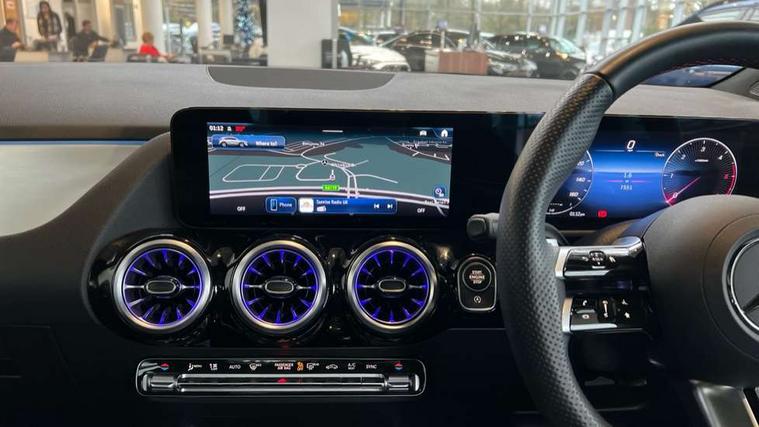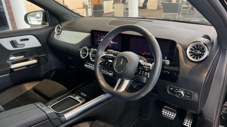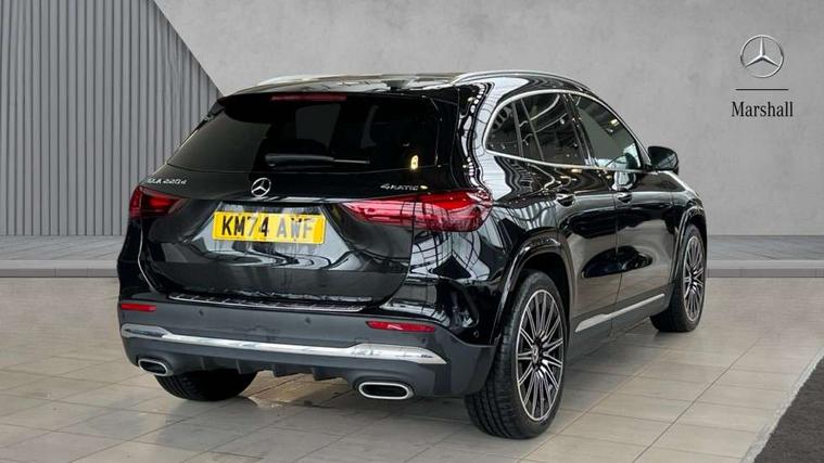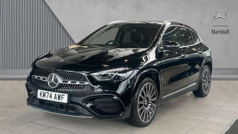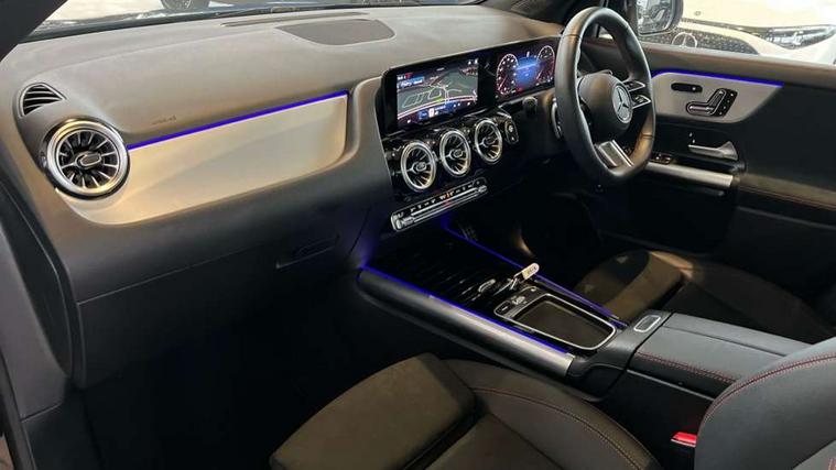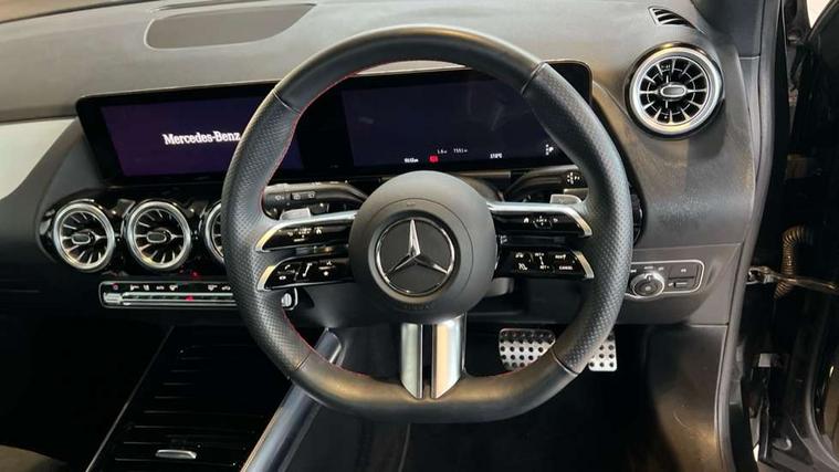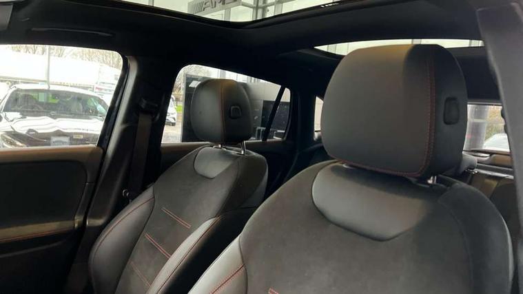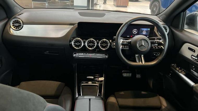 10.25 inch touchscreen central media display, 10.25" Digital instrument cluster display screen, Attention assist, Direct steering, DYNAMIC SELECT with a choice of driving modes (ECO, Comfort, Sport and Individual), Easy-pack tailgate, ECO start/stop function, Fingerprint scanner, Fluid level warning indicator for fuel, oil, coolant and washer fluid, Full color head up display, Hard-disk navigation, Hey Mercedes Voice activation, Lamp failure indicator, Lane keeping assist (LKA), Mercedes me connect including emergency call system, accident recovery, breakdown and maintenance management, Mercedes me remote services, Multi function trip computer, Outside temperature gauge, Owners manual and service booklet in English, Pre-installation of private car share, Radio aerial integrated into front and rear windshields, Service indicator (ASSYST), Smartphone integration with Apple CarPlay and Android auto, Traffic sign assist, Wireless charging, Lowered comfort suspension, Rear axle multi-link, Suspension with adaptive damping system, Bluetooth connectivity including audio streaming, DAB Digital radio, MBUX multimedia system, Mercedes-Benz (225w) sound system with 10 speakers, Adaptive brake lights, Adaptive full LED rear lights with automatic adjustment of light intensity to the surroundings, Aluminium roof rails, AMG front apron with front splitter in the colour of the vehicle with chrome trim element, AMG rear apron with visible tailpipe trim and chrome trim element, AMG specific/dual flow exhaust pipes in chrome (non-functional), Automatic headlamp activation, Beltline trim and window line trim strip in high gloss black, Black grained side sill trim with chrome inlay, Body coloured door handles with chrome insert for keyless entry, Car wash function, Cornering light function with activated high beam, Dark privacy glass from B-pillar backwards, Electric front windows, Electric rear windows, Electrically adjustable and heated door mirrors with integrated LED indicators, Exhaust system with 2 Visible tailpipe trim elements and rear apron with trim in chrome, Heat insulating dark tinted glass, Heated glass rear windscreen + timer control, Illuminated door sill panels with Mercedes-Benz lettering, Interior mirror with black reading lamps and frameless, LED daytime running lights, LED third brake light, Multibeam LED headlamps with adaptive highbeam assist plus, Panoramic sunroof, Rain sensor windscreen wipers, Rear fog lights, Rear side wing doors, Rear wiper, Wheel arch liners in the colour of the vehicle, 3 seat bench in 2nd row, 3 spoke flat bottom multifunction nappa leather steering wheel, 40:20:40 split folding rear seat backrests, Adjustable head restraints, Air conditioning - air vents with silver chrome surround, Air conditioning - Two zone thermotronic luxury automatic climate control with display, AMG floor mats, Auto Mercedes-Benz child seat recognition sensor, Black roof lining, Courtesy light in boot, Electrically adjustable front memory seats with four way lumbar support, Fluorescent jacket, Front centre armrest with stowage, Galvanished gear shift paddles on steering wheel in silver chrome, Heated front seats, Illuminated glovebox, Interior lighting - 64 colour Ambient lighting, Luggage net on driver/front passenger seat backrest, Manually height and reach adjustable steering column, Single front passenger seat, Sports pedals in brushed stainless steel with black rubber studs, Sports seats, Sports steering wheel, Stowage compartment in centre console, Stowage compartment with retractable cover, Sunvisors with illuminated vanity mirrors, Twin front cup holders, Two outer rear seat isofix and top tether child seat fixing points, Comfort seat pack - GLA Class, Driving assistance package - GLA, Interior lighting with light and sight pack - GLA, Keyless go comfort package - GLA, Mirror pack - GLA Class, Night package - GLA, Off road engineering pack - GLA, Parking package with 360-degree camera - GLA, USB package plus - GLA, 3 rear 3 point seatbelts, ABS with Brake Assist, Active bonnet pedestrain safety measure which detects an impact and raises bonnet by 65mm, Active brake assist includes forward collision warning system with autonomous braking, Adaptive brake assist with hold function and hill start assist, Black seatbelts, Bonnet with power domes, Brake pad wear warning indicator, Braking system with larger brake discs on the front axle, Childproof locks manually operated for rear doors and electrically operated for rear power windows, Crash responsive emergency lighting, Driver and passenger head and side airbags, Drivers knee airbag, Dual stage driver/passenger airbags, Electronic parking brake, ESP curve dynamic assist, ESP with ASR, Exit warning, Front and rear seatbelt reminder, Front brake callipers with Mercedes Benz logo lettering on front, Front brake discs internally ventilated and perforated, Front passenger seat occupancy sensor, Sports braking system, Tyre pressure monitoring system, Warning triangle and first aid kit, Window airbags, Alarm system with immobiliser and interior protection -Thatcham category 1, Guard 360 degree vehicle protection, Keyless Go starting function, Remote central locking and crash sensor with emergency opening function, Light longitudinal grain aluminium trim, 20" AMG multi spoke light alloy wheels aerodynamically optimised and painted in black with a high-sheen rim flangle RVT, Summer tyres, Tirefit tyre sealant kit,