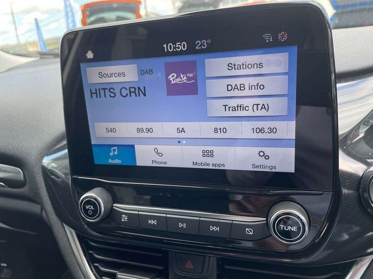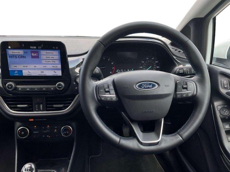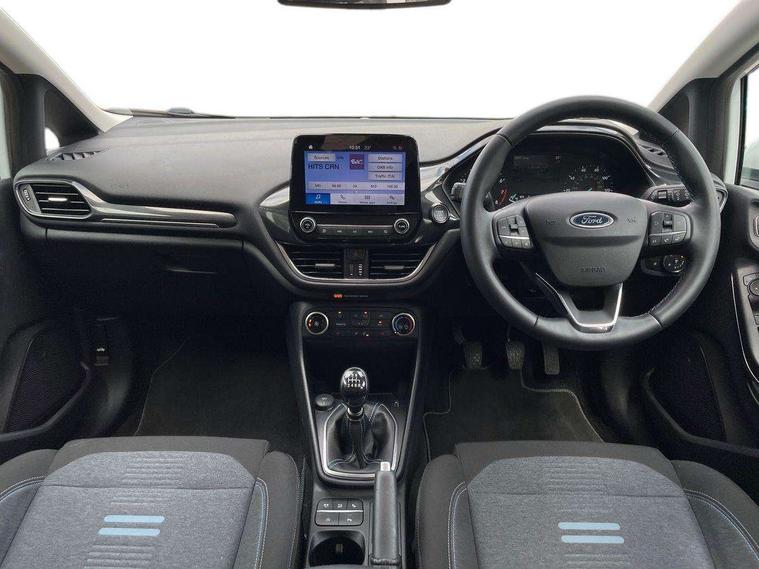 4.2" Colour TFT Ice blue illumination analogue cluster, Driver alert system, Electric power steering, Ford easy fuel, Lane keep assist, Lane keeping aid, Rear parking distance sensors, Selectable drive modes (Normal, Sport, Track), Trip computer, Rough road suspension with increased ride height adjust, 3rd brake light, Auto high beam, Automatic headlights, Body colour bumpers, Body coloured electrically operated with side indicators, Electric front windows/one touch facility, Electric rear windows, Quickclear heated windscreen, Rain sensing wipers and auto dimming rear view mirror, Rear privacy glass, Rear side wing doors, Rear wiper, Rugged bodystyling kit with active front wing badges, 3 rear headrests, 3 seat bench in 2nd row, Adjustable head restraints, Centre console with opening armrest, 2x cupholders, 12v and USB, Cloth upholstery with dark blue stitching, Leather gear knob, Manual 2 way passenger seat adjust, Manual 4-way driver seat adjust, Manual air conditioning, Premium floor mats, Sensico wrapped steering wheel, Single front passenger seat, 3 point seatbelts on all rear seats, Electronic stability control with hill start assist, Front and rear seat belt warning, Manual child lock in rear doors, Tyre pressure monitoring system, Keyless start with 'Ford Power' starter button, MyKey system, Remote central locking, Thatcham alarm with power door dead locks, 17" 5 spoke alloys with rough metal machined finish,