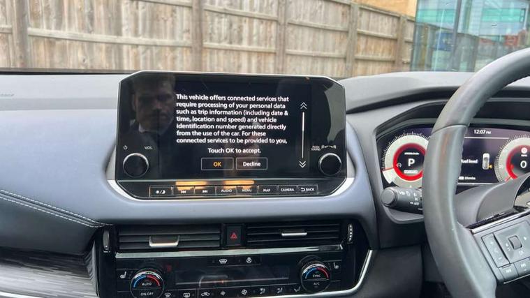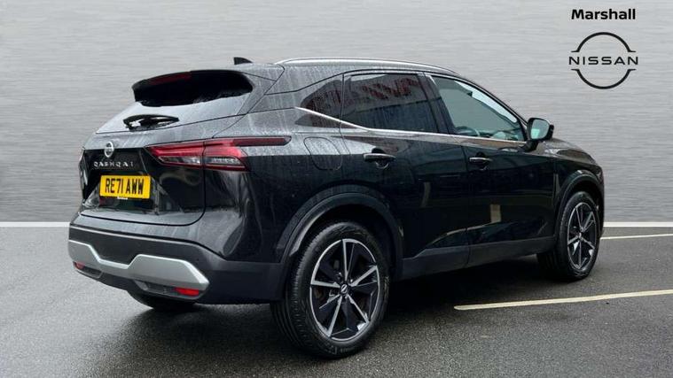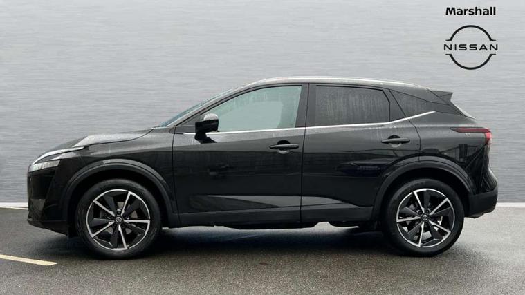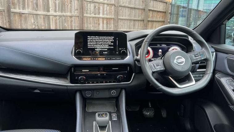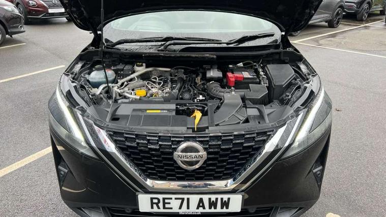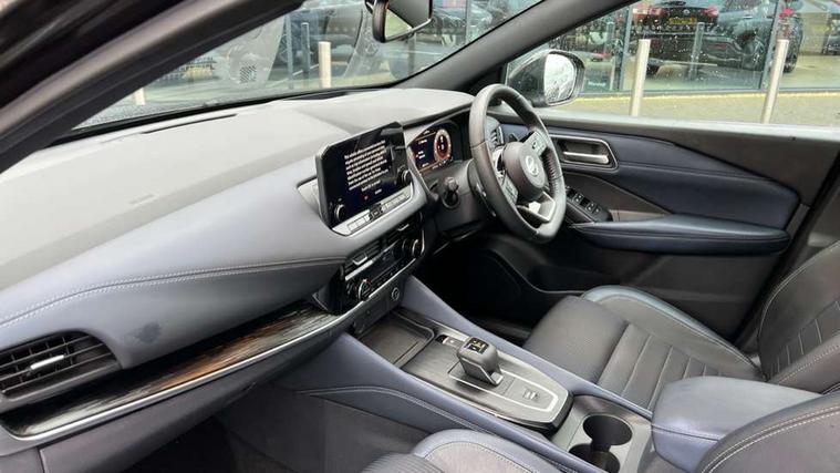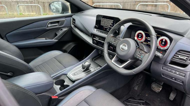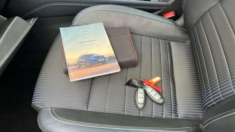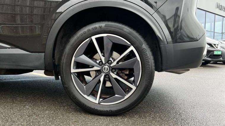Blind spot warning, Drive modes (sport, normal, eco), Electric speed sensitive power steering, Emergency and breakdown call, Front and rear parking sensors, Full Digital 12.3" TFT Digital Combimeter, Google maps services - search, weather, 3D maps and Google street view, Hands free power tailgate, Idle stop/start system, Intelligent around view monitor, Intelligent Cruise control (ICC), Intelligent driver alert system, Intelligent forward collision warning, Intelligent lane intervention, Lane departure prevention, Lane departure warning system, Moving object detection, Nissan connect 9" touchscreen infotainment system, Nissan connect navigation, Push button starter, Rear cross traffic alert, Remote control services - door locks, lights, horn and car locator, Telematics - notifications and connectivity services, TomTom live traffic services, Traffic sign recognition with legal speed adjustment, Trip computer, Virtual personal assistant and firmware over the air capability, Wireless Apple CarPlay and wired Android Auto, Wireless charging pad, 6 speakers, AM/FM audio system with DAB, Bluetooth audio streaming, Front USB connections (Type-A and Type-C), Rear USB charging only ports (Type-A and Type-C), Auto dimming rear view mirror, Auto rear wiper when reversing, Body colour mirror caps, Body coloured door handles, Bodyside mouldings, Chrome side window finisher, Door handle with button, Dusk sensor, Electric auto folding door mirrors, Electrically adjustable and heated door mirrors with LED turn indicator, Fixed panoramic glass roof with electric sunshade, Follow me home headlights, Front and rear LED turning signals, Intelligent auto headlights, LED daytime running lights, LED rear lights, One touch front and rear electric windows with remote opening and closing, Partially body coloured bumpers, Privacy glass, Rear roof spoiler, Rear side wing doors, Rear styling plate, Roof rails, Shark fin antenna, Splash free rain sensing wipers, Super UV and infrared cut glass, Three blink turn signal, 12v power socket in dashboard and luggage, 2 way electrical driver lumbar adjustment, 2x Rear coat hooks, 3 bench rear seats in 2nd row, 3 rear headrests, 4 folding assist grip, 6 Luggage hooks - 4 on floor, 2 on side, 60/40 split folding rear seat bench, 8 way electric adjustable drivers seat, Ambient lighting around centre console, Ambient lighting in front doors, Centre console storage tray, Chrome interior door handles, Cloth/syntech leather monoform upholstery, Dark headlining, Driver and front passenger sunvisors with illuminated vanity mirrors, Driver seat back pocket, Dual zone automatic climate control with pollen filter, Front and rear door storage, Front cupholders x 2, Front door with bottle holders, Glovebox with light, Hard trunk cover, Height adjustable front headrests, Leather steering wheel, Luggage board system, Luggage space lighting, Manual lumbar support on passenger seat, Manually adjustable passenger (slide recline + lifter), Multifunction steering wheel, Passenger seat back pocket, PVC front centre console and armrest, Rear armrest with 2 cupholders, Rear door bottle holders, Single front passenger seat, Soft PVC kneepad, Steering wheel gearshift paddles, Steering wheel switches, Tilt/telescopic adjustable steering wheel, Two rear isofix child seat anchorage points with top tether, Welcome light and doors with console tray ambient lighting, Heat pack - Qashqai, Tech Pack (ProPILOT + HUD), 3x3 point rear seatbelt pretensioners + load limiters, ABS, ESP, EBD and brake assist, Active brake limited slip, Auto hold function, Child locks on rear doors, Curtain and front side, far side airbags, Driver and passenger airbags, Driver, passenger and 2nd row rear seat belt reminder, Electronic parking brake, Front seatbelt pretensioners + load limiters, Height adjustable front seatbelts, Hill start assist, Intelligent blind spot intervention, Intelligent front emergency braking with pedestrian, cyclist recognition and junction assist, Intelligent rear automatic braking, Tyre pressure monitoring system, Vehicle dynamic control, Capless fuel filler, Engine immobiliser, Nissan i-key, Rear bumper with silver insert, Remote central door locking with deadlocking, Thatcham Cat.1 alarm, 19" Alloy wheels,