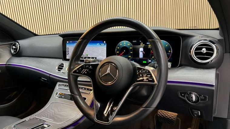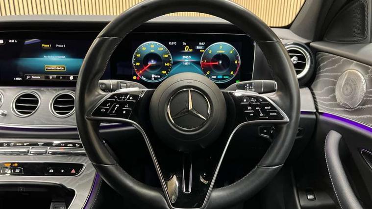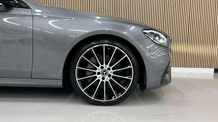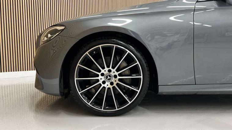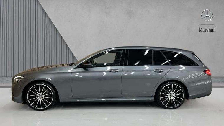 Attention assist, Brake wear warning display, Cockpit display 10.25" widescreen digital instrument cluster, Direct steer speed sensitive steering, DYNAMIC SELECT with a choice of driving modes (ECO, Comfort, Sport, Sport+ and Individual), Easy-pack tailgate - Powered opening/closing automatically, ECO start/stop function, Emergency call service, High resolution 10.25" multimedia colour display, MBUX voice control activated by keywords "Hey Mercedes", Mercedes connect me, Outside temperature display, Remote boot release, Service indicator (ASSYST), Smartphone integration via Android Auto/Apple CarPlay, Media Interface, USB and Bluetooth interface, Status display for rear seat belts in instrument cluster, Touchpad without controller, Traffic sign assist, Trip computer in multifunction display showing current fuel consumption, Wireless charging, 25 litre AdBlue tank, 66 litre fuel tank, 9G TRONIC 9 speed automatic transmission, Agility control sports suspension with selective damping system and lowered by 15mm, Diesel particulate filter, Incorrect fuelling protection, Rear air suspension with level control, 2 USB ports in centre console, 2 USB ports in the rear, Burmester surround sound system with 13 speakers and a 9 channel amplifier with total output of 590 watts, MBUX multimedia system with DAB digital radio and touchpad including satellite navigation, 3rd brake light, Adaptive brake lights, Aerial integrated in rear window, AMG bodystyling front and rear aprons in polished aluminium, Chrome pins diamond radiator grille, surround in high gloss black, single louvre in chrome with insert in high gloss black and integral star, Chrome roof rails, Electric windows with one touch opening/closing and obstruction sensors, Electrically adjustable and heated door mirrors, Front apron in high gloss black, High gloss black exterior mirror housing, High gloss black rear bumper with chrome trim, Illuminated front door sill panels with Mercedes-Benz lettering, LED High Performance headlamps including integral LED daytime running lamps and adaptive highbeam assist, LED rear lights, Panoramic electric glass sunroof, Privacy glass Includes rear side windows and rear windscreen, Rain sensor with automatic headlight activation, Rear side wing doors, Rear wiper, Tail lights, Top surround of side windows in polished aluminium, Visible twin pipe exhaust system integrated into bumper, Waistline trim strip in high gloss black, 3 seat bench in 2nd row, 3 spoke multifunction flat bottom AMG steering wheel with chrome inserts and touch control buttons, trimmed in black nappa leather, 40:20:40 split folding rear bench seat, Artico man-made leather upper dashboard and beltlines with contrast stitching, Automatic child seat recognition sensor, Black door pins, Black roof lining, Central stowage compartment with 12 V socket in centre console, USB socket for use with Android Auto and Apple CarPlay, Courtesy lights in rear grab handles with reading light functionality, Floor mats with AMG lettering, Four way partially front electric seat adjustment, Front centre armrest with stowage compartment, Glasses compartment in overhead control panel, Glove compartment - lockable, air conditioned and illuminated, Head restraints for driver and front passenger (four-way adjustability) and in rear (two-way), Heated front seats, Interior lighting - 64 colour Ambient lighting, Leather upholstery, Seat occupancy sensor for front passenger seat, Single front passenger seat, Steering column electrically adjustable for height and reach, Steering wheel multifunction with gearshift paddles, Steering wheel touch control buttons for audio and onboard settings, Sunvisors with illuminated vanity mirrors, THERMOTRONIC automatic climate control system with 3 climate zones, Mirror pack - E Class, Parking package including 360 degree camera - E Class, Seat comfort pack - E Class, Stowage pack - E Class Estate, 3x3 point rear seatbelts, Active bonnet pedestrian safety measure which detects an impact and raises bonnet, Adaptive brake system with HOLD function and brake drying in the wet, Airbags - sidebag for driver and front passenger with combined thorax/pelvis bag, Anti-lock braking system (ABS), Childproof locks manually operated for rear doors and electrically operated for rear power windows, Driver and adaptive front passenger airbags, Drivers knee airbag, Electronic parking brake, Electronic Stability Programme, Hill start assist, ISOFIX child seat attachment points two outer rear seats, Perforated brake discs with Mercedes Benz lettering, Pre-Safe anticipatory safety system, Tyre pressure monitoring system, Warning triangle and first aid kit, Window airbags, Alarm system/interior protection/immobiliser, Central locking with interior switch, automatic locking and crash sensor with emergency opening function, Chrome surround in electric key, Keyless entry go starting function, Grey open pore ash wood trim and centre console in grey open pored ash wood, 20" AMG multi spoke light alloy wheels painted in high gloss black with high sheen finsih, Summer tyres, TIREFIT with tyre inflation compressor,