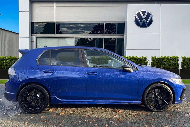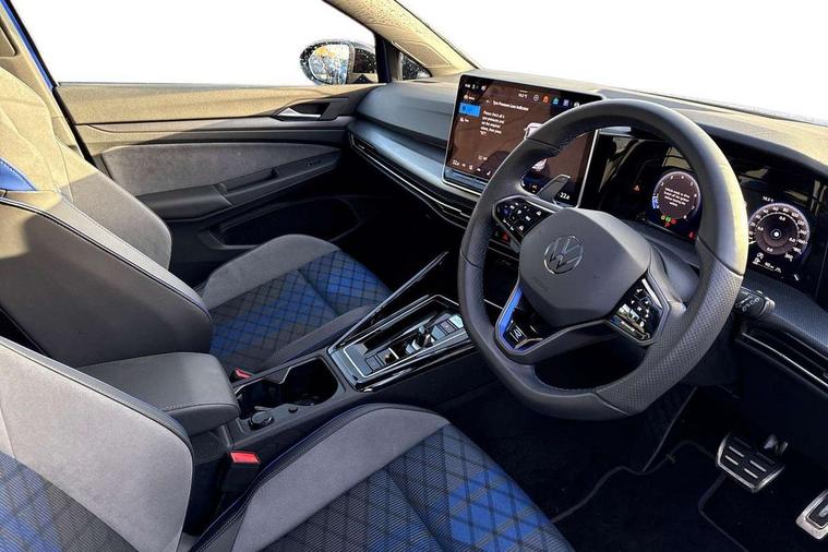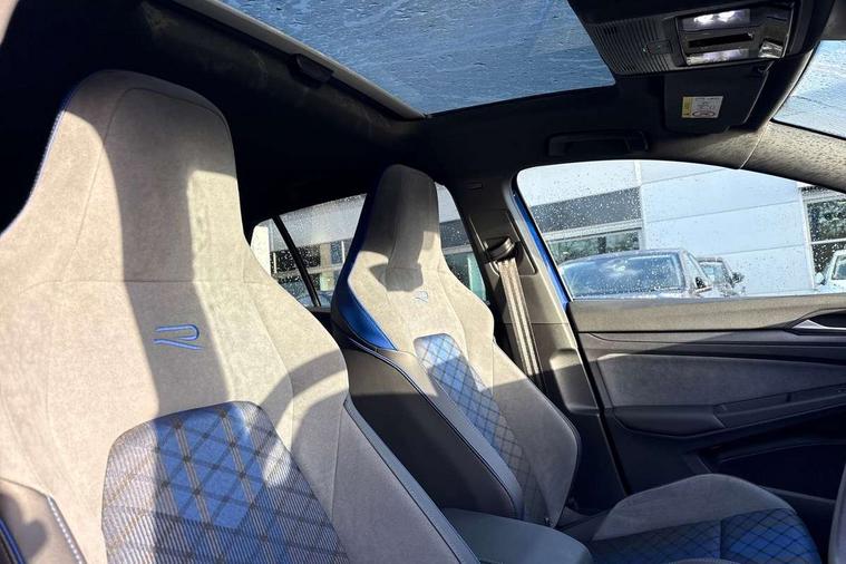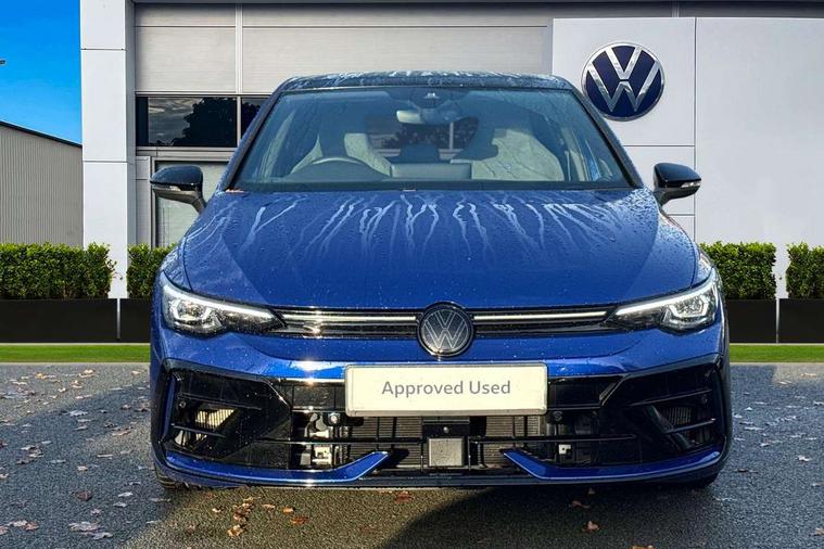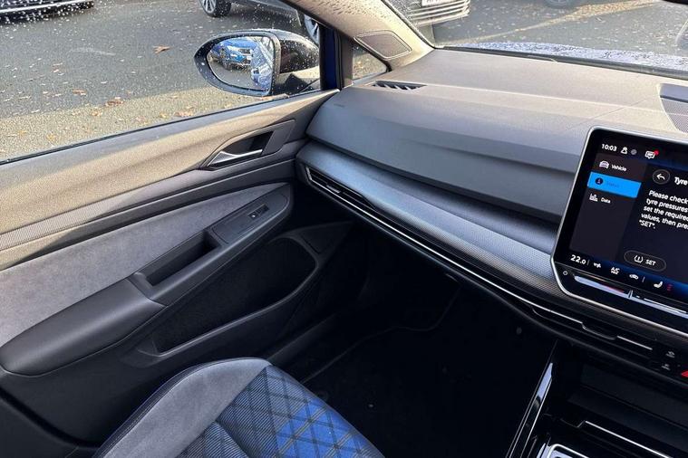 Activated carbon canister, Adaptive cruise control (ACC), Advanced driver attention and drowsiness monitor, Dynamic road sign display, E-Sim card for online connectivity, eCall emergency call system, Electronic maximum speed limit increased to 270 km/h, includes driving Modes 'drift' and 'special', larger roof spolier and GPS laptimer + G-Meter, Multi-color Digital cockpit pro, selection of different info profile possible, Multifunction front facing camera for distance control, Navigation system, Oncoming vehicle braking when turning including swerve support, Preparation for light assist system, Progressive steering, Side assist blind spot lane change system, rear traffic alert and exit warning system, Speed limiter, Speedo, rev counter, electronic odometer, trip, service interval display, exterior temperature and fuel gauge, Traffic jam assist, Voice enhancer and voice control, Warning signal and warning light for front and rear seatbelts not fastened, We connect plus preparation, We connect preparation, Wireless app connect, All wheel drive - 4Motion, Petrol Particulate Filter, Sports suspension, Start-stop system with battery regeneration (recuperation - energy recovery during braking), XDS electronic differential lock for improved traction and handling, 2 USB C ports in front, 2 USB charging sockets on the centre console in the rear charging capacity upto 45W, Comfort telephony + wireless charging, without wireless aerial connection, Digital radio reception (DAB), Diversity antenna for FM reception, Gaming platform via car app, Infotainment system with 12.9" display, Mobile phone interface with inductive charging feature, 3rd brake light, Auto dimming rear view mirror, Auto headlights, Automatic headlamp activation with Coming home and Leaving home feature, Black badge on B-pillar, Black mirror caps, Black strips on radiator grille and headlights, Body colour door handles, Darkened headlights, Darkened R Logos and VW logos in front, rear and on fender, Exhaust system with black tailpipe, Exterior ambient lighting with illuminated lighting animation and wake up/goodbye scenario, Exterior mirrors convex on the left and aspherical on the right, Front and rear electric windows, Front fog lamps and cornering light, Heat insulating windshield made of laminated glass, LED daytime running lights, LED matrix headlights with ambient light V2, advanced high beam, dynamic range contol with cornering, LED rear lamp with indicator, poor weather, R name plate, Rain sensor, Rear fog light on one side and reversing lights on both sides, Rear side wing doors, Rear tinted glass 65% light absorbing from B pillar backwards, Rear windscreen washer and wiper with interval delay, Remote electrically foldable door mirrors, puddle lights and reverse activated passenger's door mirror, Welcome light with surround lighting, 12V socket in front centre console, 12V socket in luggage compartment, 3 rear head restraints, 3 seat bench in 2nd row, 30 colour ambient lighting, illuminated center console storage compartment in front, Air care climatronic 3 Zone automatic climate control with rear air conditioning control panel, Aluminium gearshift handle, Brushed stainless steel pedals, Carpet mats, front and rear, Front centre armrest, Integrated front head restraints, ISOFIX anchors for child seats on outer rear bench seats and on front passanger seat compatible for i-Size, Luggage compartment lighting, Rear cupholder and loadthough, Single front passenger seat, Soul black instrument panel, Split folding backrest with centre armrest and unsplit rear seat bench, Storm grey roof lining, Sun visors with illuminated vanity mirrors, Driver assistance pack - Golf DSG Estate/Hatchback, R styling pack - Golf, Technology park and comfort pro package - Golf Hatchback, 3 point height adj front seatbelts + pretensioners, 3 rear three point seatbelts, ABS, Autonomous emergency braking front assist with pedestrian and cyclist monitoring, Child locks on rear doors, Disc brakes in rear incl. brake calipers in black with darkened R-logo, Driver and front passenger airbag with front passenger airbag deactivation, Electronic parking brake with auto hold, ESC (Electronic Stability Control), Extended pedestrian protection measures, Hill start assist, Two tone horn, Tyre pressure loss indicator, Volkswagen roadside assistance, Anti theft wheel bolts, Preparation for alcohol interlock, Wheel hub cover with darkened R-logo,