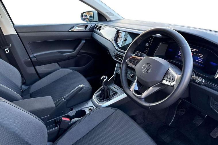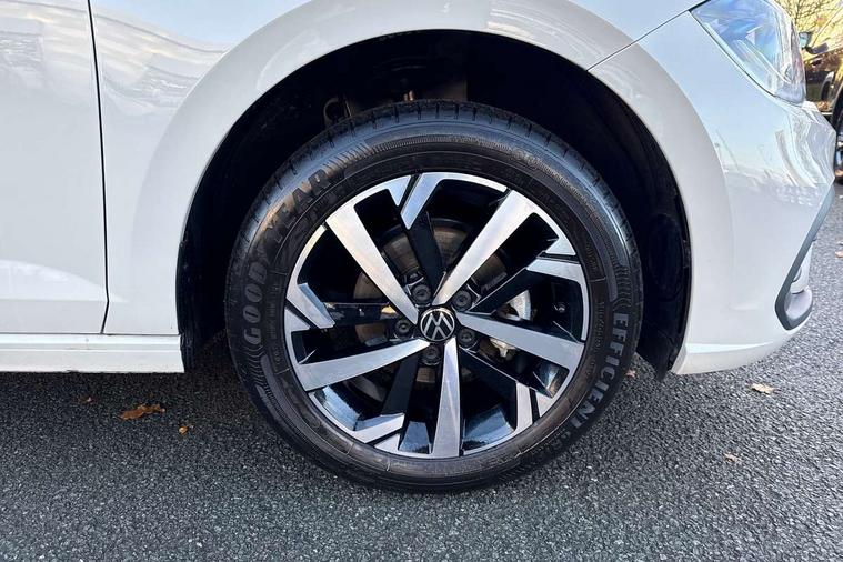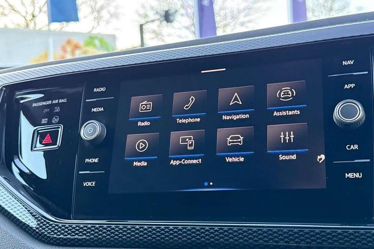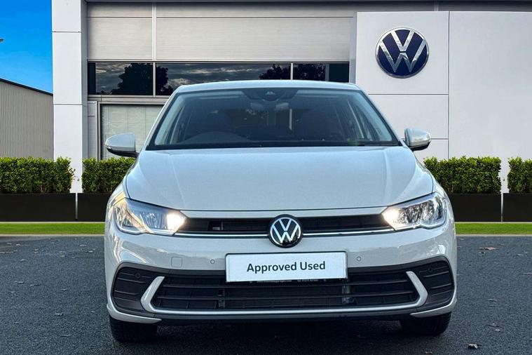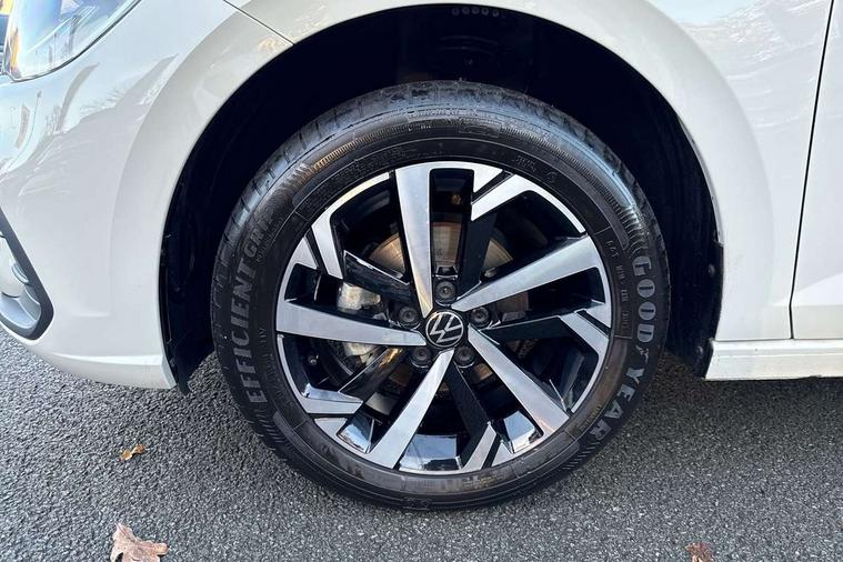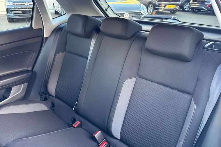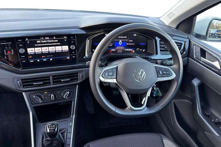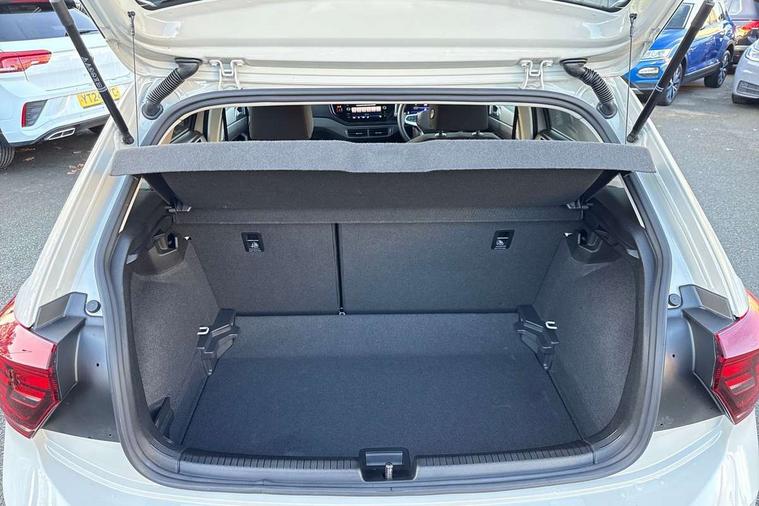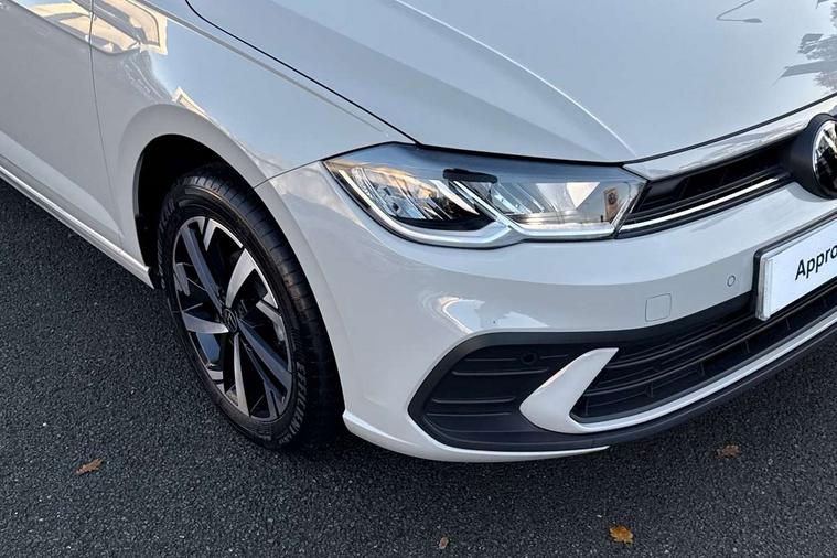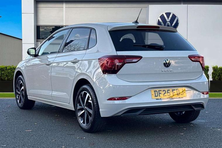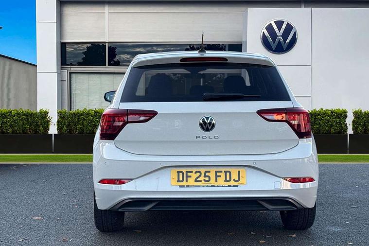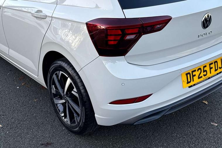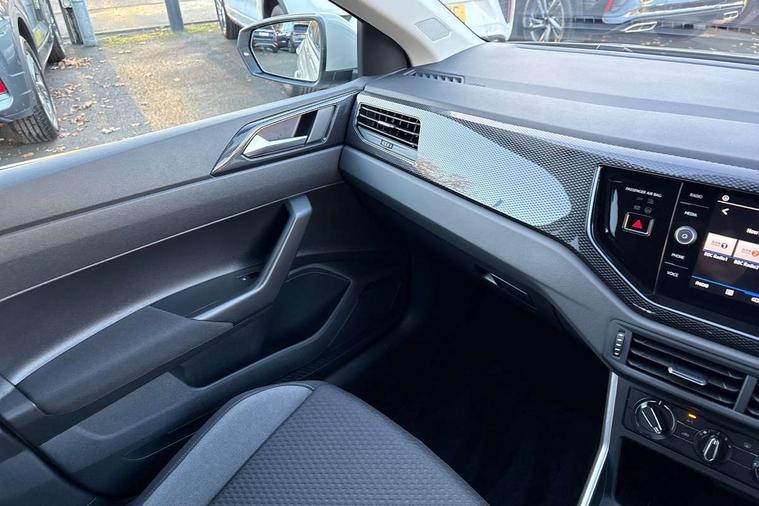 Adaptive cruise control without follow-to-stop and speed limiter, Advanced driver attention and drowsiness monitor, Bluetooth mobile phone interface, Dynamic road sign display, Emergency call service, Multifunction front facing camera for distance control, Park distance control, Power assisted speed sensitive steering, Preparation for navigation system with media and internet package, Preparation for We connect and We connect plus, Rear view camera, Speedo and rev counter, electronic odometer, trip, service interval display and exterior temperature gauge, Standard rear axle, Travel Assist - Lane keeping system and traffic jam assist, Travel assist including emergency assist, Trip computer, Warning signal and warning light for front and rear seatbelts not fastened, Washer fluid level indicator, Wireless app connect, Front wheel drive, Rear shock absorpion, Start-stop system with battery regeneration (recuperation - energy recovery during braking), DAB Digital radio, Diversity antenna for FM reception, Front and rear 6 speakers, Automatic dimming interior rear view mirror, Automatic headlight control with LED separate daytime running lights with coming/leaving home function, Body colour bumpers with chrome inserts, Body colour door handles, Body colour door mirrors, Electric front windows, Engine badge deletion, Headlight range adjustment, Heat insulating and laminated safety glass windshield, LED Headlights, LED rear combination lamps, Power folding adjustable/heated exterior mirrors and front passenger exterior mirror lowering function, Rain sensor, Rear electric windows, Rear fog light, Rear side wing doors, Rear tinted glass from B-pillar backwards approx 65% tinted, Rear windscreen washer and wiper with interval delay, Third brake light, 12V power socket in centre console, 2 front and 2 rear reading lights with switch off delay and dimmer, 2 USB-C ports in the front, 2 USB-C charging sockets on the center console in the rear, 3 rear head restraints, 60/40 split folding rear seat and rear seat bench not split, Ceramique roof lining, Chrome plated radiator grille inserts, air vent surrounds and light switch surrounds, Door and side trim panel, Driver and front passenger seat height adjustment, Driver/passenger sunvisors with illuminated vanity mirrors, Front centre armrest, Front seat backrest storage pockets, Front standard seats, Handbrake lever handle in leather, Hartley/Thomas cloth upholstery, Headliner in recycled material, Isofix child seat preparation easy-fit (for two outer rear seats, and front passenger seat) compatible with I-size, Leather trimmed gear knob, Luggage compartment cover, Luggage compartment lighting, Removable luggage compartment floor, Single front passenger seat, Standard climatic zones, Standard pedal cluster, Three spoke leather wrapped multifunction steering wheel, Light and vision pack - Polo, 3 point height adj front seatbelts + pretensioners, 3 point seat belt for centre rear seat, 3 point seatbelts, outer rear with ECE lable, ABS, Driver and front passenger airbag with front passenger airbag deactivation, Drivers and front passengers safety optimised head restraints, ESC (Electronic stability control) + EDL (Electronic Differntial lock) and ASR (Traction control), Extended and predictive pedestrian/ cyclist protection, Front assist with autonomous emergency braking (for Adaptive Cruise Control ACC up to 130 mph), Front curtain and side airbags with center airbag, Front disc brakes, Hill hold control, Manual child lock in rear doors, Rear drum brakes, Single tone horn, Tyre pressure loss indicator, Alarm with interior protection, Anti-theft alarm system with interior monitoring, backup horn, and towing protection, Anti-theft wheel bolts, Electronic engine immobiliser, Lava stone black gloss/matt decorative inserts in dash and front door panels, 16" Torsby alloy wheels, Low rolling resistance tyres,