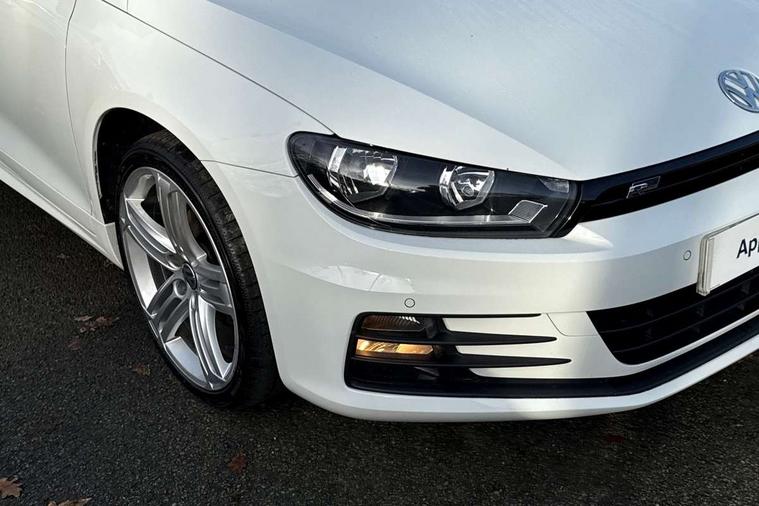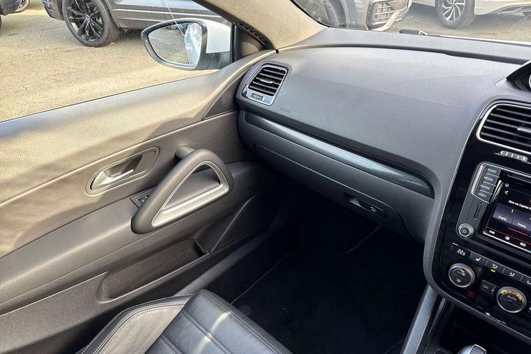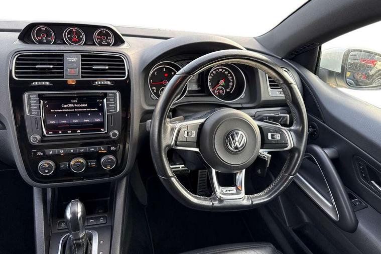 'Lights On' Reminder warning buzzer, Bluetooth system, Discover navigation system with 6.5" colour screen + radio/CD player and aux in, Exterior temperature gauge, Flat tyre indicator, Front and rear parking sensors, Multi function display colour screen, Multifunction computer - Highline, Rev counter, Service interval indicator, Speed sensitive variable PAS, Diesel particulate filter, DAB Digital radio, MDI with USB/iPod connection cables, Volkswagen media control, Auto dimming rear view mirror/rain sensor, Automatic activation of hazard warning lights, Body colour door handles, Body colour door mirrors with integral indicators, Body coloured bumpers, Coming home function, Dusk sensor + auto driving lights, Electric front windows, Electrically heated + operated door mirrors, Front fog lights, Intermittent rear wash/wipe, LED rear lights, Range adjustable headlights, Rear roof spoiler, 12V socket in luggage compartment, 2 bag hooks in luggage compartment, 2 cupholders, 2 rear head restraints, 2 Zone electronic climate control with automatic air recirculation, 3 spoke multifunction leather steering wheel with radio controls + paddle shift, 4 lashing points on luggage floor, 50/50 split folding rear seat backrest, Aluminium pedals, Black roof lining, Dust/pollen filter, Easy entry slide seats (access to rear seats), Front + rear carpet mats, Front centre armrest with storage compartment, Front footwell illumination, Front reading lights, Height/reach adjust steering wheel, Illuminated vanity mirrors, Interior light with delay, Isofix Preparation 2 Rear child seats, Leather gear knob, Leather handbrake grip, Lockable/illuminated air conditioned glovebox, Luggage compartment cover, Luggage compartment lighting, Sports front seats, Storage compartments in doors, Vienna leather heated seats+electric drivers lumbar + front pass lumbar adjust, Styling pack - Scirocco R Line/GTS, 2 rear 3 point safety belts, 2x3 point front seatbelts with pre-tensioners, ABS+EBD+Brake assist, Door open warning reflectors, Driver/Front Passenger airbags, Driver/Passenger whiplash optimised head restraints, ESP with EDL + ASR, Front and rear curtain airbags, Front seat side impact airbags, Hill hold function, Manual passenger airbag deactivation function, Seatbelt warning, Two tone horn, Alarm with interior protection, Electronic engine immobiliser, Remote central locking with 2 remote folding keys, Brushed aluminium instrument surrounds, Carbon look decorative inserts, Steel space saver spare wheel,