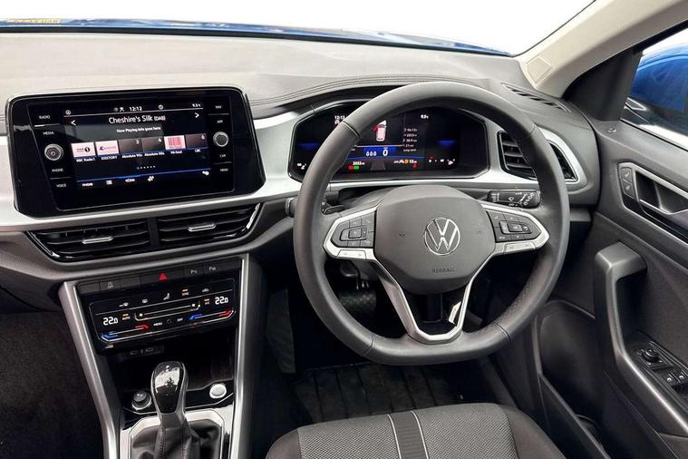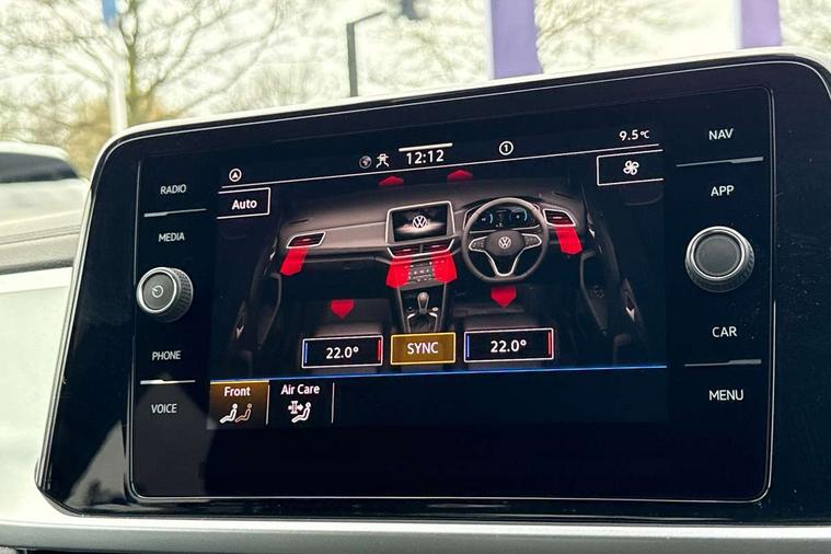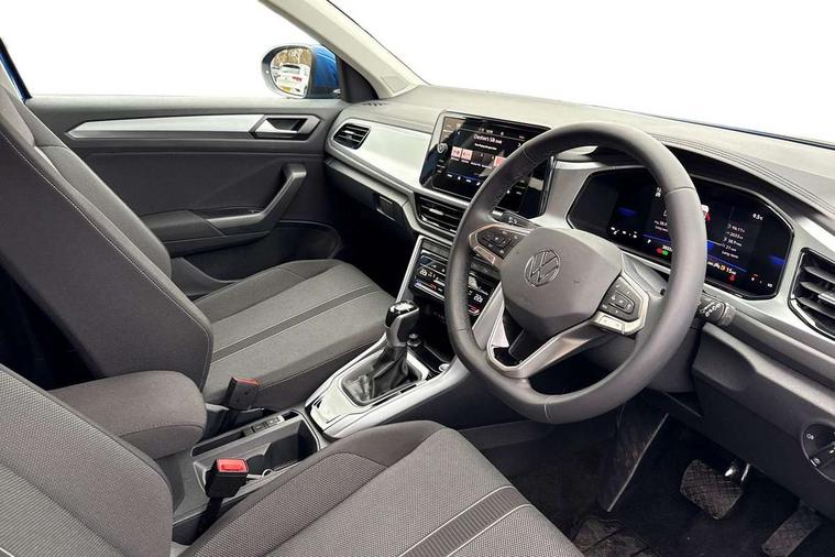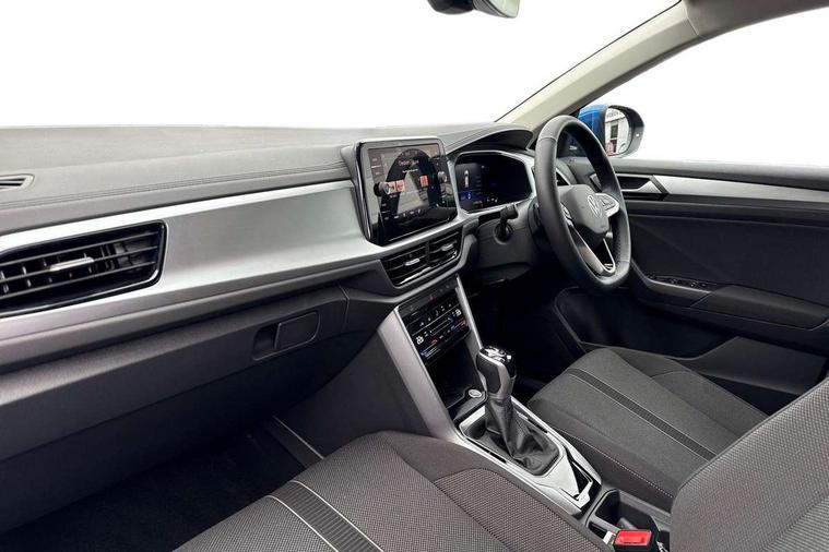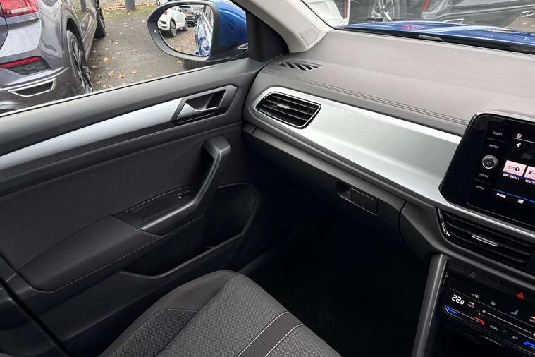 Advanced driver attention and drowsiness monitor, Dynamic road sign display, Emergency call service, Lane keeping system Lane Assist, Mobile phone interface, Modified key software - reduce switch off time for key status change to Long no motion, Online services, Park assist including front and rear parking sensors, Power assisted speed sensitive steering, Rear view camera, Service interval indicator, Tailgate/trunk lid release from outside, Think blue trainer driver tips and journey analysis, Warning sound and light for front seatbelts unfastened, Wireless app connect, Battery regeneration during braking, Front shock absorption, Rear shock absorption chassis with increased ride height, Start/stop function with battery regeneration, DAB Digital radio, Diversity antenna for FM reception, Music playback - MP3, WMA and AAC files, Premium USB cable in choice of either Apple or Android smartphone compatibility, SD card slot, Simultaneous pairing of 2 compatible mobile devices, Title and cover art display, We Connect and We Connect Plus functionality, Auto dimming interior rear view mirror, Automatic hazard lights activation under emergency braking, Automatic headlight control with LED separate daytime running lights with coming/leaving home function, Black roof rails, Body coloured bumpers and radiator grille with chrome trim and front fog lamps with chrome bezel, Body coloured exterior mirror housings and door handles, Electrically adjustable and heated door mirrors, Extended roof spoiler, Exterior mirrors aspherical on driver side, convex on front passenger side, External USB type C socket and charging sockets, Front windscreen wiper with intermittent wipe and 4 position delay, Heated rear window, LED 3rd brake light, LED rear combination lamps, LED rear number plate lights, Power windows with comfort operation and circuit breaker, Privacy glass for rear side windows and rear window, Rain sensor, Rear exhaust tailpipe, Rear fog light on one side and reversing lights on both sides, Rear side wing doors, Rear wash/wipe with intermittent wipe setting, Remote electrically foldable door mirrors, puddle lights and reverse activated passenger's door mirror, 12V power socket in centre console, 3 rear head restraints, 3 seat bench in 2nd row, 4 load lashing points in luggage compartment, Air care climatronic air conditoning system with active combination filter and 2-zone temperature control, Black stitching for floor mats, Ceramique roof liner, Cloth upholstery, Door and side trim panel in cloth, Drawer under drivers seat, Driver/front passenger seat height adjustment, Front centre armrest, Front comfort sports seats, Front cupholders x 2, Front reading light, Front seat back storage pockets, Glove compartment door with light, Instrument lighting, white adjustable panel illumination, Interior ambient lighting and surround lighting, Interior light delay, Isofix child seat preparation, Leather gearshift handle, Load-through provision with cup holder when folded down ('Unsplit rear seat bench, split folding backrest, with centre armrest), Luggage compartment lighting, Lumbar support for driver's and front passengers seat, Non-folding front passenger seat backrest, Single front passenger seat, Storage compartment in left and right luggage area, Storage compartment in rear doors, Storage compartments in driver and front passenger doors, Sunvisors with illuminated vanity mirrors, Variable boot floor, height adjustable and removable, Driver assistance pack without proactive passenger protection - T-Roc Life/Match, 3 point height adj front seatbelts + pretensioners, 3 point seatbelts in outer rear with ECE label, ABS, Child locks on rear doors, City emergency braking and pedestrian monitoring, Driver and front passenger airbag with front passenger airbag deactivation, Driver and front passenger safety-optimised head restraints, Drivers seatbelt reminder, Electronic parking brake, Electronic Stability Control (ESC) inc EDL (Electronic Differential Lock) and ASR (Traction Control), Front and rear passengers curtain airbag system including front side airbags, Front disc brakes, Hill start assist, Predictive pedestrian protection, Rear disc brakes, Two tone horn, Tyre pressure loss indicator, Volkswagen roadside assistance, Alarm with interior protection, Keyless locking and starting system keyless access with safelock, Pewter matt decorative inserts for intrument panel, centre console and door panels at the front, Trims for alloy wheels,