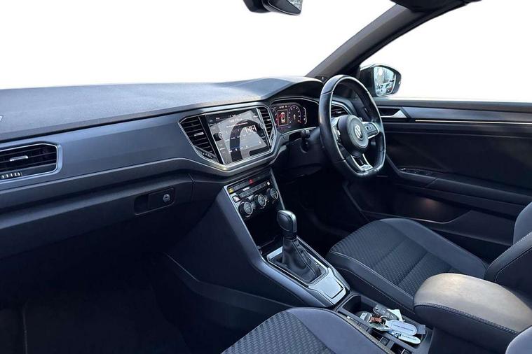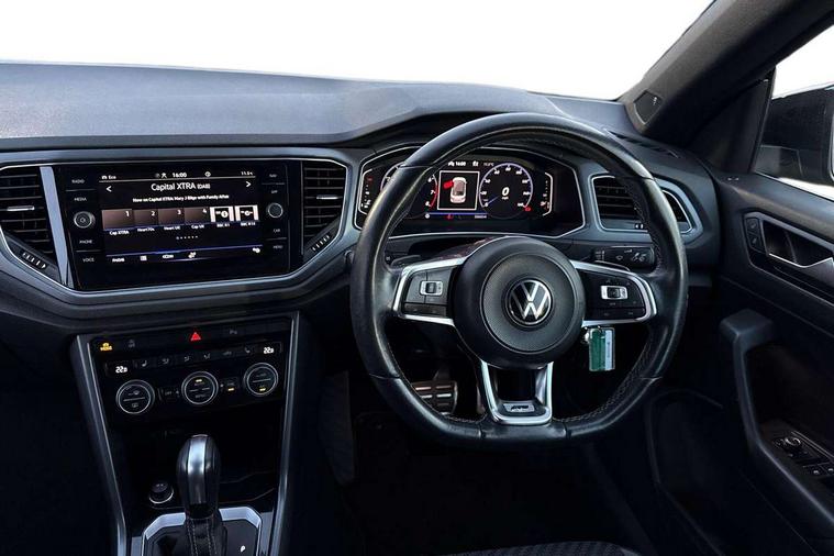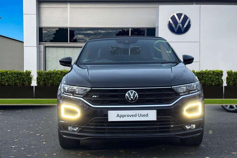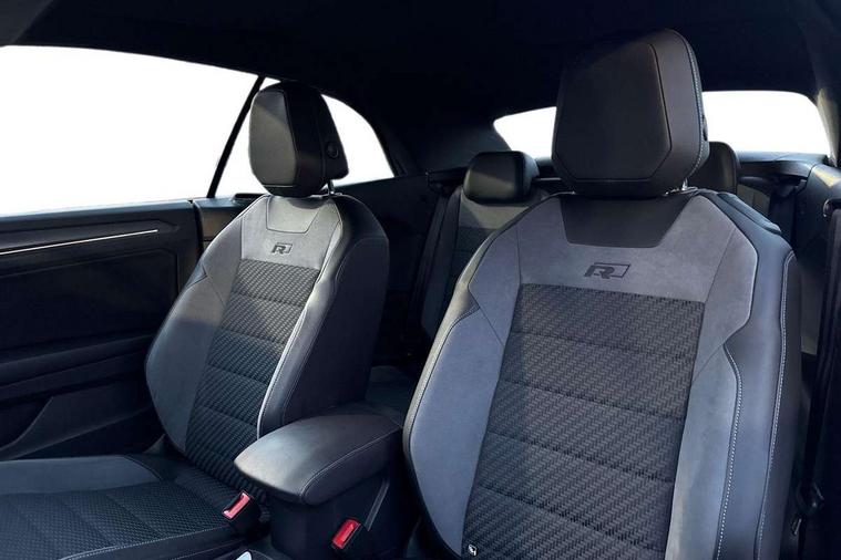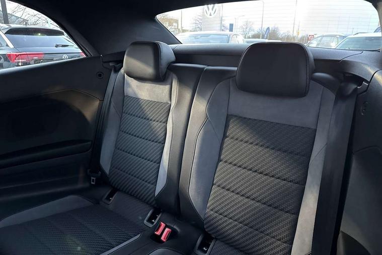 8" colour touch screen, Active Info display 10.25" high resolution TFT dash display with customisable menu and information, Adaptive cruise control, Bluetooth telephone and audio connection for compatible devices, Brake pad wear indicator, Car information display, Car-Net Security and Service, Driver alert system with fatigue detection, Driver tips and journey analysis, Dynamic road sign display, Emergency call service, Lane assist with warning text instrument cluster, Mobile phone interface, Modified key software - reduce switch off time for key status change to Long no motion, Multifunction computer with visual gear change recommendation for fuel consumption, Navigation system discover media including streaming and internet, Online services, Progressive power assisted steering, Speedo and rev counter, electronic odometer, trip, service interval display, digital clock and fuel gauge, Start/stop system with brake energy recovery, Tailgate/trunk lid release from outside, Warning sound and light for front seatbelts unfastened, Wired and wireless app connect, Bluetooth - Simultaneous pairing of 2 compatible mobile devices, DAB Digital radio, Diversity antenna for FM reception, Music playback - MP3, WMA and AAC files, SMS functionality - read, compose and send SMS messages using touch-screen display, Title and cover art display, USB-C Interface and USB charging socket, WeConnect plus, Auto dimming interior rear view mirror, Automatic coming/leaving home lighting function and daytime running lights, Automatic hazard lights activation under emergency braking, Body colour rear roof spoiler, Body coloured exterior mirror housings and door handles, Chrome effect left and right trapezoid exhaust tailpipe fascia surround, Chrome trim on upper and lower radiator grille, Darkened LED tail lamp, Dusk sensor, Dynamic headlight range control with self adjusting whilst driving, Electrically power adjustable, heated, folding, auto dimming, front passenger exterior door mirror lowering function, Front and rear electric windows, Front fog lights with static cornering function, Heat insulating glass windscreen, High level 3rd brake light, LED darkened rear light clusters, LED headlamps with automatic range adjustment and unique signature LED separate daytime running lights, LED rear number plate lights, LED tail lamp rear comination lamps, Power operated canvas convertible top, R-Line design body coloured bumpers, Rain sensor, Rear exhaust tailpipe, Rear fog lamp, Volkswagen roundel, Windscreen wiper with intermittent wipe light, 12V socket in centre console storage area, 2 front reading lights, 3 spoke leather wrapped multifunction sport steering wheel, 50/50 rear seat bench split folding rear seat backrests, Activated charcoal canister for intensified evaporation system, Chrome plated surround to light, mirror and window switch, Climate control - 2 zone electronic air conditioning with automatic air recirculation and allergy filter, Door and side trim panel in foam film, insert in leatherette, Entry aid easy entry (Front folding seats), Front + rear carpet mats, Front centre armrest, Front cupholders x 2, Front seat back storage pockets, Front sports comfort seats with manual height adjustment, Glove Compartment with light, Height/reach adjust steering wheel, Illuminated vanity mirrors in sun visors with air bag label on sun visor and b-pillar, Instrument lighting, white adjustable panel illumination, Interior light delay, Interior light in footwell, Isofix easy fit child seat preparation for 2 outer rear seats, Luggage compartment lighting, Power adjustable lumbar support in front, Rear head restraints, Scuff plates in door apertures, Stainless steel pedals, Storage compartments in driver and front passenger doors, Unique R Line door sill protectors, White ambient lighting, 2 x 3-point rear seatbelts, ABS, Autonomous emergency braking, Driver and front passenger safety-optimised head restraints, Drivers and front passengers airbags with passengers deactivation switch, Drivers seatbelt reminder, Electronic parking brake with auto hold, Electronic stability control (ESC) includes ASR, EDL, EDTC and trailer stabilisation function, Front assist with city emergency braking and pedestrian monitoring, Pedestrian monitoring, Predictive pedestrian protection, Rigid safety cell with front and rear crumple zones, Side airbag/thorax airbag system, for front passengers, Single tone horn, Three point height adjust front seatbelts + pretensioners, Tyre pressure loss indicator, Tyre pressure monitor, Ventilated front and rear disc brakes, Volkswagen roadside assistance, Alarm with interior protection and deactivation via infotainment system, Electronic engine immobiliser, Shadow steel matt decorative inserts in dash and door panel,