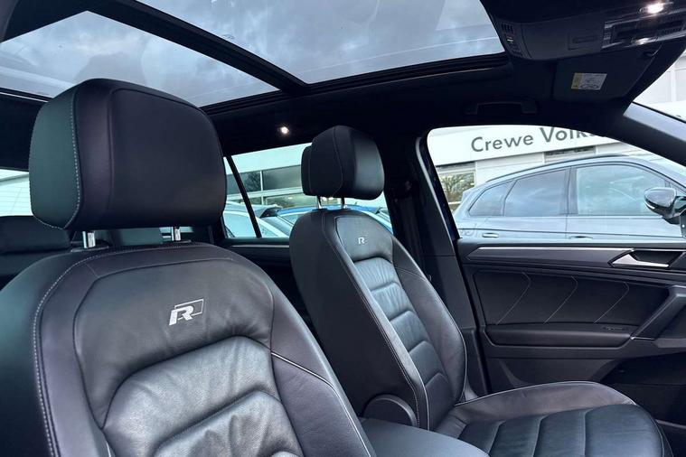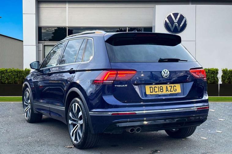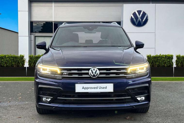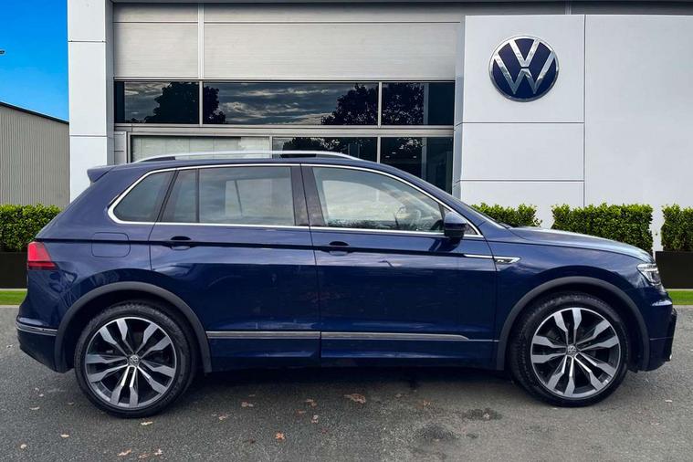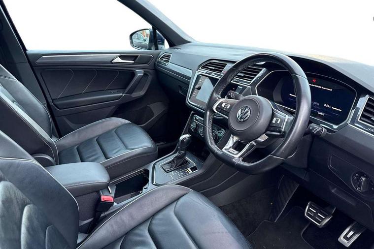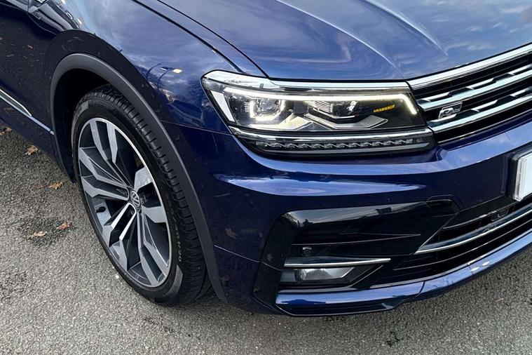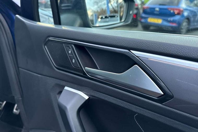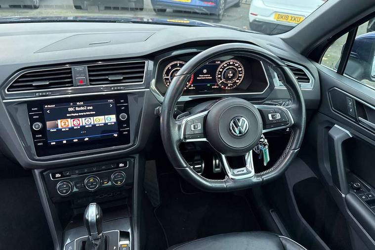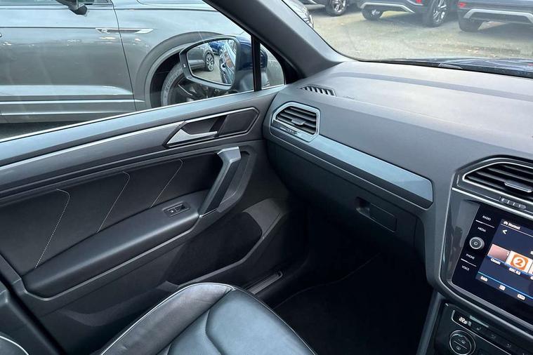 Active information display, Adaptive cruise control, App-Connect, Bluetooth phone integration system, Distance control assist, Driver profile selection, Fatigue detection system, Instrument cluster, Lane assist, Low washer fluid warning light, Outside temperature display, Progressive power assisted steering, Service interval indicator, Speed limiter, Warning lights, Diesel particulate filter, XDS electronic differential lock, 2x USB sockets in front, Aux-in socket, DAB Digital radio, MP3 compatible single CD player, SD card slot, Auto dimming interior mirror, Automatic activation of hazard warning lights, Body colour door handles, Body colour door mirrors, Body colour rear spoiler, Body colour side skirt, Body coloured bumpers, Chrome side window surrounds, Chrome trimmed radiator grille, Coming/leaving home lighting function, Dusk sensor + auto driving lights, Electric folding door mirrors, Electric heated + adjustable door mirrors, Electric panoramic sunroof with sunblind, Front and rear electric windows, Heated rear window, LED headlights with dynamic light assist daytime running lights and cornering front fog lights, LED rear lights, Piano black rear diffuser, R Line body kit, Rain sensor windscreen wipers, Rear windscreen washer and wiper with interval delay, Silver roof rails, Silver under body guard, Tinted windows (B pillar backwards), Windscreen wipers/ intermittent wipe + 4 position delay, 12V Accessory socket in centre console, 3 rear headrests, 3 zone climate control, 4 load lashing points, 40:20:40 split folding rear seats, Bag hook in luggage compartment, Black headlining, Driver + front passenger lumbar support, Foldable passenger seatback, Front + rear carpet mats, Front centre armrest with 12v socket, Front centre armrest with storage + rear 2 air vents + cupholders, Front seatback folding tables, Height/reach adjust steering wheel, Illuminated driver/passenger vanity mirrors, Illuminated scuff plates, Interior light with delay, Isofix Preparation 2 Rear child seats, Leather gear knob, Leather multifunction steering wheel with paddle shift, Load through provision with 2 cupholders when folded, Lockable cooled glovebox, Luggage compartment lighting, Luggage compartment side storage, Map pockets on front seats, Passenger seat height adjuster, Rear cupholders, Removable luggage cover, Sliding/reclining rear seats, Stainless steel pedals, Storage compartment in driver's door, Storage compartment in passenger's door, Storage compartment in rear doors, Storage tray on dashboard, Sunglasses storage, Variable boot floor, Ambient lighting pack - Tiguan, 3 rear 3 point seatbelts, ABS+EBD+Brake assist, Active bonnet, Active pedestrian safety system, Curtain airbags, Driver/Front Passenger airbags, Driver/Passenger whiplash optimised head restraints, Drivers knee airbag, DTC - Drag torque control, Electronic parking brake with auto hold, ESP with EDL + ASR, First aid kit, Front assist including city emergency braking, Front side airbags, Head airbag system, Height adjustable front 3 point seatbelts + pretensioners, Hill hold control, Passenger airbag deactivate switch, Passenger knee airbag, Pre crash system, Rear side airbags, Seatbelt warning lamp and buzzer, Two tone horn, Warning triangle, Alarm with interior protection, Electronic engine immobiliser, Remote central locking with 2 remote folding keys, Aluminium decorative inserts, Chrome door trim inserts, 20" Suzuka alloy wheels + anti theft wheel bolts, Steel space saver spare wheel,