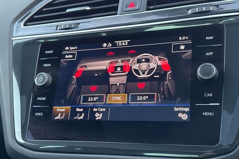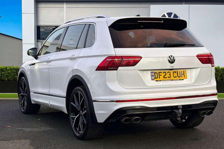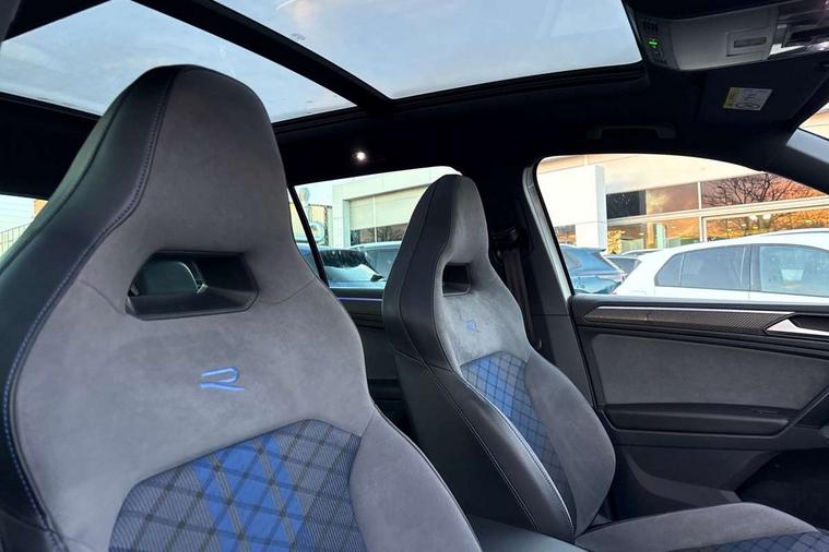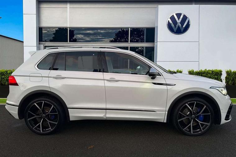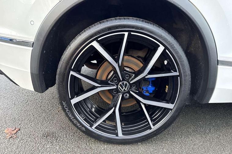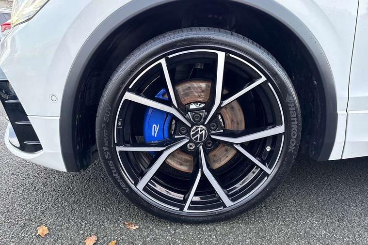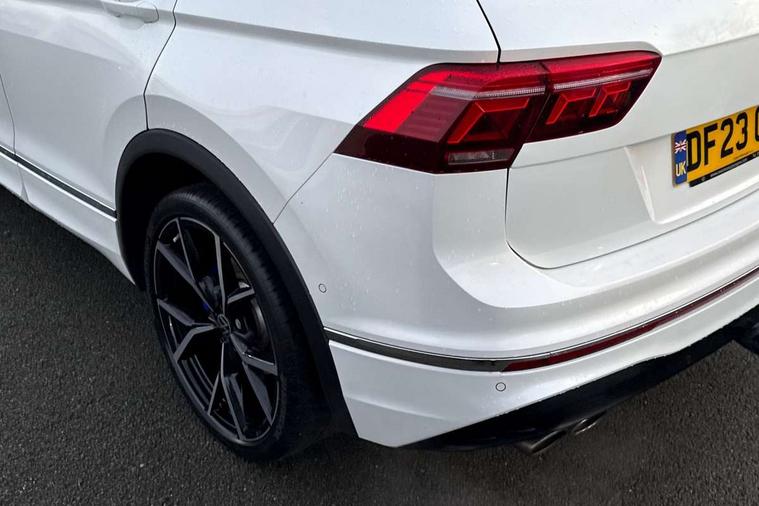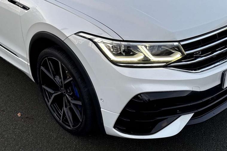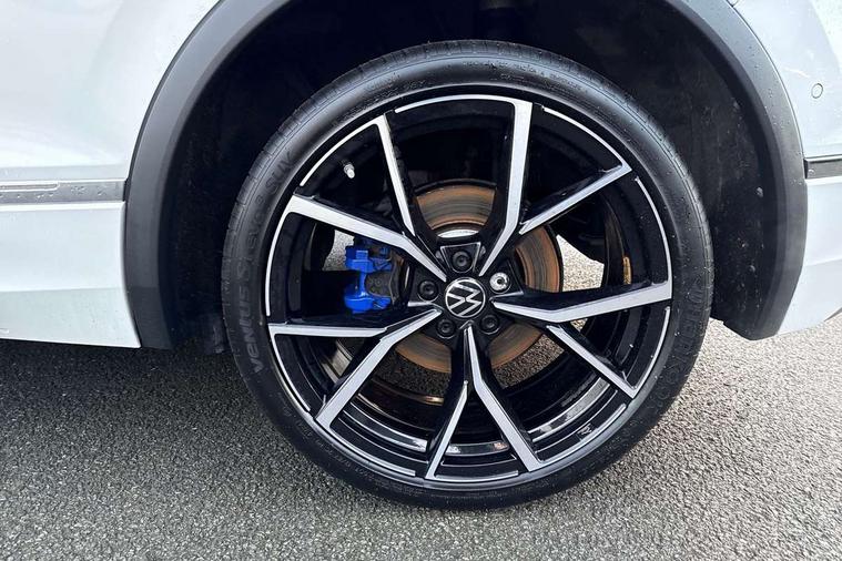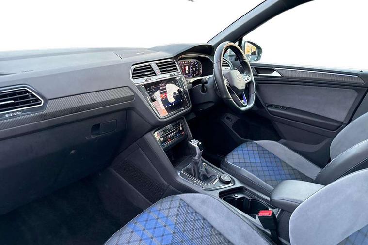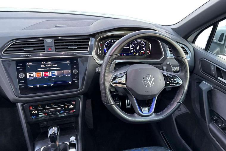 Adaptive cruise control ACC stop and go including speed limiter, App-Connect incl. App-Connect Wireless for Apple CarPlay and Android Auto, Bluetooth phone integration system, Distance control assist, Driver alert system, Driver profile selection, Dynamic road sign display, eCall emergency call system, Electromechanical speed sensitive power steering, Engine start/stop button, Instrument cluster mph speedometer Great Britain, Lane keeping system Lane Assist, Lights on warning, Motorised electric tailgate operated via key fob, drivers door and foot movement under tailgate, Multifunction front facing camera, Outside temperature display, Premium multifunction display with multi colour display, Rev counter, Revision / skills operating concept travel assistant, Service interval indicator, Speed limit display, Start/stop system with regenerative braking, Tailgate/trunk lid unlocking from outside, Trip computer, Warning sound and light for doors and tailgate open, ACC - Adaptive chassis contol with adaptive dampers, All wheel drive - 4Motion, Battery regeneration during braking, XDS electronic differential lock for improved traction and handling, 4 X 20 watt output, 8 Speakers, Diversity antenna for FM reception, SD card slot, Simultaneous pairing of 2 compatible mobile devices, SMS functionality - read, compose and send SMS messages using touch-screen display, Title and cover art display, USB C ports, Auto dimming interior rear view mirror, Automatic headlight control system, Body colour door handles, Body coloured door mirrors with integrated indicators, Chrome matt mirror covers, Chrome moldings on the side windows, Coming/leaving home lighting function, Dynamic headlight range control, Front and rear electric windows, Front illuminated door sills with R logo, Heated rear window, High level 3rd brake light, IQ light-Adv high beam, Dynamic light assist for LED matrix headlamp+LED separate DRL+DCL, dark red rear LED tech, Poor weather light+ cornering light, Laminated safety glass windshield, heat and sound insulating, LED rear number plate lights, License plate carrier in front and rear, Poor weather light and cornering light, Privacy glass for rear side windows and rear window, R-Logo light projection, R-Logo on radiator grille with side panels and rear, R-specific diffuser, painted black with cut out for trailer hitch, R-Specific front and rear bumpers, Rain sensor windscreen wipers, Rear fog lamp, Rear side wing doors, Rear spoiler in R style, Rear windscreen washer and wiper with interval delay, Side and rear windows in heat insulating glass, Silver anodised roof rails, Trailer Stability Programme, Windscreen wipers/ intermittent wipe + 4 position delay, 12V outlet in center console rear and in luggage compartment, 12V outlet in front and tray, 2 cup holders in front, 2 LED front reading lights, 2 LED rear reading lights, 3 bench rear seats in 2nd row, 3 rear headrests, 4 load lashing points, 40:20:40 split folding rear seats, Air Care Climatronic 3 zone automatic climate control with enhanced air filter and controls in the rear, Backrest release for left front seat, Black headlining, Climate control unit rear with touch function, Door and side trim panel in foam film, insert in leatherette, Floor mats with R-Logo and stitching, Front centre armrest, Front footwell illumination, Front seats head restraints (x-adjustment), Height adjustable front seats, Height/reach adjust steering wheel, Instrument lighting white adjustable panel illumination, Interior light with delay, Isofix Preparation 2 Rear child seats, Leather gear knob, Lighting door sill trim at front with R Logo, Lockable cooled glovebox, Luggage compartment lighting, Luggage net, Pedals and footrest in stainless steel, R Specific key caps, R-specific sport skin with R Logo in active Info dsiplay, R-taster (direct selection of race mode/ flap control), Rear bench seat asymetrically split folding, longitudinally movable and folding with load-through hatch and center armrest, Remote unlocking for rear seat backrest, Removable luggage cover, Removable rear headrests, Safety optimised front head restraints, Single front passenger seat, Sliding/reclining rear seats, Standard rear seat release, Storage compartment in driver's door, Storage compartment in passenger's door, Storage compartment in rear doors, Storage compartments in luggage area left and right, Storage tray on dashboard, Sun visors with illuminated vanity mirrors, Top sports seats integrated headrest, blue R-Logo in front seats, seat centre panels and outer rear seats in fabric inner side bolster art Velors, Variable boot floor, height adjustable and removable, Easy open and close pack with safelock - Tiguan, 3 point seat belt for centre rear seats, 3 point seat belts with seat belt pretensioners for the outer rear seats, Active bonnet, Curtain airbags for front and rear passengers, Driver/Front Passenger airbags, Drivers knee airbag, Electronic parking brake with auto hold, Electronic Stability Control with driver steering recommendation, ABS, ASR, EDL, EDTC and trailer stabilization, Front assist with autonomous emergency braking (for Adaptive Cruise Control ACC up to 130 mph), Front disc brakes, Front passenger airbag deactivation, Front side airbags, Height adjustable front 3 point seatbelts + pretensioners, Hill hold control, Manual child proof rear door locks, Pedestrian monitoring system, Power assisted brakes, Proactive passenger protection system in combination with front assist, Rear disc brakes, Rigid safety cell with front and rear crumple zones, Two tone horn, Tyre pressure monitoring system, Warning sound and light for front seat belts if unfastened, Anti theft alarm system with interior monitoring, backup horn and towing protection, Anti theft wheel bolts, Central locking system with safelock radio remote control and 2 remote control folding keys, Electronic engine immobiliser, Tool kit, Tyre mobility kit Includes 12V compressor and tyre sealant,