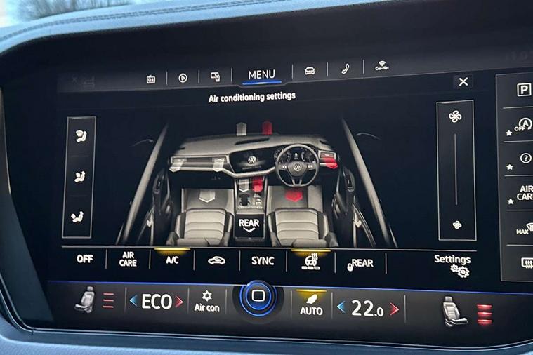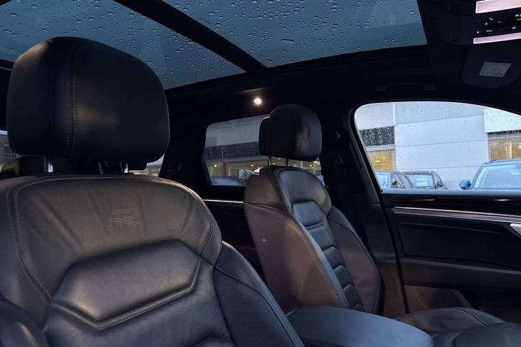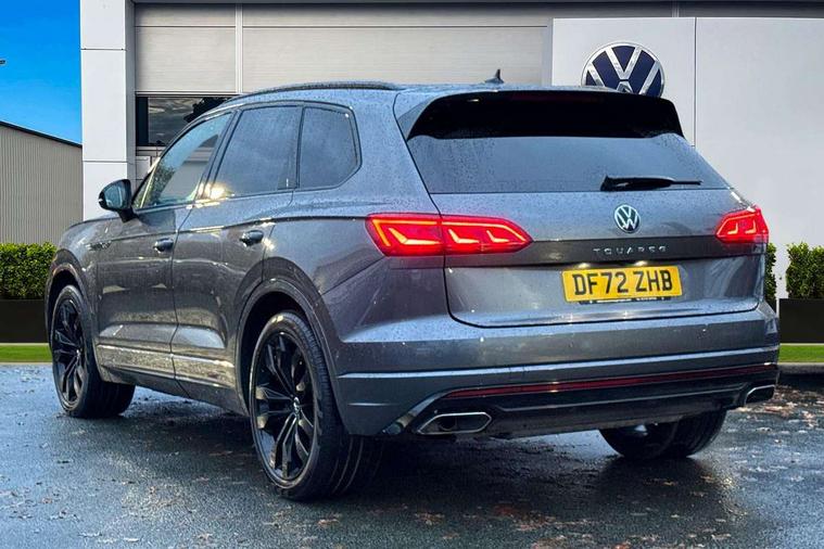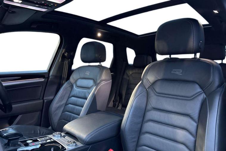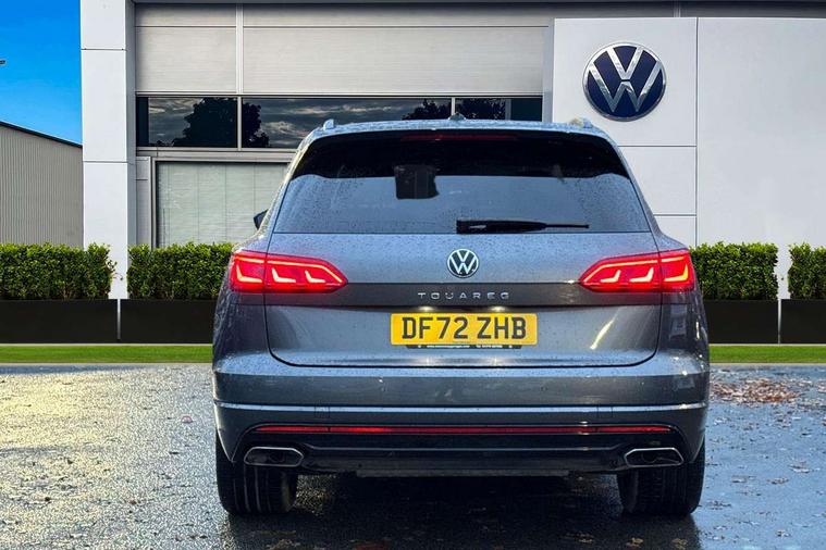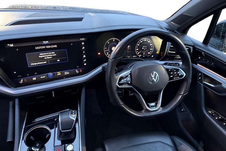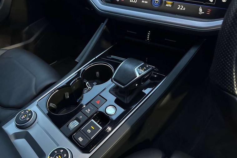 2D/3D map view, ACC - Adaptive cruise control with front assist, forward collision warning, distance monitoring, city emergency brake and speed limiter, Apple car play/Android Auto, Audible and visual fatigue detection system, Bluetooth hands free telephone connection, Car information display, Drive select with Damper control, Driver alert system, Driver profile selection, Dynamic road sign display camera controlled system with visual warning for traffic and road signs, eCall emergency system, Fully electric tailgate + keyless entry and start, Instrument cluster, MirrorLink, Multifunction camera, Multifunction computer premium with 7" colour display, One touch indicators with repeat function, Service interval indicator, Speed sensitive power steering, Start/stop system with regenerative braking, Tailgate power latch, Think blue trainer driver tips and journey analysis, Traffic sign recognition, Voice control system, Wireless Smartphone charger, 24 litre AdBlue tank, Torsen limited slip differential, DAB Digital radio, Dynamic navigation based on TMC+, Gesture control for infotainment system, Multi device interface (MDI) with illuminated USB-C connection, Music playback - MP3, WMA and AAC files, SD card slot, Simultaneous pairing of 2 compatible mobile devices, SMS functionality - read, compose and send SMS messages using touch-screen display, Title and cover art display, Volkswagen media control, Adaptive low beam for urban and motorway use, Auto dimming rear view mirror, Automatic coming/leaving home lighting function, Automatic headlights, Black anodised roof rails, Black door mirrors, Black rear diffuser, Black side window surrounds, Black upper and lower grille louvres extending into headlights and radiator grille, Body colour door handles, Body coloured wheel arches, C signature gloss black front air intake, Chromed tailpipe on the left and right integrated in the bumper with trapezoid design, Dusk sensor, Dynamic headlight range control, Electric front tilt/slide panoramic sunroof and fixed rear sunroof, Electrically power adjustable, heated, folding, auto dimming, front passenger exterior door mirror lowering function, Front and rear electric windows, Galvanised body, Gloss black finish B pillar, Gloss black rear diffuser, Headlight washers, Heat insulating darkened glass in side and rear windows, Heated windscreen washer jets, IQ.Light-LED matrix headlight, daytime running light with dynamic cornering light and indicator, LED 3rd brake light, LED rear fog light, LED rear number plate lights, Plastic scuff plates in door apertures, Poor weather light, Puddle lights, Rain sensor, Rear side wing doors, Rear wiper, 12V socket in front and rear centre console and boot, 2 Coat hooks on B pillar, 3 rear head restraints, 3 seat bench in 2nd row, 3 spoke sport heated leather multi-function sports steering wheel with gear shift paddles - generation 2, 4 way adjustable front head restraints, 4 way electric lumbar support for driver and front passenger, 4 zone climate control, 40:20:40 split folding slide/recline rear seat, B pillar vents, Black lower edge of door extending sills, Branded points of interest, Double sun visor for drivier and passenger with LED illuminated vanity mirrors, Electric luggage compartment cover, Folding rear centre armrest with 2 cupholders, Front + rear carpet mats, Front centre armrest with storage box, Gear shift indicator, Height/reach adjust steering wheel, Illuminated air conditioned glovebox, Isofix preparation for 2 rear child seats, Jack and tool kit, Leather trimmed gear knob with gloss black inlay/aluminum trim, Leatherette door trim, LED luggage compartment lighting, Load through provision, Luggage compartment with load lashing rings, Plastic loading edge protection, Rear seat remote release levers, Single front passenger seat, Soul black headlining, Stainless steel pedals, Innovision cockpit pack - Touareg, 3 point front seatbelts with pre-tensioners, ABS, Active bonnet, Automatic post collision braking system, Curtain airbags, Driver/Front Passenger airbags, EBD + Brake Assist, EDL, Electronic parking brake with auto hold, ESC with ASR, Front seat side impact airbags, Hill descent control, Hill start assist, Passenger airbag deactivate switch, Seatbelt warning lamp and buzzer, Three 3 point rear seatbelts, Two tone horn, Volkswagen roadside assistance, Warning triangle and first aid kit, Alarm with interior monitoring in cab, backup horn and towing protection, Child security locks for front and rear doors, Electronic engine immobiliser, Remote central locking, Black decorative trims on the side windows, High gloss black centre console,