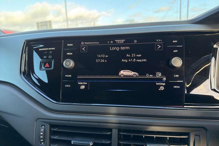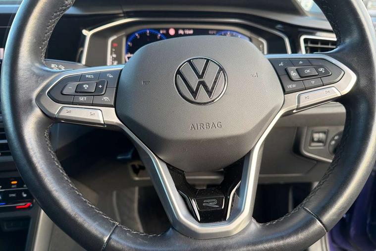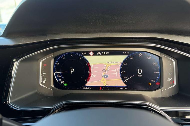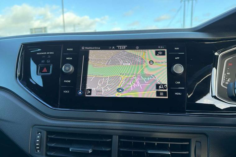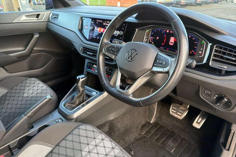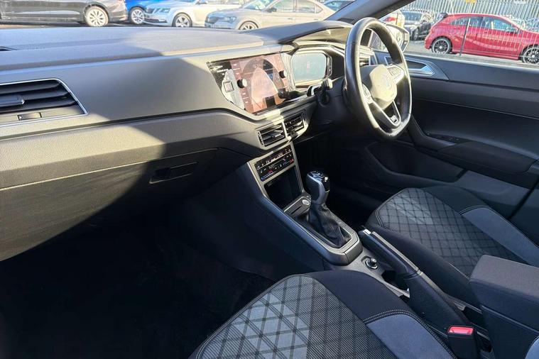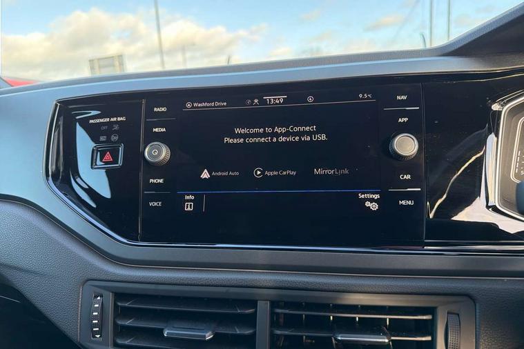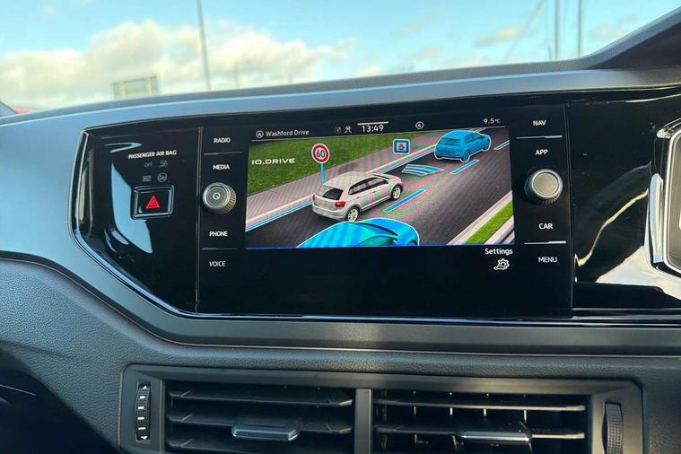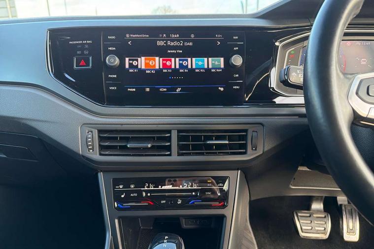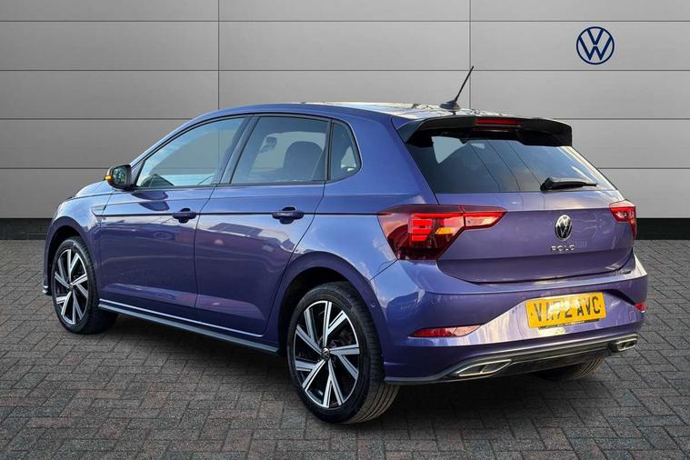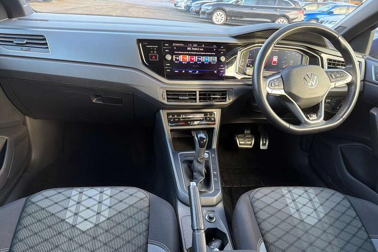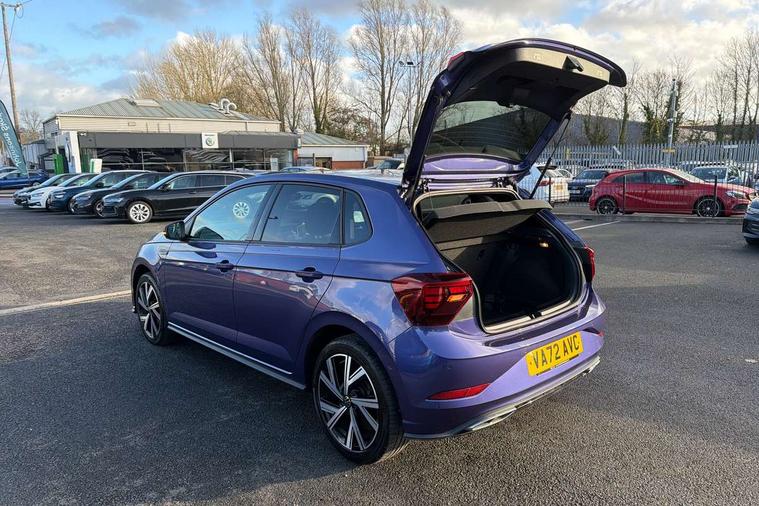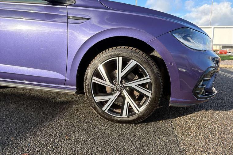Adaptive cruise control with follow-to-stop and speed limiter, Bluetooth mobile phone interface, Digital Cockpit Pro with 10.25" Display, Driver alert system, Dynamic road sign display, Emergency call service, Power assisted speed sensitive steering, Preparation for We connect and We connect plus, Speedo and rev counter, electronic odometer, trip, service interval display and fuel gauge, Standard rear axle, Travel Assist - Lane keeping system and traffic jam assist, Travel assist including emergency assist, Trip computer, Warning signal and warning light for front and rear seatbelts not fastened, Washer fluid level indicator, Wireless app connect, Front wheel drive, Rear shock absorpion, Start-stop system with battery regeneration (recuperation - energy recovery during braking), DAB Digital radio, Diversity antenna for FM reception, Front and rear 6 speakers, Body colour bumpers, Body colour door handles, Electric front windows, Front scuff plates with R-Line logo, Heat insulating darkened glass in side and rear windows, Heat insulating glass windscreen, Power folding adjustable/heated exterior mirrors and front passenger exterior mirror lowering function, Rear electric windows, Rear fog light, Rear side wing doors, Rear windscreen washer and wiper with interval delay, Third brake light, 12V power socket in centre console, 2 USB-C ports in the front, 2 USB-C charging sockets on the center console in the rear, 3 rear head restraints, 60/40 split folding rear seat and rear seat bench not split, Air care climatronic air conditoning system with active combination filter and 2-zone temperature control, Black roof lining, Chrome plated radiator grille inserts, air vent surrounds and light switch surrounds, Door and side trim panel, Driver and front passenger seat height adjustment, Driver/passenger sunvisors with illuminated vanity mirrors, Front + rear carpet mats in recycled material, Front centre armrest, Front footwell illumination, Front seat backrest storage pockets, Front sports comfort seats, Handbrake lever handle in leather, Headliner in recycled material, Isofix child seat preparation easy-fit (for two outer rear seats, and front passenger seat) compatible with I-size, Karoso artvelours cloth upholstery, Leather trimmed gear knob, LED interior light with switch off delay and dimmer, 2 reading lights front and rear, Luggage compartment cover, Luggage compartment floor, Luggage compartment lighting, Lumbar adjustment for front seats, Single front passenger seat, Stainless steel pedals, Standard pedal cluster, Three spoke leather wrapped multifunction steering wheel with shifting paddles, Light and sight pack - Polo R-Line/Black Edition, 3 point height adj front seatbelts + pretensioners, 3x3 point rear seatbelts, ABS, Driver and front passenger airbag with front passenger airbag deactivation, Drivers and front passengers safety optimised head restraints, ESC (Electronic stability control) + EDL (Electronic Differntial lock) and ASR (Traction control), Extended and predictive pedestrian/ cyclist protection, Front curtain and side airbags with center airbag, Front/rear disc brakes, Hill hold control, Manual child lock in rear doors, Single tone horn, Tyre pressure loss indicator, Alarm with interior protection, Anti-theft alarm system with interior monitoring, backup horn, and towing protection, Anti-theft wheel bolts, Electronic engine immobiliser, Chrome applications on rotary light, mirror adjustment, window regulator switches, outlet with frame in black, Dark grey anodised matt decorative inserts in dash and front door panels, Low rolling resistance tyres,