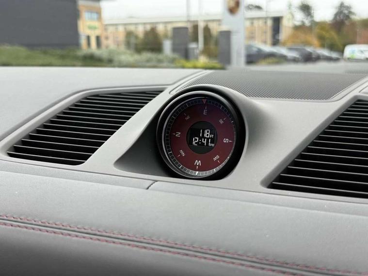 Android Auto, Apple car play, Auto start/stop function and coasting, Brake pad wear indicator, Central analogue rev counter with black dial face, Driver personalisation for climate, audio and communication, assistance systems and other customisable car systems, E-call, Head up Display, High resolution 12.3-inch touchscreen display in full HD resolution, Individual mode for individual selection of vehicle drive settings, Instrument cluster with two high-resolution displays, Mobile phone preparation with Bluetooth interface for telephone and music, Porsche Communication Management (PCM) including online navigation module, mobile phone preparation, audio interfaces and voice control system, Power steering plus, Power tailgate, Vehicle electrical system recuperation, Warn and brake assist including pedestrian protection, 8 Speed Tiptronic S transmission with auto Start-Stop and coasting function, 90 litre fuel tank, Aluminium cylinder heads and engine block, Direct fuel injection (DFI) with central injector position, Front and rear aluminium multi link axles, Gasoline particulate filter, Panoramic roof with fixed glass panel, Sport mode, Turbocharger with twin scroll turbine, VarioCam Plus, Water cooled with thermal management, AM radio, Digital radio, Two USB charge ports in rear compartment, Two USB charging and connectivity ports in the front centre console storage compartment, Active air intake flaps, Air intake slats with inlays in satin platinum, Automatic dimming interior rear view mirror, Automatic headlight activation including welcome home functionality, Bumper system with high strength cross members and two deformation elements + Two receptacles with screw threads towing lug + onboard tool kit, Electric windows + anti trap protection + one touch open/close drivers side, Electrically adjustable, folding , heated and automatically dimming exterior mirrors, aspherical on drivers side including courtesy lights, Extensive aerodynamic underbody protection, Four point signature LED daytime running lights, Front end with integrated air intakes and airblades for the side air intakes, Front light modules including position lights and direction indicators in LED light guide technology, Front windscreen wipers with two speeds, intermittent wipe and rain sensor, Fully galvanised steel / aluminium hybrid lightweight bodyshell and Aluminium bonnet, tailgate, doors, side panels, roof and front wings, Heated rear window with automatic switch off, Heated windscreen, LED High level third brake light integrated into roof spoiler, Porsche active aerodynamics (PAA) with adaptive roof spoiler, Porsche lettering integrated into rear taillight strip in satin platinum, Preparation for the roof transport system, Rear side wing doors, Rear window wiper with intermittent function and washer jet, Satin platinum model designation on tailgate, Sideskirts in matt black, 2 seat bench in 2nd row, Ambient lighting, B-pillar clothes hooks on driver and passenger's side, Charge air cooling, Double sun visors for driver and front passenger, Driver/passenger sunvisors and vanity mirrors, Elevated centre console with handles, Front and rear bottle holders in door panels, Front head restraints, Height adjustable rear headrests, Isofix fastening system for child seats on outer rear seats, LED interior light with switchoff delay function, footwell + glove compartment light, ashtray + ignition lock illumination, front + rear reading light, Manual height adjust for driver and front passenger seat belt, Particle/pollen filter with active carbon filter, Rear seat split folding design 40:20:40, Fold out centre armrest with integrated cup holder, manual fore/after adjust and backrest angle adjust, Rigid integrated and removable parcel shelf, Single front passenger seat, Storage compartments - Cooled glove compartment, front centre console, door and map pockets on front seat backrests + side luggage compartment, Three 12V power sockets - front below the glove compartment, centre console and at side of luggage compartment, Two integrated cup holders in front and rear with variable diameter, 2 piston aluminium monobloc fixed caliper brakes at rear and internally vented brake discs, 3 point automatic seatbelts with front and outer rear seats pretensioners and front force limiter, 4 piston aluminium monobloc fixed caliper brakes at front and internally vented brake discs, Active bonnet, Auto hold function, Brake discs with diameter 350 mm at front, 330 mm at rear, Curtain airbags along roof frame and side glazing from the A-pillar to the C-pillar, Distance warning, Electronic parking brake, Front passenger airbag deactivation function for front seat mounting of child seat, Front side airbags integrated into seat, Full size driver and front passenger airbags, Knee driver and passenger airbags, Manual child lock in rear doors, Mounting points on passenger seat for ISOFIX child seat mounting system, Multi-Collision braking, Porsche hill control (PHC), PTM Porsche Traction Management active all-wheel drive with an electronically variable, map-controlled multi-plate clutch, ABD and anti-slip regulation, Rollover detection for activation of curtain airbags and seat belt pretensioners, Seat belt warning system for driver and front passenger and rear seat system, Side impact protection in doors, Tyre pressure monitoring system, Vehicle stability system, Porsche stability management (PSM) including ABS, ASR, ABD, MSR and trailer stability management, Alarm system with ultrasonic interior sensor and two stage locking, Engine immobiliser with key transponder, Keyless entry and go, Porsche vehicle tracking system (PVTS Plus) subscription required, Remote central locking with comfort access, Air curtains in wheel arch housings, Staggered tyre fitment with wider section rear tyres,
