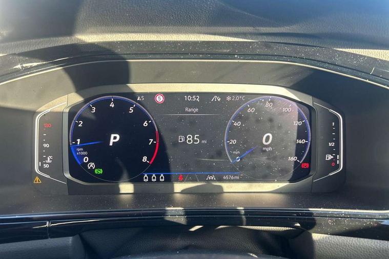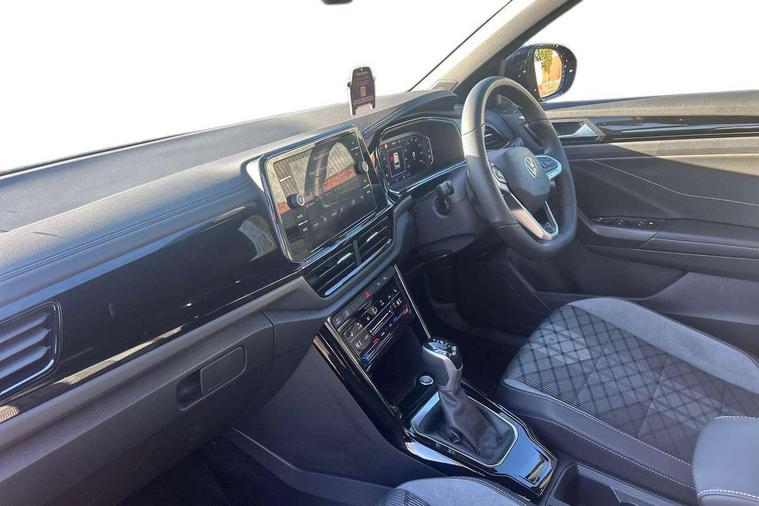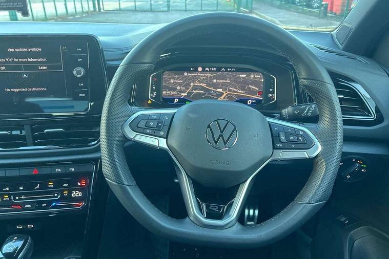 10.25" Digital cockpit pro, Advanced driver attention and drowsiness monitor, Emergency call service, Lane keeping system Lane Assist, Mobile phone interface, Modified key software - reduce switch off time for key status change to Long no motion, Online services, Park assist including front and rear parking sensors, Power assisted speed sensitive steering, Service interval indicator, Tailgate/trunk lid release from outside, Think blue trainer driver tips and journey analysis, Warning sound and light for front seatbelts unfastened, Wireless app connect, Battery regeneration during braking, Rear shock absorption chassis with increased ride height, Start/stop function with battery regeneration, DAB Digital radio, Diversity antenna for FM reception, Front and rear 6 speakers, Music playback - MP3, WMA and AAC files, Premium USB cable in choice of either Apple or Android smartphone compatibility, SD card slot, Simultaneous pairing of 2 compatible mobile devices, Title and cover art display, We Connect and We Connect Plus functionality, Auto dimming interior rear view mirror, Automatic hazard lights activation under emergency braking, Automatic headlight control with LED separate daytime running lights with coming/leaving home function, Dynamic cornering light, Electrically adjustable and heated door mirrors, Extended roof spoiler, Exterior mirrors aspherical on driver side, convex on front passenger side, External USB type C socket and charging sockets, Front windscreen wiper with intermittent wipe and 4 position delay, Heated rear window, Illuminated front grille, IQ LED matrix headlights, LED 3rd brake light, LED rear number plate lights, LED rear tail lights with dynamic turn signal, Light mode for poor weather, rain, fog or snow, Power windows with comfort operation and circuit breaker, R-Line design body coloured bumpers, Rain sensor, Rear exhaust tailpipe, Rear fog light on one side and reversing lights on both sides, Rear side wing doors, Rear wash/wipe with intermittent wipe setting, Remote electrically foldable door mirrors, puddle lights and reverse activated passenger's door mirror, 12V power socket in centre console, 3 rear head restraints, 3 seat bench in 2nd row, 4 load lashing points in luggage compartment, Air care climatronic air conditoning system with active combination filter and 2-zone temperature control, Artvelours cloth upholstery, Black roof lining, Chrome plated radiator grille inserts, air vent surrounds and light switch surrounds, Door and side trim panel with leatherette insert, Drawer under drivers seat, Driver seat height adjust, Driver's seat lumbar support, Front + rear carpet mats, Front centre armrest, Front comfort sports seats, Front cupholders x 2, Front footwell illumination, Front reading light, Front scuff plates with R Line logo, Front seat back storage pockets, Glove compartment door with light, Instrument lighting, white adjustable panel illumination, Interior ambient lighting and surround lighting, Interior light delay, Isofix child seat preparation, Leather gearshift handle, Leather wrapped multifunction steering wheel with paddle shift, Load-through provision with cup holder when folded down ('Unsplit rear seat bench, split folding backrest, with centre armrest), Luggage compartment lighting, Non-folding front passenger seat backrest, Passenger seat height adjuster, Passenger seat lumbar support, Single front passenger seat, Stainless steel pedals, Storage compartment in left and right luggage area, Storage compartment in rear doors, Storage compartments in driver and front passenger doors, Sunvisors with illuminated vanity mirrors, Variable boot floor, height adjustable and removable, Winter pack without heated windscreen washer jets - T-Roc, 3 point height adj front seatbelts + pretensioners, 3 point seatbelts in outer rear with ECE label, ABS, Child locks on rear doors, City emergency braking and pedestrian monitoring, Driver and front passenger airbag with front passenger airbag deactivation, Driver and front passenger safety-optimised head restraints, Drivers seatbelt reminder, Electronic parking brake, Electronic Stability Control (ESC) inc EDL (Electronic Differential Lock) and ASR (Traction Control), Front and rear passengers curtain airbag system including front side airbags, Front disc brakes, Hill start assist, Predictive pedestrian protection, Rear disc brakes, Two tone horn, Tyre pressure loss indicator, Volkswagen roadside assistance, Tool kit, Trims for alloy wheels, Tyre mobility kit including compressor and sealing foam,