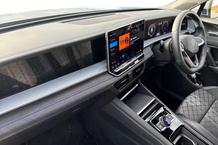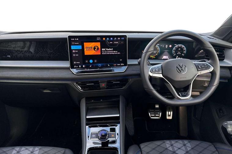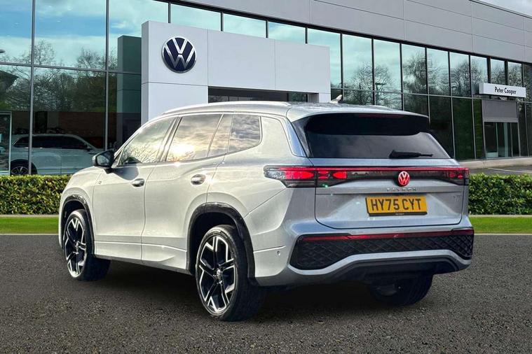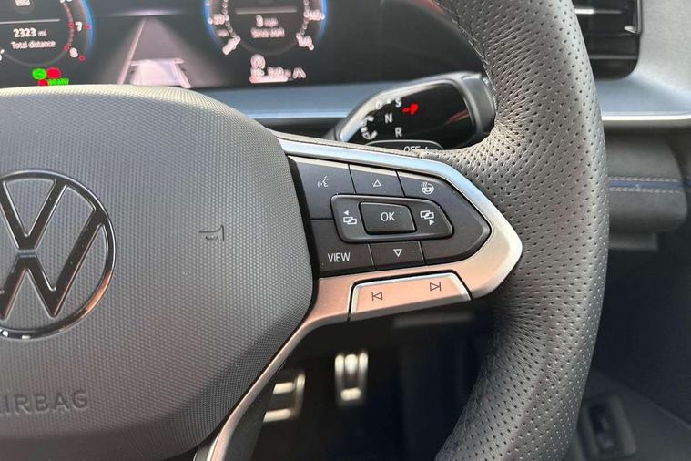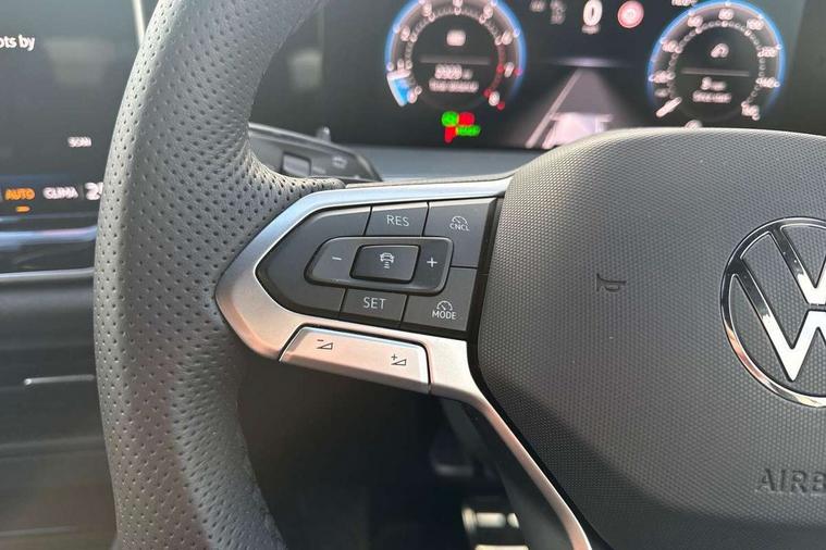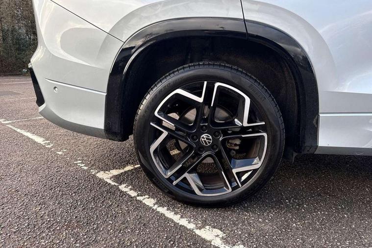 Adaptive cruise control (ACC), Digital Cockpit Pro - 10.25" high resolution dash display screen with customisable menus and information, Driver alert system, Driver attention monitoring system, Dynamic road sign display, E-Sim card for online connectivity, eCall emergency call system, Lane change system, Side assist, Rear traffic alert and Exit warning system, Multifunction front facing camera, Oncoming vehicle braking when turning including swerve support, Start/stop system with regenerative braking, Voice activation spoken voice commands for telephone and navigation system, Warning signal and warning light for front and rear seatbelts not fastened, Wireless App-Connect, Front wheel drive, Digital radio reception (DAB), Diversity antenna for FM reception, Air intake with Chrome trim, Auto dimming interior rear view mirror, Automatic headlight control system, Body colour door handles, Chrome moldings on the side windows, Coming/leaving home lighting function, Dynamic headlight range control with dynamic cornering light, Exterior mirrors convex on the left and aspherical on the right, Heat insulating glass in side and rear windows, Illuminated Volkswagen logo rear with animation, Laminated safety glass windshield, heat insulating, LED 3rd brake light, LED separate signature day time running light, Puddle lights, Rain sensor windscreen wipers, Rear fog light on one side, reversing light on both sides, Rear side wing doors, Rear wiper, Reverse activated passenger's door mirror, Surround lighting with welcome light, Volkswagen logo in front, illuminated lighting animation with wake up/goodbye scenario and illuminated door handles, 10 colour interior ambient lighting, 12V outlet in center console rear and in luggage compartment, 3 rear headrests, 3 rear seat bench in 2nd row, backrest split folding with centre armrest and 2 seats in 3rd row of seats, Black roof lining, Brushed stainless steel pedals, Carpet mats, front and rear, Centre console with illuminated storage compartment with sliding cover and two drinks holders, Chrome elements on the mirror switch and power window switches and door pulls, Door and side trim panel insert in Art velour, Flat luggage compartment floor, Front centre armrest, Front scuff plates in aluminium, ISOFIX anchors for child seats on outer rear seats and front passenger seat compatible with i-Size, Mechanical rear seat release, Power adjustable lumbar support in front, Single front passenger seat, Sports comfort seats in front, Sun visors with illuminated vanity mirrors, 3 Point seat belts in front with pretensioners, 3 point seatbelts in outer rear with ECE label, Autonomous emergency braking front assist with pedestrian and cyclist monitoring, Driver and front passenger airbag with front passenger airbag deactivation, Electronic parking brake with auto hold, First aid kit with warning triangle and safety vest, Front and rear curtain airbags, Front and rear side airbags, Front centre airbag, Front disc brakes, Hill start assist, Rear disc brakes, Two tone horn, Decorative material set R-Line, Interior door handle in matte chrome,