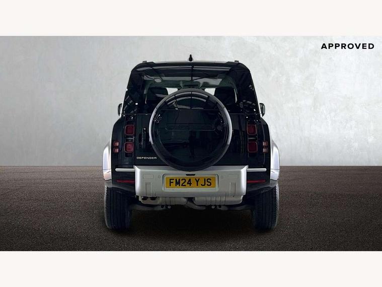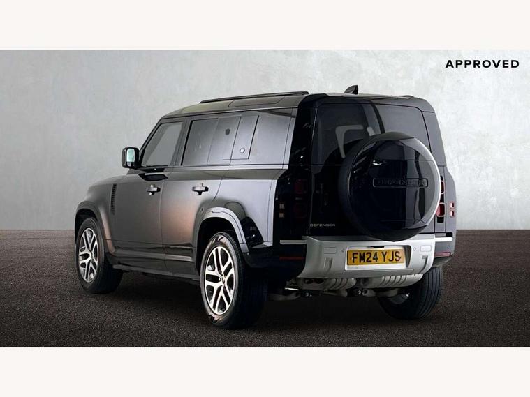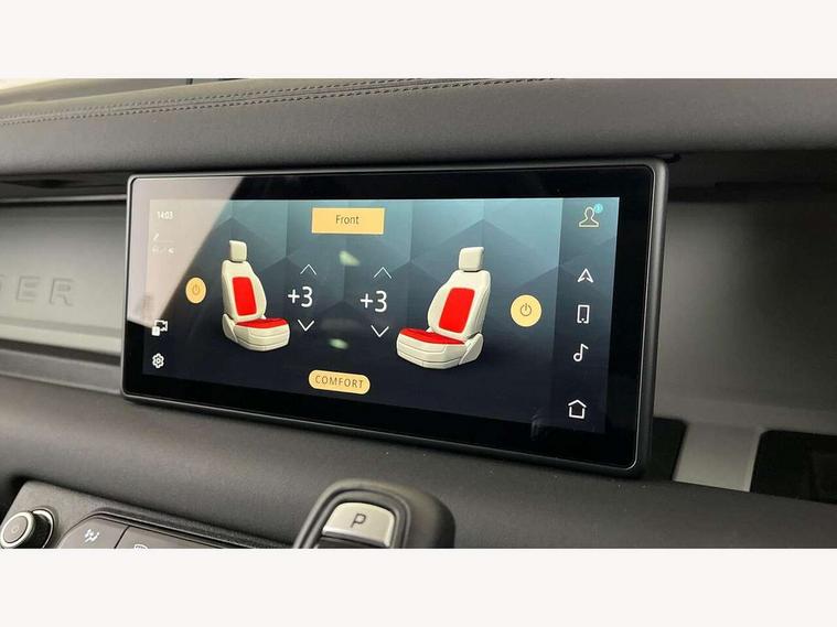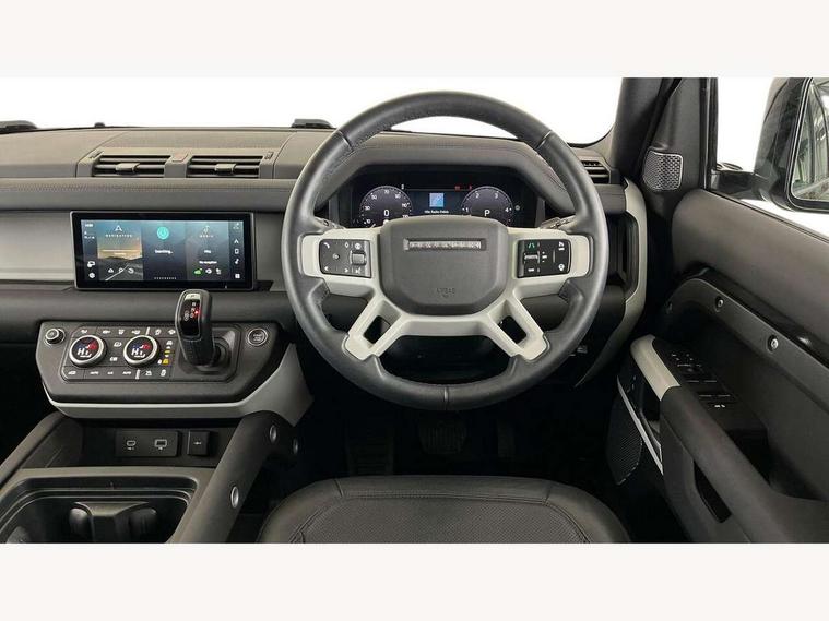 360 degree parking aid, 3D Surround Camera with 360 View, 180 Rear View, Front Traffic Detection, Forward Vehicle Guidance, Tow Hitch Assist and clear sight Ground View, Android Auto, Apple CarPlay, Assisted tailgate with soft close, Blind spot assist, Bluetooth system, Brake pad wear indicator, Clear exit monitor, Connected navigation pro, Cruise control + speed limiter, Driver condition monitor, Electric power assisted steering (EPAS), Interactive driver display, Lane keep assist, Push button start, Rear traffic monitor, Traffic sign recognition with adaptive speed limiter, Trip computer, Wade Sensing, 8 speed automatic transmission, Adaptive dynamics, All wheel drive system, Electronic air suspension, Twin speed transfer box, DAB Radio (Digital Audio Broadcasting), Pivi pro connected, Automatic headlight levelling, Automatic headlights, Body coloured roof, Centre high mounted stop light, ClearSight interior rear view mirror, Electric heated/power fold door mirrors with approach lights and auto dimming driver side, Electric windows with one touch open/close and anti-trap, Follow me home lighting, Front fog lights, Heated rear window with timer, Heated windscreen, Illuminated metal treadplates with brand name script, LED tail lights, Matrix LED headlights with signature DRL, Privacy glass, Puddle lights, Rain sensing windscreen wipers, Rear fog lights, Rear side wing doors, Rear wiper, Side hinged tailgate, Signature graphic (with interior storage), Sliding panoramic roof, Trailer stability assist, 12 way heated and cooled electric memory front seats with 2 way manual headrests, 12V power socket in loadspace, 3 seat bench in 2nd row, 40:20:40 folding rear seats with centre armrest, Alpine lights, Configurable cabin lighting, Durable rubber cabin flooring, Durable rubber loadspace flooring, Electric cabin pre conditioning, Electric reach + rake adjustable steering column, Footwell lights, Front centre console refrigerator compartment, Front passenger isofix child seat attachment, Grained Leather upholstery, Heated steering wheel, Leather gearshift, Light oyster morzine headlining, Loadspace cover, Loadspace Hook, Multifunction steering wheel, Overhead stowage for sunglasses, Premium cabin lighting, Rear headrests, Rear ISOFIX, Rear reading lights, Single front passenger seat, Standard interior, Standard leather steering wheel, Standard seat configuration, Storage glovebox, Sunvisors with illuminated vanity mirrors, Online pack with data plan - Defender, XS Edition exterior pack - Defender, 5 x 3 point seatbelts, ABS, Brake hold function, Cornering brake control (CBC), Cross car beam in light grey powder coat brushed finish, Customer configurable autolock, DSC - Dynamic Stability Control, EBD - Electronic brakeforce distribution, Electric parking brake (EPB), Emergency brake assist, Emergency braking, ESP + traction control, Front airbags with passenger seat occupant detector, HDC - Hill descent control, Hill launch assist, Low traction launch, Power operated child locks, Remote for (e-Call, Optimised assistance call, InControl app, Climate, beep and flash and door), RSC - Roll stability control, Seat belt reminder, TPMS (Tyre pressure monitoring system), Alarm, Immobiliser, Intrusion sensor, Keyless entry, Locking wheel nuts,