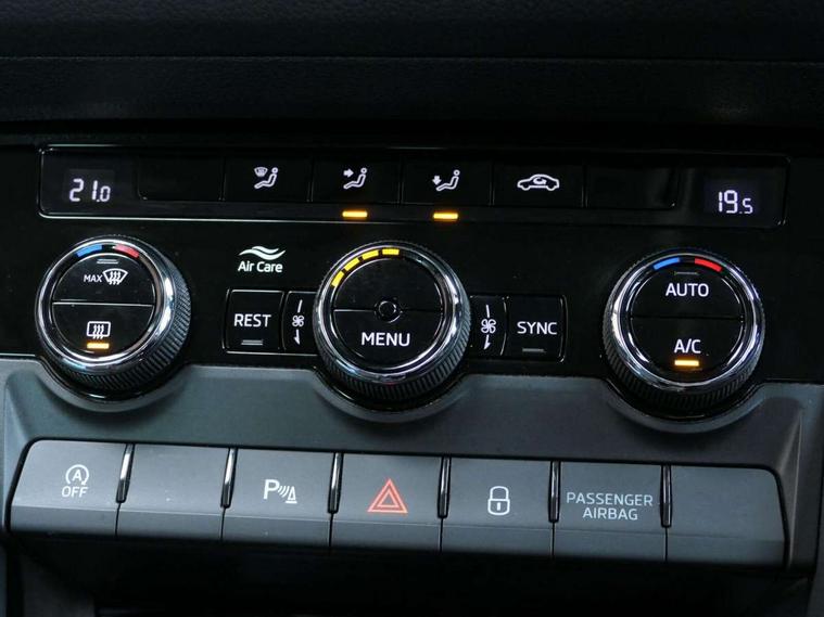 Amundsen satellite navigation with 8" touchscreen, integrated Wi-Fi, web radio, Bluetooth system, Colour multifunction trip computer, Digital voice enhancement, E-call, ECO Stop/start function, Exterior temperature indicator, Power assist steering, Rear view camera, Smartlink wireless for apple carplay and wired for android auto, Speed limiter, Tailgate unlocking from outside, USB C Port x 2 in front centre console, 8 Speakers, DAB Digital radio, Aero front windscreen wipers with intermittent function, Aero rear window wiper, Auto dimming rear view mirror, Black wheel arch surrounds, Body colour bumpers, Body colour door mirrors and handles, Electric front and rear windows, Extended rear spoiler with finlets in gloss black, Front fog lights, Headlight washers, Heated rear window, Invisible tailpipe, LED rear fog light, LED third brake light in rear spoiler, Light assistant (coming/leaving home/tunnel light), Off-road style lower front bumper element, Privacy glass, Radiator grille frame in matt black with chrome strip, Rain and light sensors, Rear LED lights (high functionality) with welcome effect and dynamic indicators, Rear side wing doors, Safety reflectors on front and rear doors, Window control switches with black trim, 12V socket in boot, 2 rails with 2 hooks, 3 seat bench in 2nd row, 4 foldable roof handles with rear coat hooks, 60:40 foldable rear seat with sliding adjustment and backrest angle adjustment, Bottle holders in door panel in the 1.5 litre front and 1 litre rear, Chrome interior door handles, Cloth upholstery, Coat hooks on B pillar, Covered storage compartment on driver side, Dual zone automatic air conditioning with humidity sensor and control, Front centre armrest with storage compartment, cup holder and 12V socket, Gear shift lever with chrome frame and black gloss insert, Grey headlining, Grey stitching in front and rear armrests and door armrests + door inserts, Height adjustable front headrests, Height adjustable front seats, Illuminated and cooled glovebox, Illuminated glovebox, Illuminated luggage compartment, Isofix child seat fittings in outer rear seats with top tether, Manually adjustable steering column, Net programme in boot (1x horizontal Net, 2x vertical Nets), Overhead glasses storage compartment, Pollen filter, Rear centre armrest with cupholders, Single front passenger seat, Sliding trunk cover, Small Bags on the inner sides of the front backrests, Sunvisors with illuminated vanity mirrors, Three rear height adjustable headrests, Ticket holder on A Pillar, Umbrella in door panel, Auto door release and activation of warning lights in the event of an accident, Child locks on rear doors, Driver and front passenger airbag with knee airbag and front passenger airbag deactivation, Electronic parking brake with hill start assist, Emergency rear braking signal, ESC (incl. ABS+MSR+ASR+EDS+HBA+DSR+RBS+MKB), Front assist with autonomous emergency braking, Front side airbags with curtain airbags, Fuel cut off safety device, Height adjustable front 3 point seatbelts + pretensioners, Hill hold control, Rear disc brakes, Safety vest holder in door, Seat belt reminder for all seats, Three point rear seat belts, Two tone horn, Tyre pressure monitor, Alarm with interior monitoring and tilt sensor with safe function, Anti-theft wheel bolts, Immobiliser, Keyless entry and start system (KESSY), Remote central locking with 2 keys, Grey stitching in dashboard,