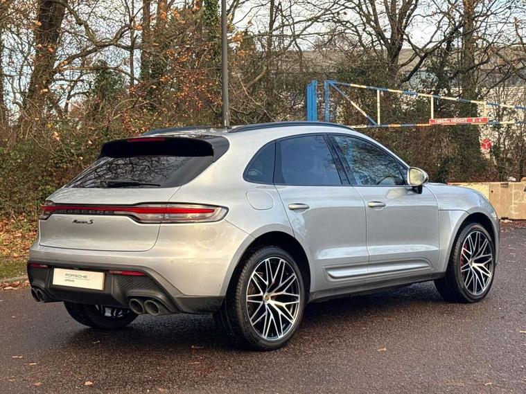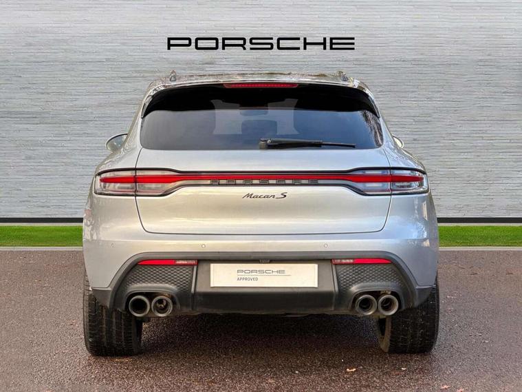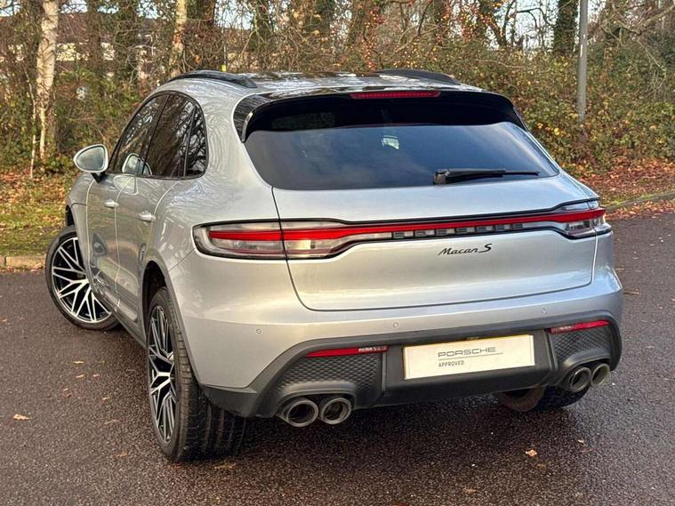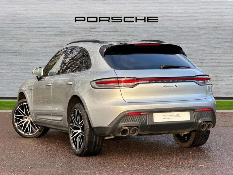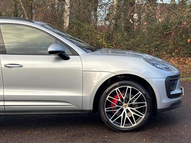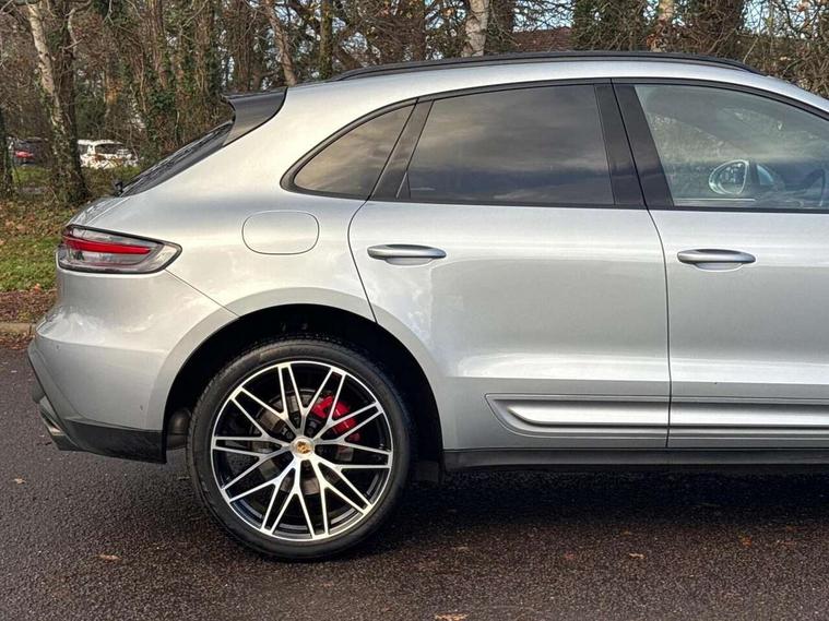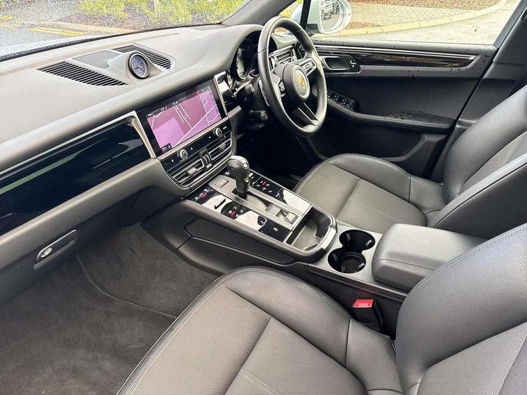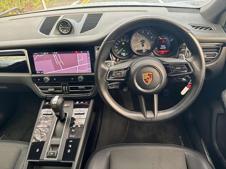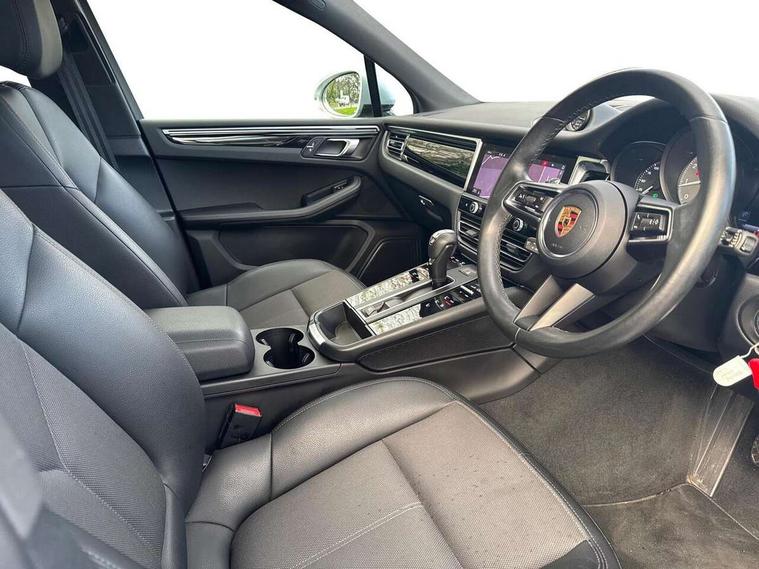 Analogue clock on dashboard, Automatic start/stop system, Automatic tailgate, Digital boost pressure gauge on colour display of instrument cluster, eCall emergency call system, Instrument cluster with high resolution 4.8-inch TFT display, gear indicator for PDK, service interval display, external temperature indicator, fuel gauge, Off-road button, On board computer, Porsche Communication Management (PCM) including online navigation module, mobile phone preparation, audio interfaces and voice control system, Sports button in centre console, 7-Speed Porsche Doppelkupplung (PDK) with automatic mode and manual controls (gearshift paddles) on steering wheel, Direct fuel injection (DFI), Gasoline particulate filter, Steel spring suspension, VarioCam Plus variable valve timing and switchable valve lift, 2 USB sockets in rear centre console, Apple CarPlay with Siri voice recognition, Connect Plus including online navigation, LTE communication module with SIM card reader, wireless internet access, Porsche Car Connect services, DAB Digital radio, Porsche Vehicle Traking System Plus (PVTS Plus), Two USB C charging and connectivity ports in the front centre console storage compartment, Active radiator grille shutters, Automatic headlight activation including welcome home lighting, Bumper system with high strength cross members and two deformation elements + One threaded fixture point for towing eye contained in onboard tool kit, Dynamic cornering lights, speed-sensitive headlight and dynamic range control, adverse weather function, four-point LED daytime running lights, Electric front and rear windows with remote closing function + anti trap + one touch, Electrically folding and heated exterior mirrors, Front light modules with LED position lights and direction indicators, Front windscreen wipers with two speeds, intermittent wipe and rain sensor, Front with integrated cooling air intakes, Fully galvanised body, Heated rear window with automatic switch off, High level 3rd LED brake light integrated into roof spoiler, Loading edge protection in aluminium, Rear side wing doors, Rear window wiper with intermittent function and washer jet, Roof spoiler in high gloss black, Towbar preparation, 3 adjustable rear headrests, 3 rear seats, 4 way adjustable front head restraints, 40:20:40 split folding rear bench seat, Cloth hook b-pillar, Fold up centre console armrest with fore/aft adjustment, Front and rear bottle holders in door panels, Front passenger seat, Glove compartment, Isofix fastening system for child seats on outer rear seats, Luggage compartment cover, Particle/pollen filter with active carbon filter, Rear armrest with 2 cupholders, Storage bin in centre console, Storage compartment in side of luggage compartment and storage compartment in spare wheel recess, Storage pocket in front and rear doors, Two integrated cup holders in front with variable diameter, Two socket 12V power outlets in front console and luggage compartment, uncovered storage compartment in centre console, Ambient comfort lighting pack - Macan, Lower exterior trim package in black - Macan, 3-point automatic seatbelts with front and outer rear seats pretensioners and force limiter + manually height adjustable seatbelt + reminder warning, 6-piston aluminium monobloc fixed caliper brakes at front, internally vented brake discs, Auto hold function, Brake discs with 360 mm diameter at front and 330 mm at rear, Child locks on rear doors, Curtain airbags along entire roof frame and side windows from A pillar to the C pillar, Electronic parking brake, Front passenger airbag deactivation facility for installation of child seats indicator in overhead console, Front side airbags integrated into seat, Full size driver and passenger airbags, Multi-Collision braking, Porsche hill control (PHC), PTM(Porsche Traction Management) and All-wheel drive with map-controlled multi-plate clutch, Roll over sensor for curtain airbag and seatbelt pretensioners, Side impact protection in doors, Tyre pressure monitoring system, Vehicle stability system, Porsche stability management (PSM) including ABS, ASR, ABD, MSR and trailer stability management, Vented discs brake with combination floating calipers at rear, Alarm system with ultrasonic interior surveillance, Engine immobiliser with key transponder, Remote control central locking, Accent trims with silver coloured finish,