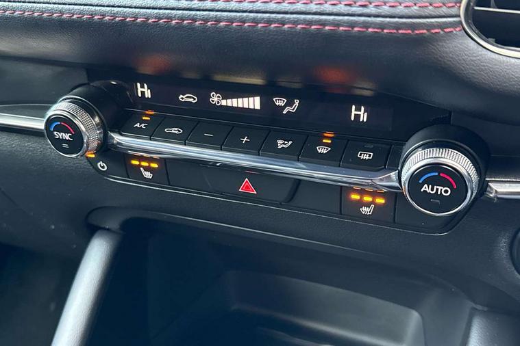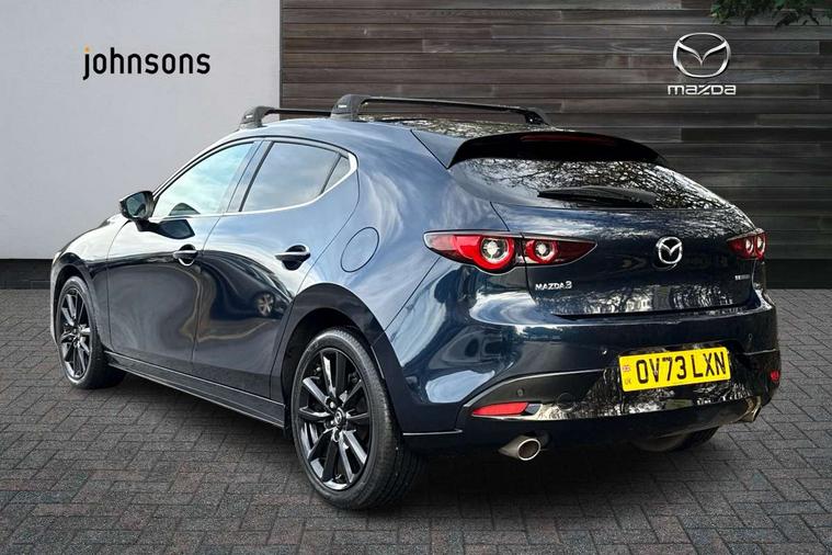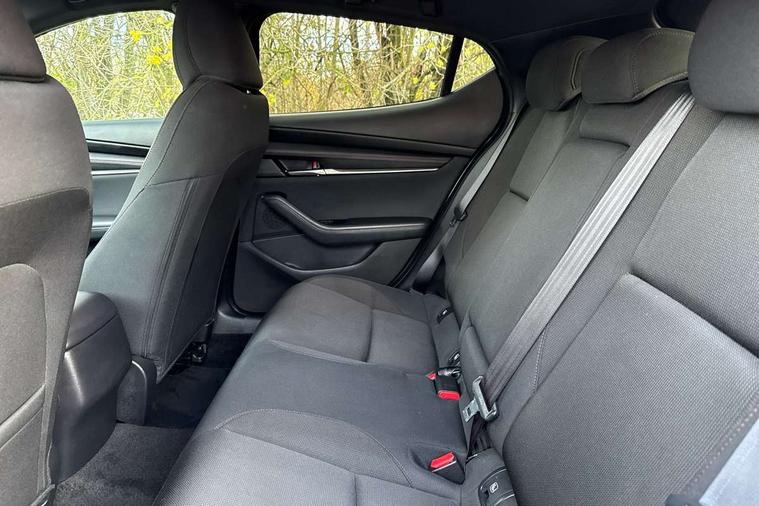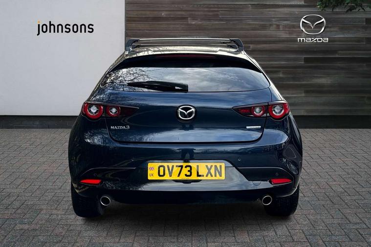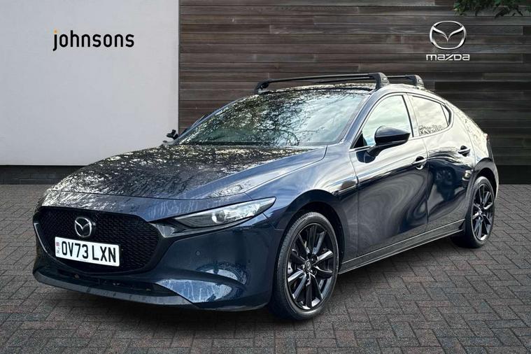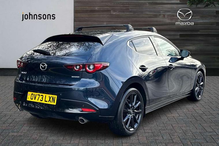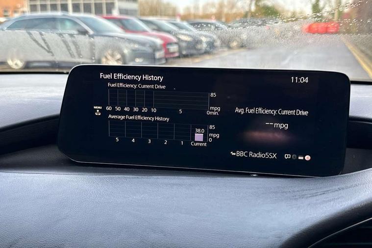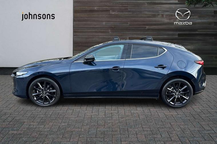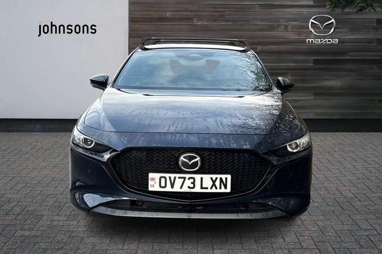 10.25" display with Mazda Connect infotainment, 7" colour TFT display, Audio transfer from bluetooth devices, Blind spot monitoring with rear cross traffic alert, Colour active driving display inc Windscreen projected, Traffic Sign Recognition, turn-by- turn navigation and Mazda Radar Cruise Control information, Digital instrument cluster, Driver attention alert system, E-call with GPS, Emergency stop signalling system, Engine start/stop button, Front and rear parking sensor with audible and visual warning, Head up Display, Integrated bluetooth with steering wheel mounted controls, Intelligent speed assist, Lane keep assist system (LAS) with Lane departure warning system (LDWS), Mazda connected services, Mazda Navigation System with european mapping, Mazda Radar Cruise Control, Mobile App interface, Multimedia Commander, PAS, Reversing camera, Service indicator, Tailgate, Traffic sign recognition (TSR), Trip computer, Wireless Apple CarPlay/Android Auto, Wireless charging, Cylinder Deactivation, i-stop, 2 USB-C ports in the front, Mazda Multimedia System with AM / FM / DAB radio with 8 speakers, Auto dimming rear view mirror, B-pillar garnish in piano black, Black door mirrors, Coming/leaving home lighting function, Dark metallic finish signature wing, Daytime running lights, Dual chrome tailpipes tip, Dusk sensing headlights, Electric front/rear windows with one touch/auto up/down, Electrically adjustable, heated auto power folding door mirrors, Front body coloured bumper with black lower bezel, Front kodo turn signal, Gloss black finish front grille, Gloss black rear roof spoiler, High beam control, LED front fog lights, LED headlamps with auto levelling, LED indicator lights, LED rear combination lights, LED third brake light, Privacy glass with dark tinting on rear side windows and rear window, Rain sensing front wipers with adjustable sensitivity and speed, Rear colour coded bumper with gloss black lower moulding, Rear fog lights, Rear side wing doors, Speed adjustable rear wash wiper with intermittent wipe, 12v electrical power outlet, 3 seat bench in 2nd row, 60/40 split fold down rear seats, Black with red stiching steering wheel, gearshift gaitor, dashboard panel, armrest, Cloth upholstery, Dark cloth door panel inserts, Dark roof headlining, ceiling and pillars, Driver seat manual slide, recline, height and seat tilt adjust, Driver, front passenger and two rear door pockets, Driver, Front passenger and two rear grab handles with coathooks, Driver/passenger sunvisors + vanity mirrors (drivers side with ticket holder), Dual zone climate control air conditioning, Folding rear centre armrest with two cup holders, Front and rear courtesy lamps, Front armrest, Front centre storage with two cupholders, Front head restraints, Front passenger seatback pocket, Front passengers seat manual slide, recline and height adjustment, Gear shift indicator, Heated front seats with 3 stage setting, Illuminated glovebox, Interior colouration dashboard and doorcards in black with dark stitching, ISOFIX child seat anchorage points attached on outer rear seats, Leather wrapped gear shift knob, Leather wrapped steering wheel, LED interior light, LED light in luggage compartment, Power outlet in luggage compartment, Roof mounted sunglasses holder, Single front passenger seat, Three height adjustable rear head restraints, Tilt/height adjustable steering wheel, 3 point ELR front seatbelts with pretensioners, 3 rear 3 point seatbelts with ELR, Anti-lock braking system (ABS), Drivers knee airbag, DSC - Dynamic Stability Control, Dual stage driver and single stage passenger airbags, EBD - Electronic brakeforce distribution, Electronic parking brake with auto disengage function and auto hold function, Front and rear curtain airbags, Front passenger airbag cut-off switch, Front side airbags, Front smart city brake support, G-Vectoring control plus, Hill launch assist, Intelligent Traction Control system, Manual child lock in rear doors, Mild Hybrid system with regenerative braking, Seatbelt reminder for driver/front passenger and rear seats, Tyre pressure monitoring system (TPMS), Auto door lock when driving, Remote central locking + deadlocks, Smart keyless entry, Thatcham accredited alarm and immobiliser, 18" Black alloy wheels, Emergency tyre repair kit,