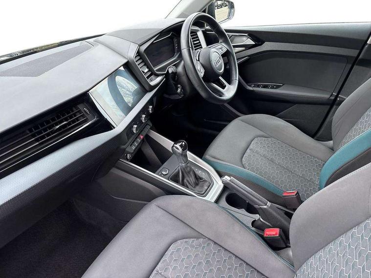 10.25" Digital instrument cluster display screen, Audi connect safety emergency and service including E-call, Audi drive select, Audi smartphone interface, Automatic start/stop system, Bluetooth interface, Driver's information system, Electromechanical power steering, Lane departure warning system, Service interval indicator, Speed limiter, Voice control system, Washer fluid level indicator, Dynamic suspension, 1 x SDXC card reader, 1 x USB type C and 1 USB type A charging points, Audi music interface, Bluetooth audio streaming, DAB Digital radio, MMI radio plus with 8.8" colour MMI display screen and MMI touch, Adaptive brake lights, Auto dimming rear view mirror, Body coloured bumpers, Body coloured door mirrors, Electric front and rear windows, Front side air inlets in grained matt black and C frame in titanium black, Heat insulating glass windscreen and side windows, Heated rear windscreen, LED headlights with LED rear lights + dynamic rear indicators, Radiator grille in matt titanium black, Radiator protective grille frame in matt aluminium silver, Rain and light sensors, Rear fog lights, Rear wiper, Side front spoiler lips in grained matt black, Titanium black matt diffuser, 12V socket in centre console with two cup holders, 3 rear seats, Door sills trims with aluminium inlays, Driver and passenger seat with manual height adjust with forward and backwards adjustment, Front head restraints, Front/rear floor mats, Height and reach adjustable steering wheel, Illuminated glovebox, ISOFIX child seat mounting in front passenger and rear outer seats, Leather gear knob with aluminium trim, Leatherette handbrake grip, Luggage compartment light with front and rear reading lights, Lumbar adjustment for front seats, Novum cloth upholstery with front sport seats, Rear head restraints, Split folding rear seats, Titanium grey cloth headlining, 3x3 point rear seatbelts, Brake assist function, Driver and front passenger airbag with front side and head airbags, Electronic Stability Control including ABS, EBD, ASR and EDL, Front and rear seatbelt reminder, Front passenger airbag deactivation switch, Hill hold assist, Seatbelt height adjustment for front seats, Seatbelt monitoring, Tyre pressure warning light, Warning triangle and first aid kit, Anti theft alarm, Anti theft wheel bolts and loose wheel warning, Audi pre-sense front with pedestrain and cyclist recognition, Immobiliser, Remote central locking with 2 remote folding keys, Aluminium trim for control switches, air vents and digital instrument cluster, Silver grey accent areas including air vents, door handle recesses and centre console in diamond paint finish, Slate grey inlays polygon structure in fine paint finish,