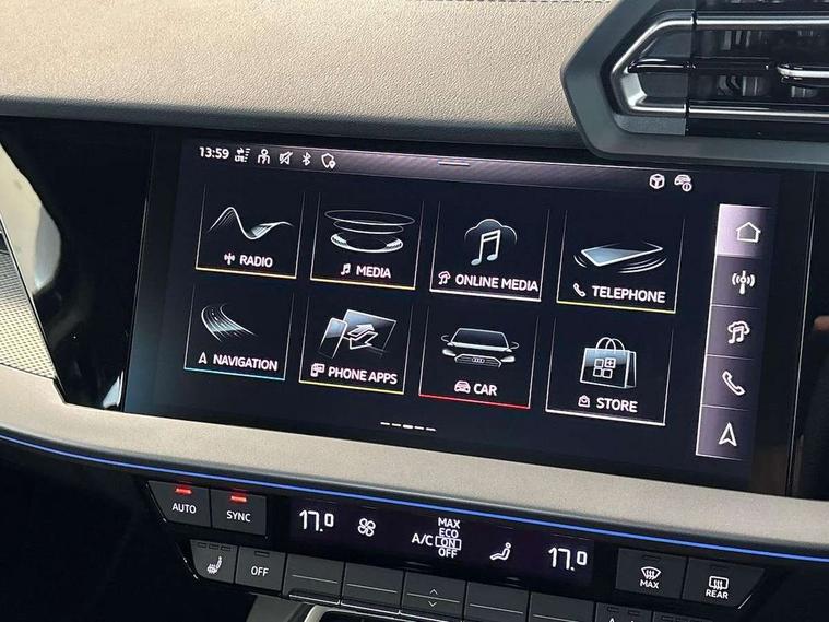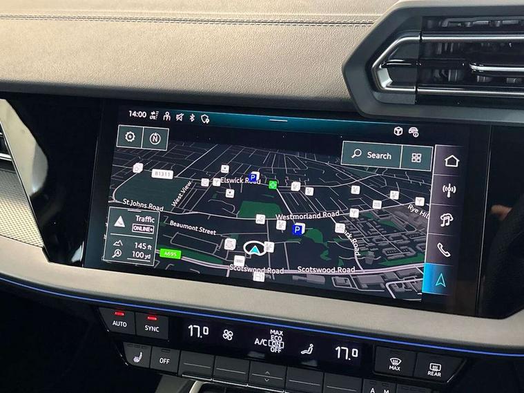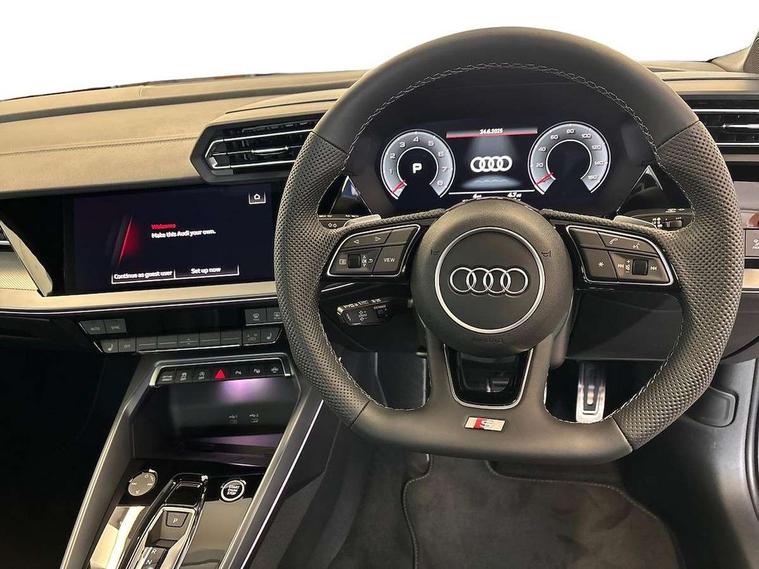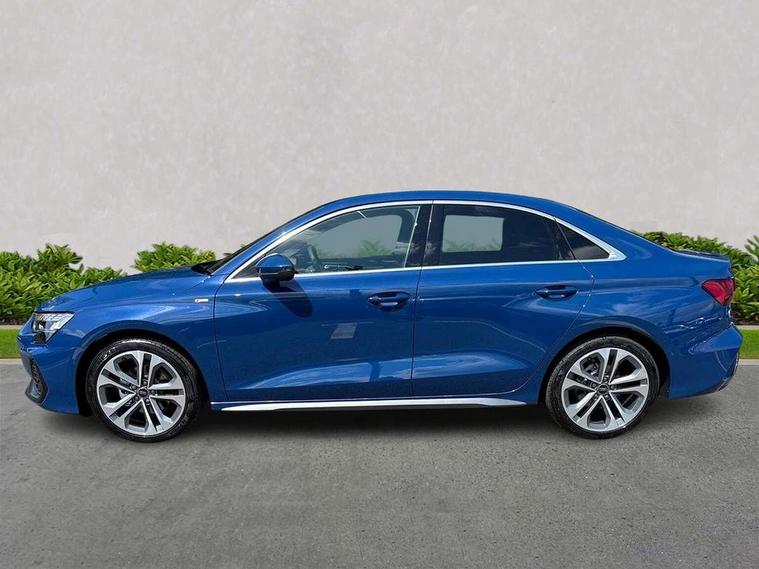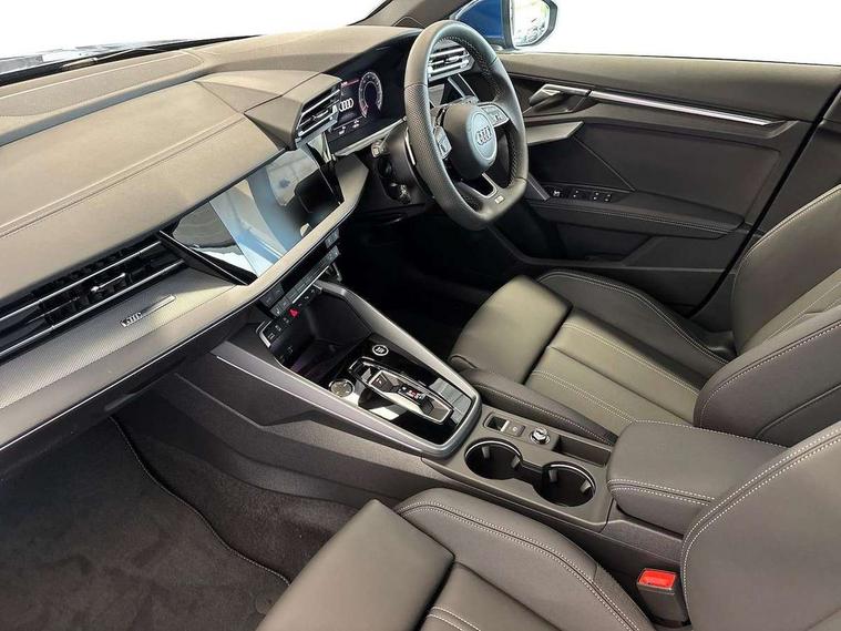 Adjustable speed limiter, Audi drive select, Audi smartphone interface with app store includes wireless Apple carplay, Android auto and Amazon alexa integration, Audi virtual cockpit plus - 12.3" full HD resolution dynamic digital instrument cluster, Automatic start/stop system with recuperation, Bluetooth interface, Camera based traffic sign recognition, Collision avoidance assistant, Cruise control, Distraction and Fatigue warning, e-Call (emergency call), Electromechanical power speed sensitive steering, Emergency assist, Lane departure warning system, MMI Navigation Plus with high resolution 10.1" colour touch screen display, Park Assist with parking system Plus, Service indicator, Trip computer, Voice control system with natural language interaction, Sports suspension, Audi Phonebox light with wireless charging, Audi sound system - 10 loudspeakers including centre loudspeaker and subwoofer, DAB Digital radio, USB ports with charging function in the rear, Acoustic glass windscreen, All weather light, Aluminium window trim, Auto dimming frameless rear view mirror, Automatic dynamic range control, Body colour exterior mirrors, Chrome exhaust tailpipes, Dipped beam, main beam, position light and turning light, Electrically adjustable/heated/folding/auto dimming door mirrors with integrated LED indications + kerb view function for passenger side, Exterior model badging, Front and rear side air inlets in grained matt black with dark liquid chrome frame, Front electric windows, Front radiator grill in high gloss dark chrome, Heat insulating glass windscreen, Illuminated door sills with aluminium inserts at the front with S logo, Intersection light, LED 3rd brake light, LED brake lights, LED daytime running x3, LED headlights with LED rear lights and dynamic rear indicators, LED rear number plate lights, LED reverse light, LED tail lights, Light and rain sensors, Manoeuvring light, Motorway light, Privacy glass - dark tinted rear window, rear door and side windows, Rear boot, Rear diffuser and grill in grained matt black with inlay in dark liquid chrome, Rear electric windows, Rear side wing doors, S line bumpers, Side S line emblems on front wings, Side sill trim in dark liquid chrome, Static cornering light, 12V socket and storage compartment in front centre console, 3 seat bench in 2nd row, 3 spoke flat bottomed leather multifunction sport steering wheel with gear shift paddles, 3-zone deluxe automatic air conditioning, 4 way electrically adjustable lumbar support for driver and front passenger, 40/20/40 split folding rear seat bench, Black cloth headlining, Black front and rear floor mats, Front and rear centre armrest in artificial leather with contrasting stitching on armrests and instrument panel, Front and rear headrests, Heated front seats, Height and reach adjustable steering wheel, Manual boot compartment lid, Manually adjustable front seats, Rear centre armrest with cupholder, S badging on the steering wheel, Seat side bolsters, Single front passenger seat, Stainless steel pedals and front footrest in black, Twin leather upholstery with front sports seats S embossed logo, Aluminium interior elements pack - A3, Multi-coloured LED interior lighting package with Multi-coloured contour lighting of instrument panel - A3, 3x3 point rear seat belts, Driver and front passenger airbag with passenger airbag deactivation, Electronic Stabilisation Control (ESC) including ABS, ASR and EDL, First aid kit with warning triangle and 2 safety vests, Front side airbags with head airbags and interaction airbag, Hill hold assist, Pre-sense front with pedestrian and cyclist detection, Seatbelt monitoring, Tyre pressure loss indicator, Anti theft alarm, Anti-theft wheel bolts, Electronically operated child locks, Immobiliser, Remote central locking with safelock, Black dashboard, Inlay in dark aluminium spectrum,