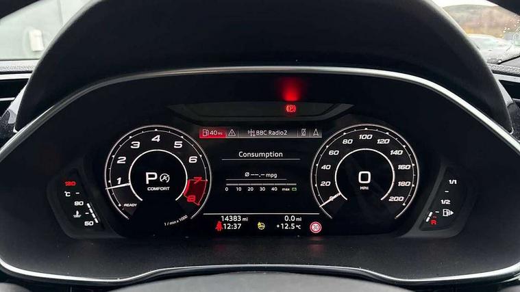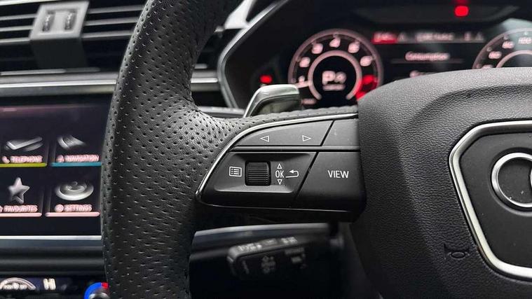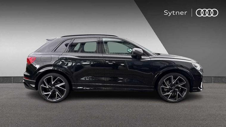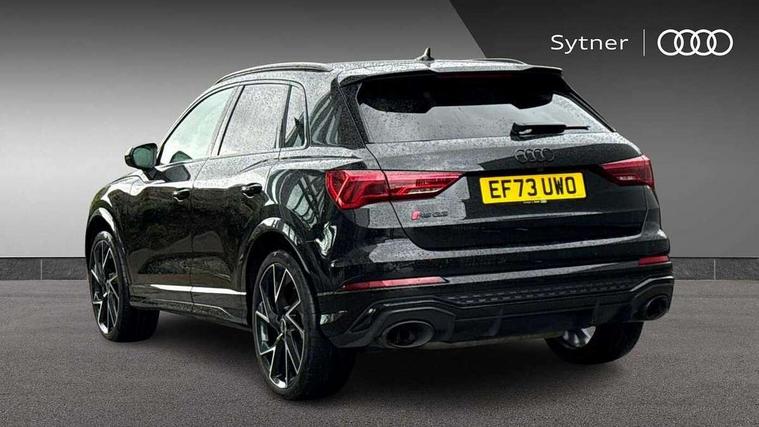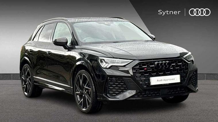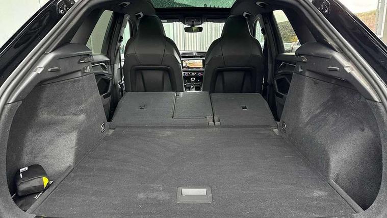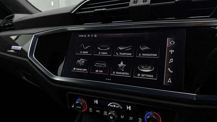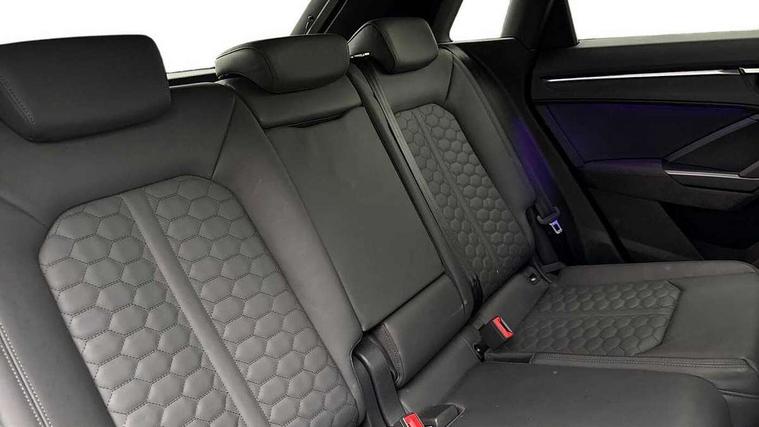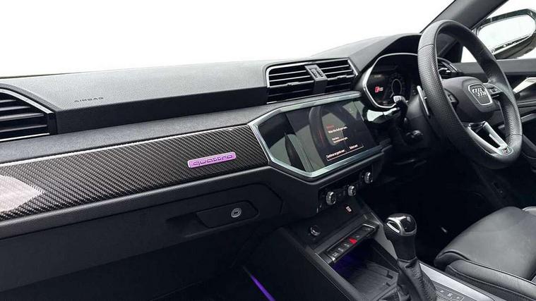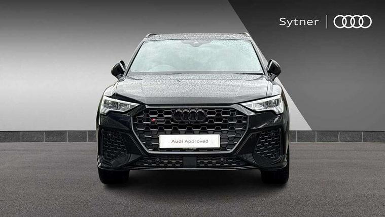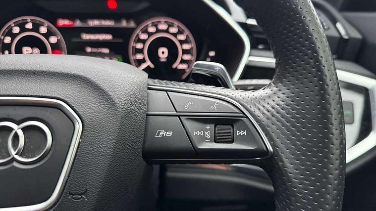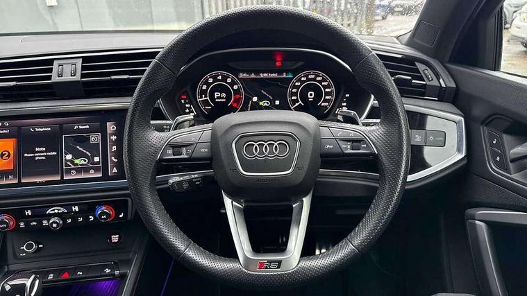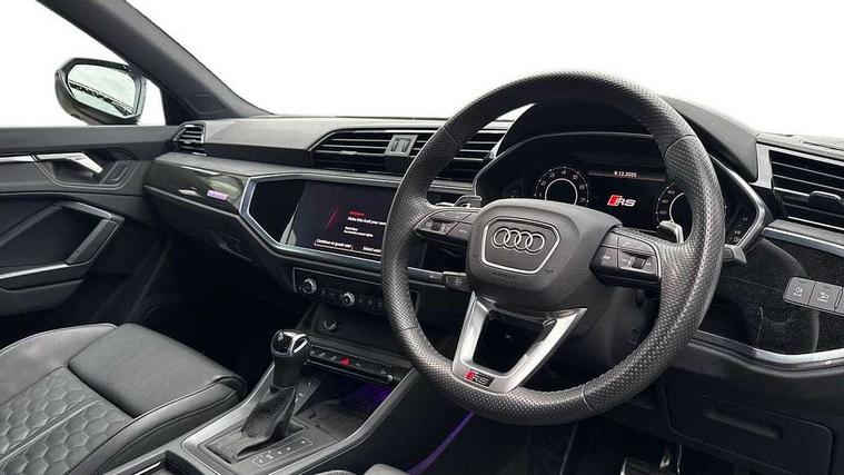 360 degree parking camera, Audi drive select with new RS modes, Audi lane departure warning, Audi parking system plus with front and rear sensors, Audi phone box with wireless charging, Audi virtual cockpit plus - 12.3 inch display, Bluetooth interface, Camera based traffic sign recognition, Emergency e-call, MMI Navigation Plus with high resolution 10.1 inch touchscreen colour display, Power operated tailgate, Progressive steering, Rear cross traffic assist, Smartphone interface includes wireless Apple carplay/Android Auto, Start stop system with recuperation, Voice control system with natural language interaction, Quattro all wheel drive, RS sports suspension plus, 2 USB-C ports with charge and data functions, DAB digital radio module, SONOS premium sound system, Acoustic windscreen, Audi Beam uses LEDs to project the Audi Sport logo, Auto dimming door mirrors, Auto dimming frameless rear view mirror, Black roof rails, Body colour rear spoiler, Carbon door mirror housings, Dark tinted Matrix LED headlights with dynamic front and rear indicators, Electrically folding, adjustable and heated door mirrors with integrated LED side indicators and kerb view function for passenger side, Flared wheel arches, Flat slits on single frame grille, Headlight washers, High gloss black finish B and C pillars, Honeycomb radiator grille in gloss black, Illuminated door sill trims with RS logo, LED daytime running lights, LED rear lights, LED third brake light, Panoramic glass sunroof, Privacy glass dark tinted rear and rear-side windows (from B-pillar backwards), Rain and light sensors, Rear side wing doors, Rear wiper, RS specific bumpers with large front air inlets in black, RS Sport exhaust system, dual branch with exhaust flap control and gloss black oval tailpipe trims, Tinted rear windows, Variable front intermittent wipers, 3 seat bench in 2nd row, 3 zone electronic climate control, 4 way electric lumbar support for driver and front passenger, 40:20:40 folding with manual adjustment for 60:40 forwards/backwards position and backrest angle, Black cloth headlining, Black dinamica elements - dashboard and the armrests in the front and rear doors, Electrically adjustable front seats, Fine nappa leather upholstery with front RS sports seats with honeycomb stitching and RS embossing, Front and rear floor mats, Front and rear head restraints, Front centre armrest, Heated front seats, ISOFIX child seat mounting for front passenger with airbag deactivation and outer rear seat including top tether attachment point for outer rear seats, Leather steering wheel (Round) in 3-spoke design with multifunction plus and shift paddles, Rear centre armrest with cupholder, Single front passenger seat, Stainless steel luggage compartment sill finisher, Stainless steel pedals, Black styling pack - RS Q3, Driver assistance pack with side assist - RS Q3, Multi-coloured extended ambient lighting pack - RS Q3, Non smoking pack - RS Q3, 3x3 point rear seatbelts, 6 airbags - Driver, front passenger, curtain and side windows, Audi pre-sense front with pedestrain and cyclist recognition, Electrically operated child locks on rear doors, Electromechanical parking brake, Electronic stabilisation control including ABS, ASR and EDL, Front seatbelt reminder, Hill descent control, Hill hold assist, Pre sense basic, RS brake system, Seatbelt monitoring, Tyre pressure warning, Warning triangle and first aid kit, Advanced key, Anti theft alarm, Anti theft wheel bolts, Immobiliser, Aluminium look interior elements, Carbon twill inlays, Detail dashboard around MMI touch colour display in glass look, black with surround in aluminium look, Tool kit, Tyre repair kit,