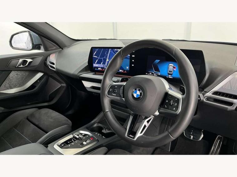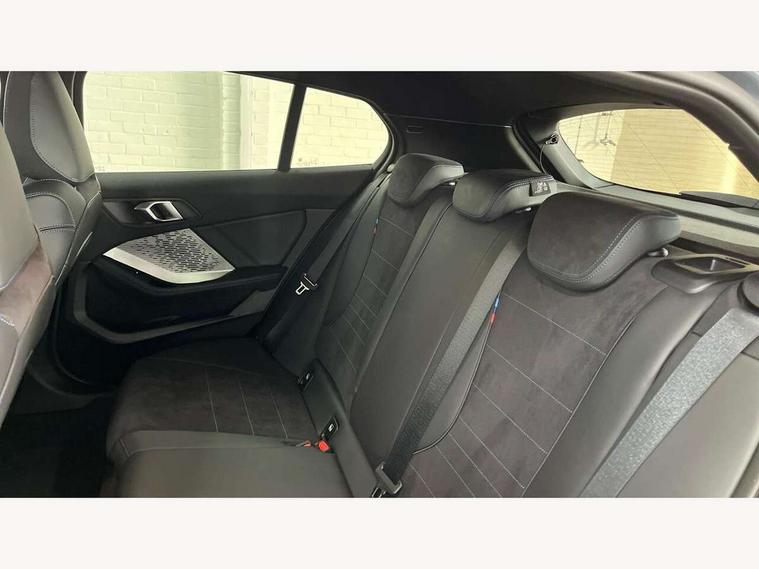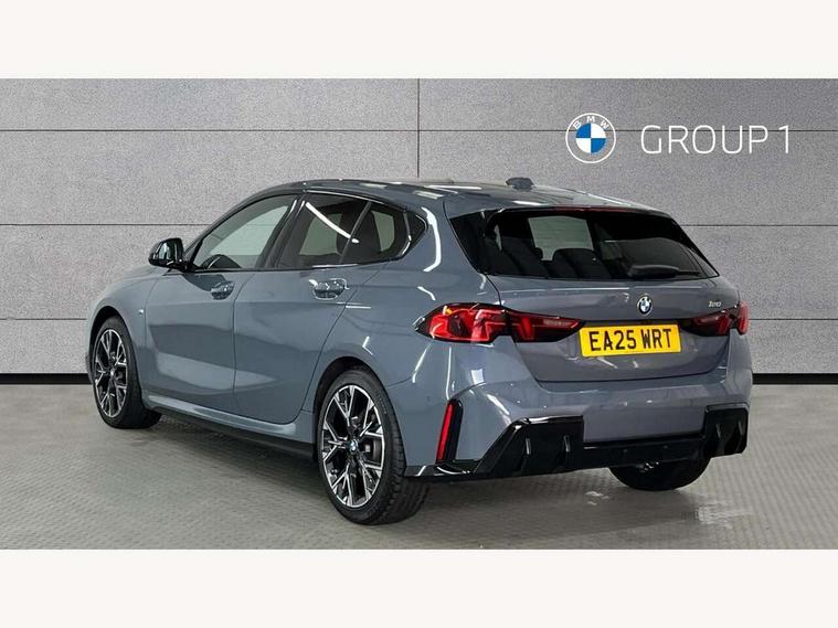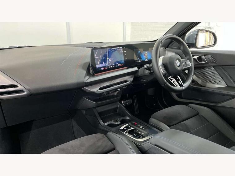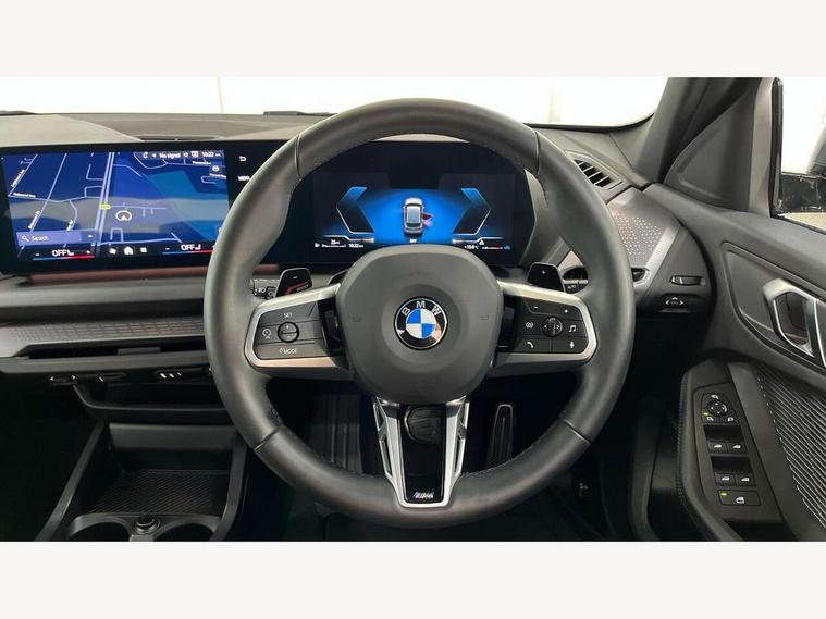 Active guard plus, Attentiveness assist, Bluetooth / WiFi interface for wireless connection of mobile terminal devices and audio streaming, BMW ConnectedDrive online services, BMW Live cockpit plus, BMW Teleservices, Check Control warning system for monitoring of lights and door/luggage compartment open warning, Eco pro mode, Electric power steering with Servotronic steering optimised at all speed ranges, Evasion assistant, Flat airvents in instrument panel with adjustable slats, Front and rear parking sensors, Front axle single joint with specific axle kinematics to minimise drive influences on steering + provide increased rigidity agile driving behaviour, Gearshift time display in manual mode, Integrated owners handbook, Left turn warning with brake function, My modes (Personal / Efficient / Sport), Oil sensor for level and grade, On board computer, Optimum shift indicator, Park assist including reversing assistant, lateral parking aid and reversing assist camera, Personal e-SIM, Personal Profile, Pull away assistant, Rigidly mounted rear subframe - Multi link construction with separate spring / damper configuration and excellent driving characteristics, Speed limit Info including no-overtaking indicator, Speed limiter, 49 litre fuel tank, Aluminium lightweight construction, Anti roll bar front and rear, Balancer shaft, Double VANOS twin scroll turbocharging system, Drive Performance Control, Electronic differential lock, Electronic selector lever, High precision injection, M Adaptive suspension, Petrol Particulate Filter, Steptronic transmission with double clutch, Twin tube gas filled shock absorbers with degressive characteristic curve, VALVETRONIC engine management, DAB Digital radio, Auto dimming rear view mirror, Automatic windscreen wipers and automatic headlight, Body colour door handles, Body colour roof trims, Chrome 'M' logo side designation, Chrome exhaust twin tailpipes round 90mm in left, Chrome kidney grille frame with Satin Aluminium struts, Direction indicator side lights in exterior mirrors, Electrically adjustable exterior mirror with mirror adjustment switch on drivers armrest and aspheric on driver side, convex on passenger side, Exterior M sport design elements, Fading support, Folding side mirrors with auto dimming/folding wing mirrors with auto dimming, Follow me home headlights, Front and rear bumper system with replaceable deformation elements, Front and rear electric windows with open and close fingertip control, anti trap facility and comfort closing, Front bumper panel with M specific design in vehicle colour with inserts in black high gloss, Front door sill finishers in black plastic with M designation in metallic look, Green tinted heat protection glazing, Heated rear window, High gloss black exterior mirrors, High gloss shadowline window frame, Recess cover mirror frames and B/C pillar embelisher trim, High level third brake light, Integrated front windscreen with washer jets, LED daytime running lights, LED eyebrow turn indicators, LED front fog lights, LED Headlights, Lightweight engineering, Matt black air guide grilles, Matt black wheel arch trim, Model badge on tailgate right, Nearside reverse light in rear light cluster, Preparation for high beam assistant, Rain sensor, Rear bumper panel with M-specific design in vehicle colour with inserts in black high gloss, Rear fog lights, Rear side wing doors, Rear window wiper, Shark fin antenna, Side sill covers with M specific design in body colour, Trailer stabilisation logic, Visible VIN plate, Welcome lighting, 12V power socket in front centre console with blanking plug, 3 rear seat head restraints, 3 seat bench in 2nd row, 3 spoke sports leather steering wheel with black leather and stitching, pearl chrome decorative finish, specific M Badge, Anthracite front and rear floor mats, Anthracite headlining, Black boot net with lashing eyes, Cargo function on 2nd seat row, Child seat ISOFIX attachment for two outer rear seats and front passenger seat with anchorage points, Conditioned based service, Driver and front passenger backrest net on rear, Driver and front passenger seat heating, Driver side folding compartment in instrument panel, Folding rear clothes hook, Footrest and pedals in black plastic, Four grab handles integrated in roof lining, Front and rear door pockets with bottle holders, Front and rear side armrest integrated into door trim, Front armrest with storage compartment, Gearshift paddles on steering wheel, Glove compartment, Height adjustable front head restraints, Luggage compartment for bag hooks on left and right, foldable luggage compartment liner and four lashing eyelets, Manual adjust steering wheel, Multi-function controls for steering wheel, Rear seat backrest with manual 60:40 split folding with 3 top tether clips integrated on rear of seat panels, Single front passenger seat, Storage compartment in centre console, Storage compartment in luggage compartment, Stowage of the parcel shelf in luggage compartment trim, Sun visors with vanity mirrors and insert tab, Two front centre console cupholders, Type C two USB ports in rear centre console, Upper retaining strap integrated into backrest rear panels, Connected pack professional - 1 Series, Interior lights pack - 1 Series, M Sport exterior styling aerodynamics pack - 1 Series, 2 tone horn, 3 point seatbelts on all seats, front pyrotechnic belt tensioners, stopper and belt force limiters, rear coded belt buckles, Airbags - Front driver/passenger, front and rear curtain head protection, front side, manual deactivation of front passenger airbag, Anti lock braking system (ABS) with brake assist, BMW emergency call, Brake drying, Braking readiness, Child proof locking system in rear door, Comfort modes, Cornering brake control, Crash sensor activating of airbags, Unlocking doors, hazard warning lights, interior light, safety battery terminal, Driver and front passenger seat belt security check, Dynamic stability control + (DSC+), Dynamic
