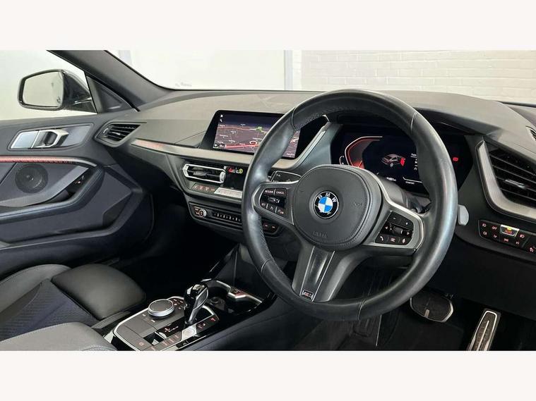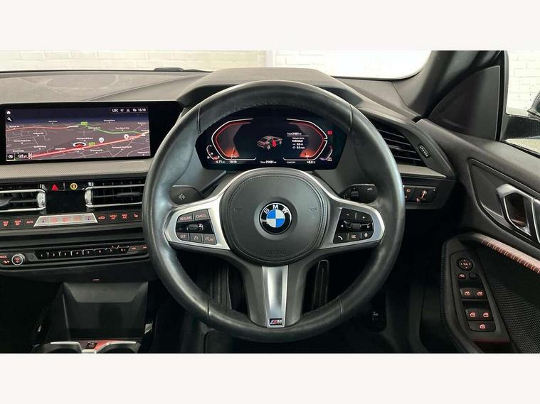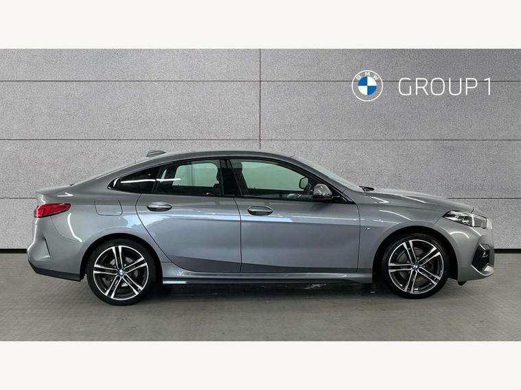 Active guard plus, Attentiveness assist, Auto start-stop, BMW Intelligent Personal Assistant, BMW Live Cockpit Professional with 10.25" high resolution instrument and control display, BMW Online services, BMW operating system with 7.0 mid interface, BMW Teleservices, Check Control warning system for monitoring of lights and door/luggage compartment open warning, Cruise control with braking function, iDrive controller with 7 short cut favourite buttons on centre console, Integrated navigation data with map data via USB +features such as 3D landmarks and micro city models, Integrated owners handbook, Intelligent voice assistant, Lane departure warning system, M Sports steering, On board computer - average speed+fuel consumption, service interval, clock/date, odometer/trip meter, outside temperature display and ice warning, Optimum shift indicator, Personal Profile, Pull away assistant, Speed limiting function, Aluminium lightweight construction, Balancer shaft, Double VANOS, Drive performance control with ECO PRO comfort + sport mode, Dual clutch automatic transmission, Electronic differential lock, High precision injection, M Sport suspension with stiffer spring/damper set-up and vehicle lowered by 10mm + twin tube gasfilled shock absorbers and Anti roll bars, Performance Control, Petrol Particulate Filter, VALVETRONIC engine management, 2x USB Type C ports (for charging and data transfer), 4G LTE Connectivity with hard wied 4G network sim card, DAB digital radio, MP3 players and RDS double tuner, Auto wipers, Automatic headlight beam throw control, Automatically dimming rear view mirror, Body colour door handles, Body colour mirror caps, Chrome 'M' logo side designation, Chrome exhaust single tailpipe, round, Direction indicator side lights integrated exterior mirrors, Electric windows - front and rear, with open/close fingertip control and trap release, Exterior mirrors - electrically folding with anti-dazzle, Fading support, Follow me home headlights, Front and rear bumper system with replaceable deformation elements, Front door sill finishers in black plastic with M designation in metallic look, Heated, electrically adjustable exterior mirror aspheric on driver side, convex on passenger side, High gloss black B pillar finish, High gloss shadow line exterior trim, High level third brake light, LED daytime running lights, LED front fog lights, LED Headlights, Lightweight engineering, Model designation on right side of tailgate, Preparation for high beam assistant, Rain sensor with automatic headlight activation, Rear boot, Rear fog lights, Rear side wing doors, Reversing light in rear light cluster, Welcome lighting, 12V power socket in centre console, 2 cupholders in front centre console, 3 rear seat head restraints, 3 rear seats, 3 spoke M sports design leather steering wheel finished in nappa leather with specific M badge, Anthracite finished floor mats with contrasting surround, Anthracite headlining, Automatic two zone climate control air conditioning, Child seat ISOFIX attachment for two outer rear seats and front passenger seat with anchorage points, Conditioned based service, Driver and front passenger seat heating, Front and rear door pockets including bottle trays, Front and rear side armrests integrated into door trim, Front armrest foldable with integrated storage compartment, Front centre interior light over interior mirror and rear centre automatic interior light when door is opened/ignition switched off or via remote key, Front head restraints, Front passenger seat, Front sports seats with electric side bolster adjustment, Glove compartment, Glovebox with light, Luggage compartment lighting, Manually adjustment steering wheel column, Multi-function controls for steering wheel, Sun visors with vanity mirrors and insert tab, Through loading system with 40/20/40 split folding rear seat, Two lashing eyes, Additional interior lighting pack - 2 Series Gran Coupe, Extended storage pack - 2 Series Gran Coupe, M Sport exterior styling aerodynamics pack - 2 Series Gran Coupe, 2 tone horn, Airbag - Front driver and passenger, front and rear head, front side, curtain head protection, manual deactivation of front passenger airbag possible, Anti lock braking system (ABS) with cornering brake control, BMW emergency call, Brake drying, Braking readiness, City braking function, Crash sensor activating of airbags, Unlocking doors, hazard warning lights, interior light, safety battery terminal, Dynamic stability control + (DSC+), Dynamic Traction Control - DTC, Electrically operated hand brake, Rear brake discs, Rear child proof door locks, Seat belt security check for driver and front passenger, Seatbelt warning, Side impact protection, Three point seat belts on all seats including front belt stopper, pyrotechnic belt tensioners and belt force limiters, Trailer stability control, Tyre pressure monitoring system, Ventilated front disc brakes, Warning triangle and first aid kit, Central locking switch for all doors, fuel filler cap and luggage compartment, Deadlocking function system to all doors, Drive away locking system on all doors and luggage compartment, Locking wheel bolts, Start/Stop button (illuminated) in centre console with keyless engine start and Auto Start-Stop deactivation button, Thatcham Cat.1 alarm and immobiliser, Two remote control key with integrated key - open/close doors/fuel flap/tailgate +1 button for unlock compartment with M design high gloss black inlay, Contrast stitching on instrument panel, 18" Burnished M double spoke bi-colour alloy wheels finished in orbit grey - style 819M, Reduced rolling resistance tyres,