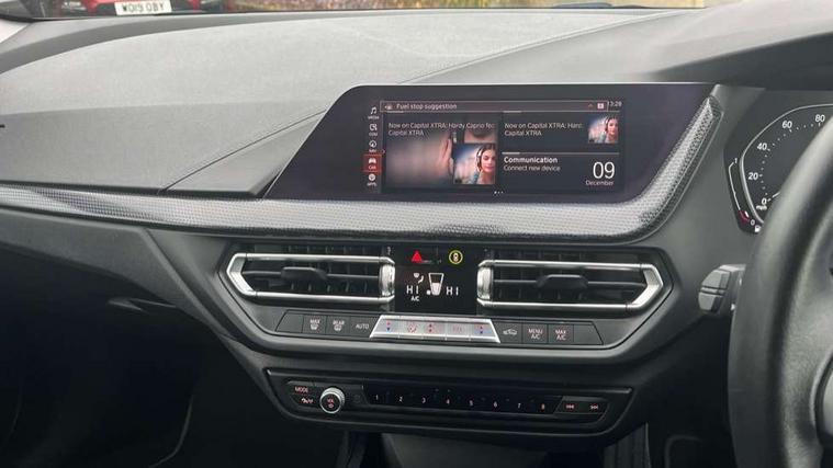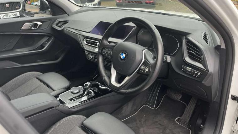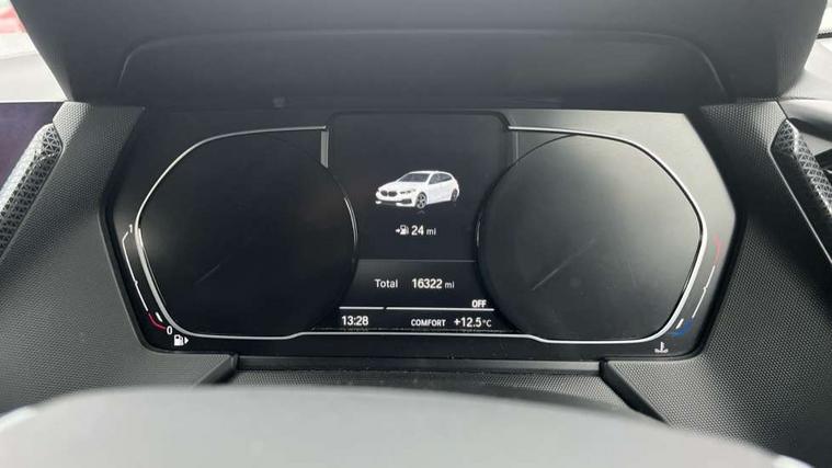 Active guard plus, Attentiveness assist, BMW Online services, BMW Teleservices, Check Control warning system for monitoring of lights and door/luggage compartment open warning, Connected eDrive Services, Eco pro mode, Electric power steering with Servotronic steering optimised at all speed ranges, Integrated owners handbook, Oil sensor for level and grade, On board computer, Optimum shift indicator, Personal Profile, Pull away assistant, Speed limiter, Aluminium lightweight construction, Anti roll bar front and rear, Balancer shaft, Double VANOS, Drive Performance Control, Electronic differential lock, High precision injection, Petrol Particulate Filter, VALVETRONIC engine management, Bluetooth audio streaming, DAB Digital radio, Auto dimming rear view mirror, Body colour door handles, Body colour mirror caps, Chrome exhaust tailpipe in single, round (Exhaust tailpipe, stainless steel - single, round), Chrome kidney grille with extra wide black, high gloss black vertical slats, Direction indicator side lights in exterior mirrors, Fading support, Follow me home headlights, Front and rear electric windows with open and close fingertip control, anti trap facility and comfort closing, Front bumper in Body colour with exclusive Sport air inlets finished in High gloss Black, Front door sill finishers in black plastic with BMW designation, Green tinted heat protection glazing, Heated, electrically adjustable exterior mirror aspheric on driver side, convex on passenger side, High gloss shadow line exterior trim, High level third brake light, LED daytime running lights, LED eyebrow turn indicators, LED front fog lights, Lightweight engineering, Manual headlight beam throw control, Matt black air guide grilles, Matt black roof moulding, B pillar finisher and wheel arch trim, Matt black window frame, Model designation on right side of tailgate, Nearside reverse light in rear light cluster, Preparation for high beam assistant, Rain sensor including auto headlights activation, Rear bumper in Body colour with exclusive Sport design elements finished in High gloss Black, Rear fog lights, Rear window wiper, Shark fin antenna, Visible VIN plate, Welcome lighting, Windscreen wipers with integrated washing jets, 12V power socket in centre console, 2 cupholders in front centre console, 3 rear seat head restraints, 3 spoke sports leather steering wheel in pearl Chrome, Child seat ISOFIX attachment for two outer rear seats and front passenger seat with anchorage points, Conditioned based service, Driver side folding compartment in instrument panel, Folding rear clothes hook, Folding rear seats, Four grab handles integrated in roof lining, Front and rear door pockets, Front and rear side armrest integrated into door trim, Front armrest foldable with integrated storage compartment, Front sports seats with electric side bolster adjustment, Glove compartment, Height adjustable front head restraints, Manual adjust steering wheel, Multi-function controls for steering wheel, Rear seat backrest with manual 60:40 split folding with 3 top tether clips integrated on rear of seat panels, Storage compartment in centre console, Sun visors with vanity mirrors and insert tab, Two zone automatic air conditioning, Velour floor mats, Connected pack professional - 1 Series, Extended storage pack - 1 Series, Interior lights pack - 1 Series, 2 tone horn, 3 point seatbelts on all seats, front pyrotechnic belt tensioners, stopper and belt force limiters, rear coded belt buckles, Airbags - Front driver and passenger, front and rear head, front side, curtain head protection, Anti lock braking system (ABS) with brake assist, BMW emergency call, Brake drying, Braking readiness, Crash sensor activating central locking release, hazard warning lights, fuel cut off, interior lighting + activation of safety battery terminal clamp, Driver and front passenger seat belt security check, Dynamic stability control + (DSC+), Dynamic Traction Control - DTC, Electrically operated hand brake, Front and rear disc brakes, Front passenger manual airbag deactivation, Rear child proof door locks, Seatbelt warning, Side impact protection, Tyre pressure monitoring system, Warning triangle and first aid kit, Automatic drive away locking facility, Central locking switch for all doors, fuel filler cap and luggage compartment, Deadlocking function system to all doors, Locking wheel bolts, Remote central locking with two Integrate key, one button for opening and closing all lock, open and close window, button for open luggage compartment, Start/stop button with comfort go keyless engine start and auto start stop deactivation button, Thatcham Cat.1 alarm and immobiliser, Contrast stitching on instrument panel, Illuminated Berlin interior trim, Reduced rolling resistance tyres,