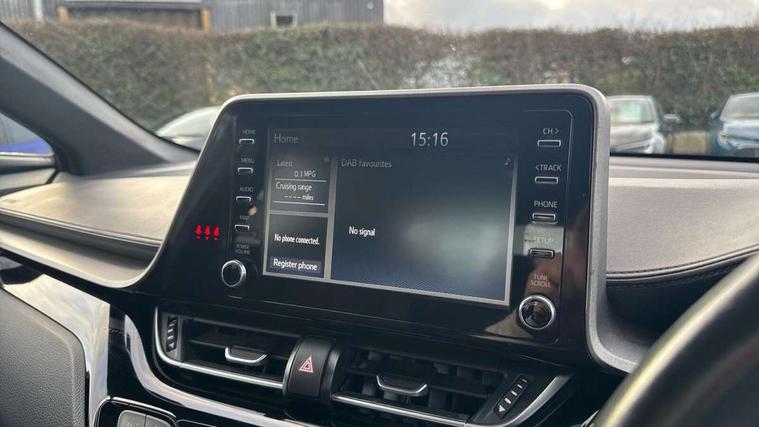4.2" coloured TFT screen for multi-information display, Adaptive cruise control, Bluetooth connectivity, E-call, Electric power steering, Hybrid system indicator, Lane departure alert with steering control, Lane trace assist, Push button start, Push button tailgate release, Remote boot door release in cabin, Remote boot door release in key, Reversing camera, Road sign assist - RSA, Smart voice assist, Trip computer, Voice recognition, Vehicle Stability Control (VSC), 6 speakers, AM/FM radio, DAB Radio (Digital Audio Broadcasting), Toyota touch 2 multimedia system with 8" display, USB connector, Wi-fi connectivity, Anti-jam protection on power windows, Auto high beam, Auto up and down function on all power windows, Automatic headlights, Automatic headlights cut-off, Black and body coloured rear bumper, Black lower front grille, Black upper front grille, Body colour door handles, Body colour door mirrors, Body colour front spoiler lip, Body coloured front bumper, Boot door release with push button, Electric heated door mirrors, Follow me home headlights, Front and rear power windows, Front fog lights, Headlight cut off reminder, Honeycomb lower front grille, LED daytime running lights, LED High mounted stop light, LED rear brake lights, LED rear combination lights, Manual headlight levelling, Manually retractable door mirrors, Noise reduction layer on front windows and windscreen, Power adjustable door mirrors, Rear side wing doors, Rear spoiler, Rear tailgate, Rear window defogger, Rear window wiper, Reflective LED headlights, Shark fin antenna, UV-filter on driver and passenger windows, UV-filter on rear windows, 12v power outlet - front, 3 rear headrests, 3 seat bench in 2nd row, 3 spoke leather steering wheel, 60/40 split folding rear seat, Adjustable rear headrests, Adjustable speed limiter switch on steering wheel, Assist grips front and centre pillar, Audio and telephone switches on steering wheel, Black front door assist grips, Boot light, Chrome interior door handles, Cloth upholstery, Driver and front passenger personal light, Driver and front passenger Whiplash Injury Lessening seats, Dual zone automatic air conditioning, Floor mats, Front cupholders, Front head restraints, Front sports seats, Glovebox with internal light, Hard tonneau cover, Hooks for luggage holding net, Humidifying Nanoe air purifier, Illuminated entry system, Isofix attachments on outer rear seats, Leather gearshift, Light on driver sun visor, Light on passenger sun visor, Manual telescopic steering wheel, Manual tilt steering wheel, Manually adjustable lumbar support on driver seat, Manually height adjustable driver seat, Manually height adjustable front passenger seat, Manually reclining driver seat, Manually reclining front passenger seat, Manually sliding driver seat, Manually sliding front passenger seat, Microphone on front personal light, Mirror on driver sun visor, Mirror on passenger sun visor, Multimedia switches on steering wheel, Pollen filter, Shopping bag hooks, Single front passenger seat, Slow opening on lower glovebox, Voice recognition switch on steering wheel, 16 Disk front wheel brake, 3x3 point rear seatbelts, ABS+EBD+Brake assist, Electronic parking brake, Front and rear seatbelt reminder, Front passenger airbag on/off switch, Hill start assist control (HAC), Pre collision system with pedestrian detection, Pre-tensioners and force limiters, Rear door child safety locks, SRS Airbags - Driver + Front passenger, front side, front and rear curtain and driver's knee airbags, Toyota safety sense, Tyre pressure monitoring system, Tyre pressure warning system, Acoustic vehicle alert system (AVAS), Glass-breaking alarm sensors, Immobiliser, Intrusion alarm, Intrusion sensor, Motion sensor alarm, Power door locks, Power passenger window lock, Remote central locking, Black lower dashboard, Black upper dashboard, Grey deco line on upper dashboard, Matte black centre console, Tyre repair kit,