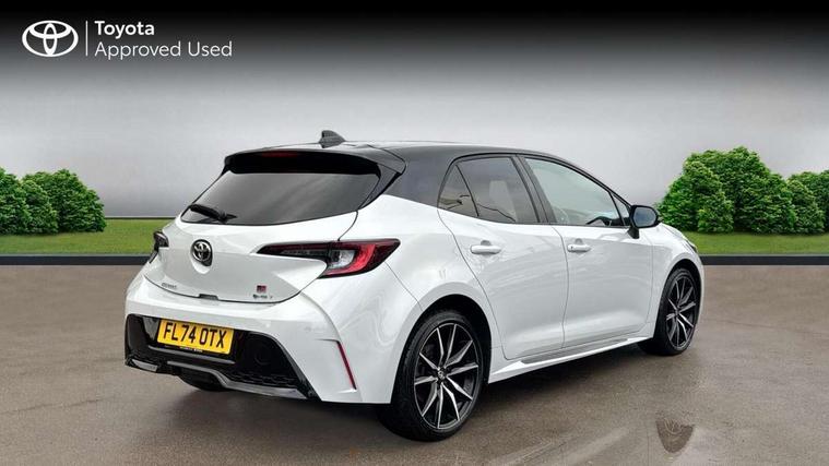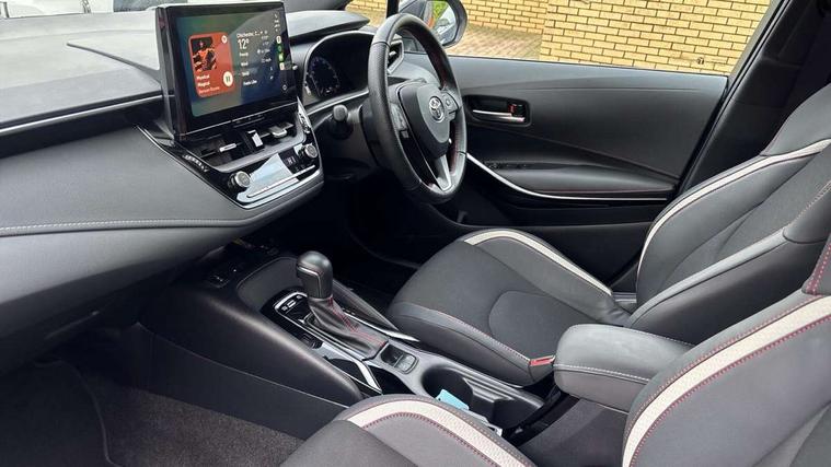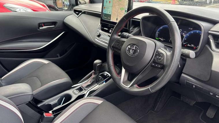 10.5" Multimedia display screen, Bluetooth telephone connectivity, Connected car functionality upgrade, tracker, remote status and e-care, Drive mode select (Eco, Normal), E-call, Electrically assisted power steering, EV drive indicator, Front and rear parking sensors with auto brake, Full Digital 12.3" TFT Digital Combimeter, Key reminder warning, Lane Departure Alert (LDA) switch on steering wheel, Memory on adjustable speed limiter, MyT connected services, Proactive driving assist (PDA), Reversing camera, Smart entry and push button start with GR Logo, Smartphone integration with Apple CarPlay and wired android auto, Tailgate, Toyota remote services, Toyota smart connect navigation, Wireless charger, Gasoline particulate filter, Vehicle Stability Control (VSC), 6 speakers, AM/FM radio, DAB Digital radio, Front USB-C in centre console, Front USB-C in dashboard, Smart voice assist/ Voice recognition, USB and Aux in connectors + 12V front outlet, Anti-jam protection on power windows, Auto up and down function on all power windows, Automatic folding mirrors, Automatic headlights with high beam assist, Black centre and side air vents, Black toyota logo in front, Body coloured bumpers, Body coloured door mirrors, Body coloured outside door handles, Dark chrome lower grille, Electrochromatic mirror, Follow me home headlights, GR Sport dark chrome front mesh grille and black rear grille, GR Sport exclusive under guard, GR sport scuff plates, LED daytime running lights, LED dual beam projector headlights, LED front fog lights, LED High mounted stop light, LED rear combi lights with LED lightguide, Manual headlight levelling system, New grille pattern, Noise reduction layer on windscreen, Piano black diffuser, Power adjustable heated door mirrors, Power front windows, Power rear windows, Privacy glass with UV filter, Rain sensing wipers, Rear side wing doors, Rear window defogger, Rear window wiper, Reverse tilting door mirrors, Rocker and door lower moulding, Roof spoiler, Satin chrome insert on front air vents, Satin chrome insert on front door assist grips, Satin silver front spoiler, Shark fin antenna, Tailgate release with push button, Time adjustment on intermittent wiper, Turning signal integrated indicators in door mirrors, Unique lower skirt, Unique side rocker with black insert, UV-filter on driver and passenger windows, 2 Shopping bag hooks in luggage compartment, 3 rear headrests, 3 seat bench in 2nd row, 3 spoke leather steering wheel with satin insert/red stitching + gear knob, 4 tie down hooks in luggage compartment, 60/40 split folding rear seat, Adaptive cruise control (ACC) switch on steering wheel, Adjustable speed limiter switch on steering wheel, Audio, multimedia and telephone switches on steering wheel, Black armrest on centre console box, Black gear shift console, Boot light, Centre room light, Driver and front passenger personal light, Driver and passenger assist grip, Driver and passenger seatback pockets, Driver and passenger sun visor with mirror and light, Dual zone automatic air conditioning with ECO mode switch, Fabric/synthetic leather upholstery, Front and rear cup and bottle holders, Front door pockets, Front head restraints, Front passenger seat, Front sliding synthetic leather armrest, GR Sports seats with partial leather bolsters, Heated seats, Illuminated entry system in room lamp, ISOFIX seat fixing (2 fixings on rear outer seats), Manual height adjustable for driver and front passenger seat, Manually tilt with sliding driver and front passenger seat, Nanoe-X air purifier, Parcel shelf, Pollen filter, Power window switches with satin chrome inserts, Rear armrest with 2 cupholders, Rear passenger coat hooks (2), Red stitching on gear shift, Remote air conditioning, Satin chrome inside door handles, Satin chrome surround on speedometer, Sliding armrest on centre console box, Slow opening glovebox with lights, Textile floor mats, Tilt/telescopic steering column, Voice recognition switch on steering wheel, Whiplash Injury Lessening (WIL) feature (active headrest) for seats, White ambient lighting on open tray and front cup holder, Toyota safety sense 3 pack - Corolla, 3x3 point rear seatbelts, Adjustable driver and front passenger seat belt extender to top anchor point, Anti lock braking system + Electronic brake force distribution, Brake assist function, Child locks on rear doors, Downhill Assist Control (DAC), Electronic parking brake, Emergency brake light signal (EBS), Front passenger airbag on/off switch, Front seatbelt reminder, HAC - Hill start assist control, Rear seat belt reminder, Seatbelt pretensioners and force limiters, Supplemental restraint system (SRS) 7 airbags - dual driver, dual side curtain, side impact and driver knee airbags, Traction control, Tyre pressure warning system, Acoustic vehicle alert system (AVAS), Alarm with motion sensor and immobilizer, Power passenger window lock, Remote central locking + deadlocks, GR Sport interior styling with accents and exterior styling, Satin chrome dash trim, Soft touch texture on upper dashboard, Stitching on lower dashboard, 18" Black machined face 10 spoke alloy wheels, Tyre repair kit, Unique wheel finish with red wheel cap,