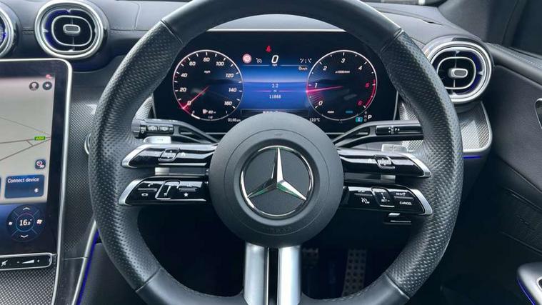 11.9" high resolution multimedia colour display, 12.3" Digital individually configurable instrument display, Acoustic presence indicator, Active lane keeping assist, Attention assist, Blind spot assist, Bluetooth interface for hands free telephone, Collision prevention assist plus, Cruise control with speedtronic variable speed limiter, Dashcam - front camera for video recording, Direct steer speed sensitive steering, DYNAMIC SELECT with a choice of driving modes (ECO, Comfort, Sport, Sport+ and Individual), eCall emergency call system, ECO start/stop function, Fingerprint scanner, Fluorescent jacket for driver, Hard disc navigation, Instrument display in miles with English lettering, MBUX augmented reality for navigation, MBUX navigation premium, MBUX voice control activated by keywords "Hey Mercedes", Mercedes me connect, Outside temperature display, Remote boot release, Remote services, Road sign recognition system, Service indicator (ASSYST), Smartphone integration, Status display for rear seat belts in instrument cluster, Traffic sign assist, Trip computer, Wireless charging, 48V Mild hybrid technology, 4MATIC permanent four wheel drive, 62 litre fuel tank, 9G TRONIC plus automatic transmission, Diesel particulate filter, Sport suspension, DAB digital radio tuner, MBUX extended functions, Mercedes benz sound system, Pre installation for Mercedes Benz Link, Adaptive brake lights, Adaptive high beam assist plus, Aluminium look running boards with rubber studs, Aluminium roof rails, AMG bodystyling front apron, rear apron and side skirts, AMG Line exterior, Auto headlights, Body colour bumpers, Body colour door mirrors, Digital light LED headlights, Electrically adjustable door mirrors, Front and rear electric windows, Headlight washers, Heat insulating dark tinted glass, Heated rear window, High level LED brake light, Integrated LED daytime running lights, LED indicator lights, LED rear fog lights, LED tail lamp, Motor way mode function and locator lighting, Noise acoustic glass, Radiator grille with Mercedes Benz pattern and integreated Mercedes star and louvre in dark grey matt with chrome inlay and black frame, Rain sensor windscreen wipers, Range adjustable headlights, Rear side wing doors, Rear wiper, Transparent Bonnet, Two chrome plated tailpipe trim elements, Variable front intermittent wipers, Welcome and follow-me home light functionality, Wider wheel arch for AMG wheels, 3 seat bench in 2nd row, 40:20:40 split folding rear seats, Ambient lighting premium, AMG line interior, Artico man-made leather upholstery, Audio and onboard settings control on multifunction steering wheel, Automatic child seat recognition sensor, Black fabric roof lining, Black floor mats with AMG lettering, Double cup holder in centre console, Easy-pack removable load compartment cover, Electrically height/reach adjustable steering column, Front centre armrest with stowage compartment, Front head restraints, Galvanised steering wheel gearshift paddles, Heated front seats, Illuminated door sill panels with Mercedes Benz lettering, Illuminated glove compartment, Instrument panel and beltlines in ARTICO manmade leather in nappa look, Multifunction sports steering wheel in nappa leather, Rear centre headrest, Rear head restraints, Rear top tether child seat ISOFIX attachment, Single front passenger seat, Sports pedals with stainless steel surfaces and rubber studs, Sports seats, Sun visors, THERMATIC 2 zone automatic climate control, Anti theft protection package - GLC, Boot comfort package - GLC, Exterior chrome package - GLC, Interior chrome package - GLC, Interior lighting pack - GLC, Keyless-Go comfort package - GLC, Memory pack - GLC, Mirror pack - GLC, Parking package with 360 degree camera - GLC, Seat comfort package - GLC, Stowage space package - GLC, USB Plus Pack - GLC, 3 rear 3 point seatbelts, Active braking assist, Anti-lock braking system (ABS), ASR traction control, Automatic front passenger airbag deactivation, Black seat belts, Brake calipers with Mercedes-Benz lettering + perforated brake discs, Braking system with larger brake discs on the front axle, Child proof door locks, Dual-stage airbags - driver and front passenger, driver knee bag and window bags for driver, front passenger and rear passengers, Electronic parking brake, Electronic stability programme (ESP) with curve dynamic assist and cross wind assist, Front and rear seatbelt reminder, Front passenger seat occupancy sensor, Front seatbelt pretensioners, Hill start assist, Tyre pressure monitoring system, Warning triangle and first aid kit, Automatic door locking, Guard 360 degree vehicle protection plus, Interior protection/immobiliser, Remote central locking, Centre console in metal structure finish, Metal structure trim, 20" AMG 5 spoke aerodynamically optimised light alloy wheels in painted black with high sheen finish, Summer tyres, TIREFIT with tyre inflation compressor,