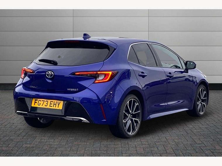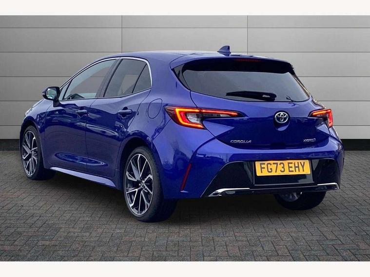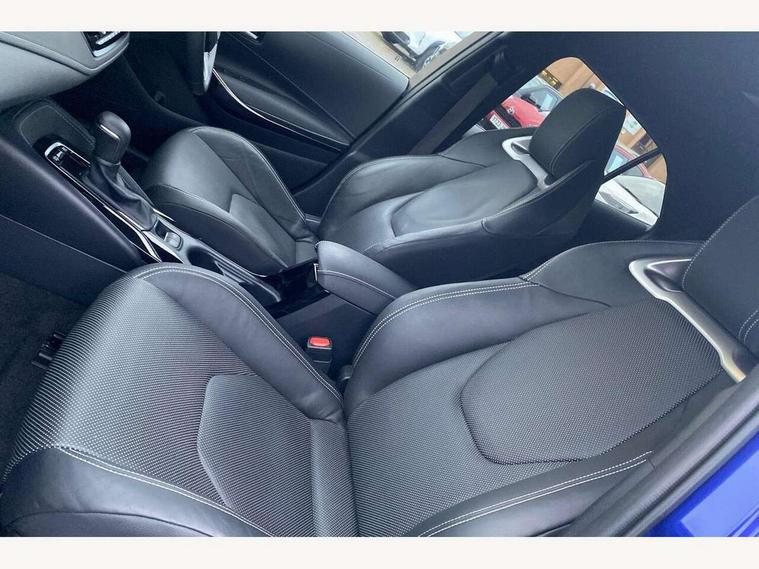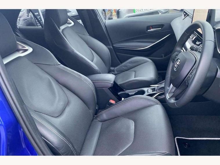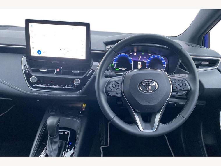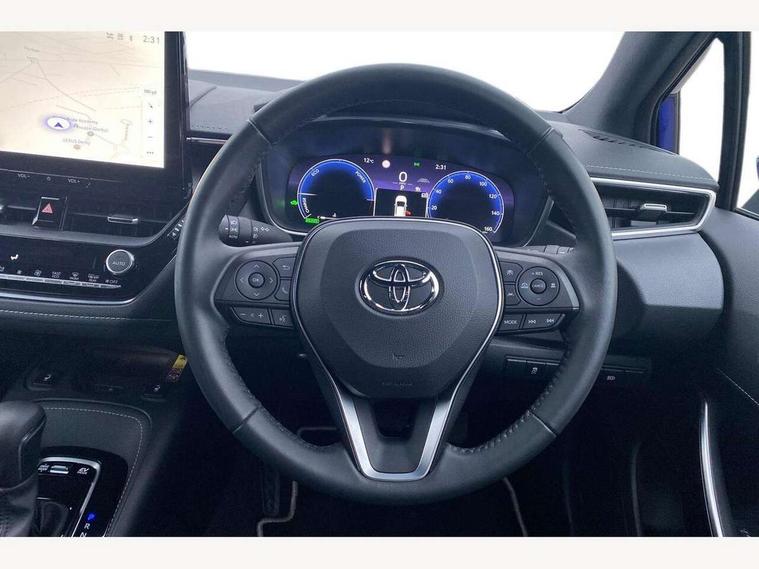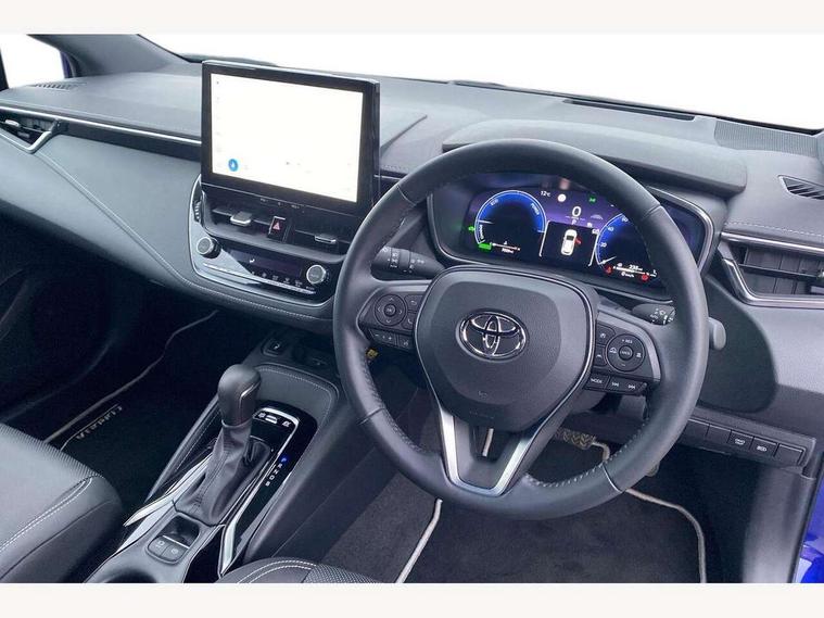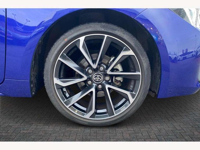 10.5" Multimedia display screen, Attention assist, Blind spot monitor and safe exit assist, Bluetooth telephone connectivity, Connected car functionality upgrade, tracker, remote status and e-care, Drive mode select (Eco, Normal), E-call, Electrically assisted power steering, EV drive indicator, Front and rear parking sensors with auto brake, Full Digital 12.3" TFT Digital Combimeter, Head up Display, Key reminder warning, Lane Departure Alert (LDA) switch on steering wheel, Memory on adjustable speed limiter, MyT connected services, Proactive driving assist (PDA), Rear cross traffic alert, Reversing camera, Smart entry and push button start, Smartphone integration with Apple CarPlay and wired android auto, Tailgate, Toyota remote services, Toyota smart connect navigation, Wireless charger, Gasoline particulate filter, Vehicle Stability Control (VSC), 6 speakers, AM/FM radio, DAB Digital radio, Front USB-C in centre console, Front USB-C in dashboard, Rear USB-C device charger, Smart voice assist/ Voice recognition, USB and Aux in connectors + 12V front outlet, Adaptive high beam system (AHS), Anti-jam protection on power windows, Auto headlight levelling system, Auto up and down function on all power windows, Automatic folding mirrors, Automatic headlights with high beam assist, Black centre and side air vents, Black metallic meshed front grille, Black toyota logo in front, Body coloured bumpers, Body coloured door mirrors, Body coloured front spoiler, Body coloured outside door handles, COROLLA alloy door scuff plates, Electrochromatic mirror, Follow me home headlights, LED daytime running lights, LED front fog lights, LED High mounted stop light, LED multi beam headlights, LED rear combi lights with LED lightguide, Noise reduction layer on windscreen, Piano black diffuser, Power adjustable heated door mirrors, Power front windows, Power rear windows, Privacy glass with UV filter, Rain sensing wipers, Rear bumper decoration with chrome plated inserts, Rear side wing doors, Rear under guard with chrome ornament, Rear window defogger, Rear window wiper, Reverse tilting door mirrors, Roof spoiler, Satin chrome insert on front air vents, Satin chrome insert on front door assist grips, Satin chrome inserts on rear passenger air vents, Shark fin antenna, Tailgate release with push button, Time adjustment on intermittent wiper, Turning signal integrated indicators in door mirrors, Unique grille pattern, Unique lower skirt, Unique side rocker with black insert, UV-filter on driver and passenger windows, 2 Shopping bag hooks in luggage compartment, 3 rear headrests, 3 seat bench in 2nd row, 3 spoke leather steering wheel with satin insert + gear knob, 4 tie down hooks in luggage compartment, 60/40 split folding rear seat, Adaptive cruise control (ACC) switch on steering wheel, Adjustable speed limiter switch on steering wheel, Audio, multimedia and telephone switches on steering wheel, Black armrest on centre console box, Black gear shift console, Boot light, Centre room light, Driver and front passenger personal light, Driver and passenger assist grip, Driver and passenger seatback pockets, Driver and passenger sun visor with mirror and light, Dual zone automatic air conditioning with ECO mode switch, Front and rear cup and bottle holders, Front door pockets, Front head restraints, Front passenger seat, Front sliding synthetic leather armrest, Heated seats, Illuminated entry system in room lamp, ISOFIX seat fixing (2 fixings on rear outer seats), Leather gear shift with satin chrome on gear shift console, Manual height adjustable for driver and front passenger seat, Manually tilt with sliding driver and front passenger seat, Parcel shelf, Perforated leather upholstery, Pollen filter, Power window switches with satin chrome inserts, Rear air conditioning, Rear armrest with 2 cupholders, Rear passenger coat hooks (2), Remote air conditioning, Satin chrome inside door handles, Satin chrome surround on heater control panel, Satin chrome surround on speedometer, Sliding armrest on centre console box, Slow opening glovebox with lights, Sports seats, Textile floor mats, Tilt/telescopic steering column, Voice recognition switch on steering wheel, Whiplash Injury Lessening (WIL) feature (active headrest) for seats, White ambient lighting on open tray and front cup holder, Toyota safety sense 3 pack - Corolla, 3x3 point rear seatbelts, Adjustable driver and front passenger seat belt extender to top anchor point, Anti lock braking system + Electronic brake force distribution, Brake assist function, Child locks on rear doors, Downhill Assist Control (DAC), Electronic parking brake, Emergency brake light signal (EBS), Front passenger airbag on/off switch, Front seatbelt reminder, HAC - Hill start assist control, Rear seat belt reminder, Seatbelt pretensioners and force limiters, Supplemental restraint system (SRS) 7 airbags - dual driver, dual side curtain, side impact and driver knee airbags, Traction control, Tyre pressure warning system, Acoustic vehicle alert system (AVAS), Alarm with motion sensor and immobilizer, Power passenger window lock, Remote central locking + deadlocks, Satin chrome dash trim, Soft touch texture on upper dashboard, Stitching on lower dashboard, Stitching on upper dashboard, 18" Dark grey machined face 5 double spoke alloy wheels, Tyre repair kit, Unique wheel finish with red wheel cap,