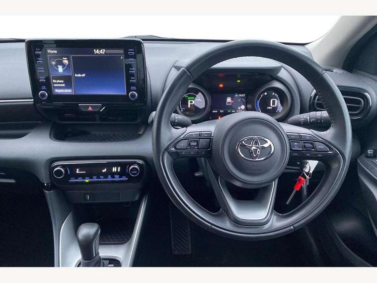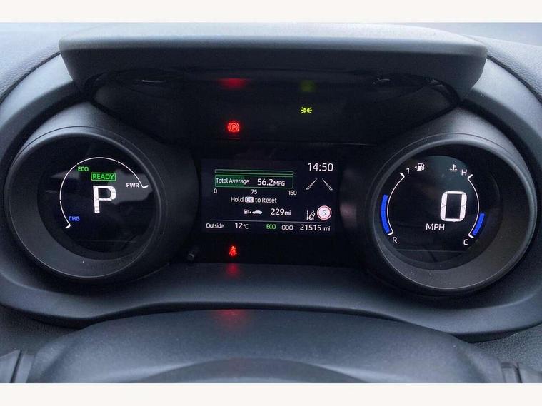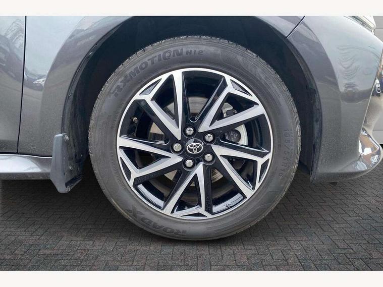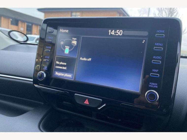 Adaptive cruise control, Adjustable speed limit with speed warning, Bluetooth connectivity, Colour binocular inspired displays with digital speedometer, E-call, Electric power steering, Hybrid energy display, Multi information display switches on steering wheel, Reversing camera, Smartphone integration with Apple CarPlay and Android auto, Voice recognition, Vehicle Stability Control (VSC), 4 speakers, 8" Multimedia display touch screen, Toyota Touch 2 with DAB, USB connection, Acoustic windscreen glass, Auto windscreen wipers, Automatic headlights, Body coloured door mirrors, Electric adjustable heated door mirrors, Follow me home headlights, Front auto power windows with anti jam protection, Full LED rear lights, LED daytime running lights, LED front fog lights, LED front light guide, LED Headlights, LED High mounted stop lamp, LED Indicators, LED rear light guide, Manual headlight levelling, Painted chequered front grille, Rain sensor, Rear auto power windows with anti jam protection, Rear privacy glass, Rear side wing doors, Rear spoiler, Rear wiper, Shark fin antenna, Turning signal integrated indicators in door mirrors, 3 adjustable rear headrests, 3 seat bench in 2nd row, 3 spoke leather steering wheel, 60/40 split folding rear seat, Adjustbale boot height, Auto air conditioning, Coat hooks in rear grab handles, Cup holders (2 front & door), Data Communication Module (DCM) connected services, Fabric upholstery, Front armrest, Glovebox, Grey roof lining, Height adjustable driver's seat, Isofix seat fixing, Leather gearshift, Pollen filter, Shopping bag hooks, Single front passenger seat, Tilt/telescopic steering column, 3 point seatbelts on all rear seats, ABS+EBD+Brake assist, Active headrests, Electronic parking brake, Emergency brake light system (EBS), Front passenger airbag on/off switch, Front seatbelt reminder, Hill start assist control (HAC), Rear child proof door locks, Rear seat belt reminder, Supplemental Restraint System (SRS) 8 airbags: Driver & passenger's airbags, dual side curtain airbags, side impact airbags, front centre airbag, Toyota Safety Sense 2, Precollison + Night time Pedestrian & Cyclist Detection, Lane Trace Assist, Auto High Beam, Intelligent ACC & Road Sign Assist, Tyre pressure warning system, 2x Master key, Alarm/immobiliser, Remote powered central double locking doors, Soft touch instrument panel, Space saver spare wheel,