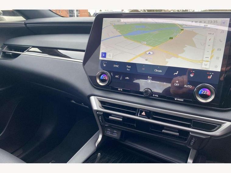 Bluetooth mobile phone connectivity, Drive mode selector, E-call, Intelligent clearance sonar, Lexus link connected services including over the air updates, MM21 Lexus link pro - 14" HD touchscreen with embedded and cloud based navigation, voice assistant, connected services, over the air and always online, Push button starter, Speed sensitive electric power assisted steering, Ultrasonic parking sensors, Wireless Apple CarPlay and wired Android Auto, Wireless Smartphone charger, E-Four Automatic transmission, Vehicle Stability Control (VSC), 12 speakers audio, 5 USB ports (3 front USB C and 2 rear USB C), DAB Digital radio, 3 projector bi-beam LED headlight with auto high beam, Auto dimming rear view mirror, Auto headlights, Front and rear one touch power windows with voice command, Front and rear silver window frame mouldings, Headlight washers, Heated, auto-folding door mirrors, auto dimming with rerverse tilt and turn indicators, L-shaped rear light bar, LED brake lights and rear lights with emergency brake signal, LED cornering headlights, LED daytime running lights, LED front and rear fog lights, LED Indicators, Power back door system, Privacy UV glass, rear doors and tailgate, Rain sensor windscreen wipers, Rear side wing doors, Rear wash/wipe, Roof rails, Variable front intermittent wipers, 12V accessory port centre console and luggage compartment, 2 cup holders in centre console, 2 way electric lumbar support for driver and front passenger, 2 x Sunvisors with vanity mirror and lamp, 3 rear headrests, 3 seat bench in 2nd row, 40:20:40 split folding rear seats, 8 way electrically adjustable front seats, Front aluminium scuff plates, Front headrests, Front tray in front of centre console, Glovebox, Heated front seats, Heated steering wheel, Lever type shft control, Manually adjustable rear seats, Power adjustable steering wheel, Rear resin scuff plates, Single colour ambient lighting, Single front passenger seat, Tahara leather steering wheel with paddle shifts, Tahara man-made leather upholstery, Textile carpet mats, Three zone climate control air conditioning system, Two way opening centre armrest with storage, 2 x Isofix child rear seat restraints, 3 point ELR front and rear seatbelts with pretensioners, ABS, Curtain shield airbags (front and rear), Driver and front passenger 2 stage airbag, Driver/front passenger side airbags, Drivers knee airbag, E-Latch with safe exit assist, EBD + Brake Assist, Electronic parking brake, Electronically controlled braking, Front and rear left/right force limiters and tension reducers, Front and rear left/right seatbelt reminders, Front centre airbag, Hill assist control, Lexus safety system+ 3 - dynamic radar cruise control, pre collision system day and night, lane tracing assist, road sign, Manual child lock in rear doors, Passenger airbag cut-off device, Traction control, Tyre pressure warning, 2 x remote key fobs, Customisable auto door lock, Motion sensor key, Smart keyless entry, Thatcham category 1 alarm + immobiliser, VIN etching, Black Inlay,