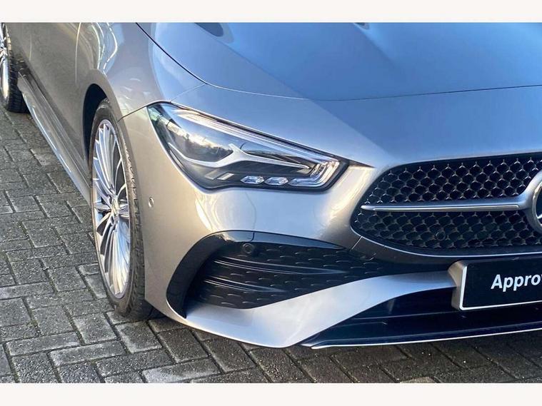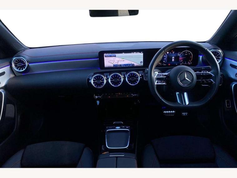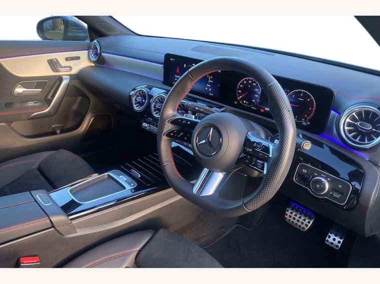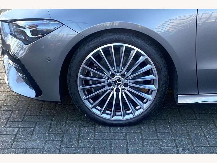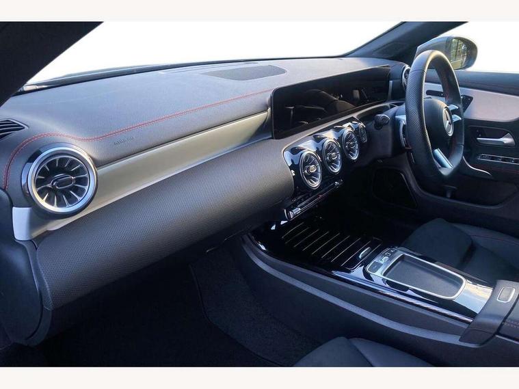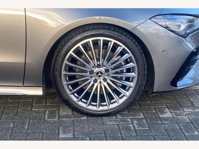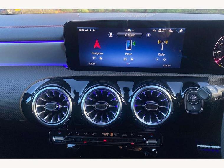 10.25 inch Instrument display with digital cockpit, 10.25 inch touchscreen central media display, Active lane keeping assist, Attention assist - Monitors steering behaviour and long journey fatigue, Blind spot assist, Bluetooth connection, Car wash mode, Cruise control with limiter, Direct steer system, DYNAMIC SELECT with a choice of driving modes (ECO, Comfort, Sport and Individual), ECO start/stop function, Fingerprint sensor, Fluid level warning indicator for fuel, oil, coolant and washer fluid, Hard-disk navigation, Hey Mercedes Voice activation, Lamp failure indicator, Mercedes me connect including emergency call system, accident recovery, breakdown and maintenance management, Mercedes me remote services, Outside temperature gauge, Owners manual in English, Pre-installation of private car share, Radio aerial integrated into front and rear windshields, Service indicator (ASSYST), Smartphone integration with Apple CarPlay and Android auto, Speed limit assist, Tailgate, Trip computer in multifunction display with current consumption indicator, Wireless charging in the front centre console, Comfort suspension with ride height lowering, Rear axle multi-link, DAB digital radio tuner, MBUX multimedia system, Mercedes Benz advanced sound system (225 W) with 10 speakers, 1 central speaker, speakers on doors, a tweeter on door, one sub woofer + boost amplifier, Pre installation for Mercedes Benz Link, Adaptive brake lights, AMG body styling with AMG front apron and rear apron and visible exhaust tailpipe in chrome trim elements, Body colour door handles, Electric windows, Electrically adjustable and heated door mirrors with integrated LED indicators, Exhaust system with 2 Visible tailpipe trim elements and rear apron with trim in chrome, Hand free access, Headlamp assist automatic headlamp activation, Heated glass rear windscreen + timer control, High level LED third brake light, Interior mirror with black reading lamps and frameless, LED high performance headlamps with integrated LED daytime running lights and adaptive highbeam assist, LED tail lamp, Privacy glass with dark tinting on rear side windows and rear window, Radiator grille with Mercedes-Benz pattern in chrome and central Mercedes star, single louvre in high-gloss black with chrome inserts, Rain sensing windscreen wipers with two sensitivity settings, Rear fog lamp, Rear side wing doors, Rear wiper, Variable front intermittent wipers, 3 seat bench in 2nd row, 3 twin spoke flattened multifunction steering wheel in nappa leather - horizontal twin spoke in high gloss black, vertical twin spoke in silver chrome, 40:20:40 split folding rear seat backrests, Air conditioning - Two zone thermotronic luxury automatic climate control with display, Air vents with surround in silver chrome, Artico man-made leather/Microcut microfibre upholstery, Automatic child seat recognition sensor, Black roof lining, Brushed stainless steel sports pedals with rubber studs, Electrically adjustable front memory seats including 4 way lumbar support, Floor mats with stitched AMG lettering, Fluorescent jacket, Front centre armrest with stowage, Galvanished gear shift paddles in silver chrome, Interior lighting - 64 colour Ambient lighting, Luggage net on driver/front passenger seat backrest, Manually height and reach adjustable steering column, Rear armrest with two integral cup holders for drinks, Rear head restraints, Single front passenger seat, Sport seats with fixed head restraints, Stowage compartment in centre console with retractable cover, Sunvisors with illuminated vanity mirrors, Twin front cupholders, Two outer rear seat isofix and top tether child seat fixing points, Keyless go comfort pack - CLA with easy pack tailgate, Light and sight pack - CLA, Mirror pack - CLA, Night package - CLA, Parking pack with reversing camera - CLA, Seat comfort pack - CLA, USB package plus - CLA, Winter pack - CLA, Active bonnet pedestrain safety measure which detects an impact and raises bonnet by 65mm, Active brake assist includes forward collision warning system with autonomous braking, Adaptive brake assist with hold function and hill start assist, Anti lock braking system (ABS) with brake assist, Bonnet with power domes, Brake calipers with Mercedes-Benz lettering, Brake pad wear warning indicator, Childproof locks manually operated for rear doors and electrically operated for rear power windows, Crash responsive emergency lighting, Crystal grey seat belts, Driver and front passenger head and sidebags, Driver and front passenger windowbags, Drivers knee airbag, Dual stage driver and front passenger airbags, Electric parking brake, Electronic stability programme with acceleration skid control, ESP curve dynamic assist, Exit warning, Front and rear seatbelt reminder, Front passenger seat occupancy sensor, Perforated front brake discs, Sports braking system, Three point rear seat belts, Tyre pressure monitoring system, Warning triangle and first aid kit, Alarm system with immobiliser and interior protection -Thatcham category 1, Guard 360 deg vehicle protection - tow away protection with visual, acoustic warning, interior monitoring, preinstallation for parking damage, Remote central locking and crash sensor with emergency opening function, Light aluminium with longitudinal grain interior trim, 19" AMG 5 twin spoke light alloy wheels painted in high gloss black with high sheen finish, Summer tyres, Tirefit tyre sealant kit,