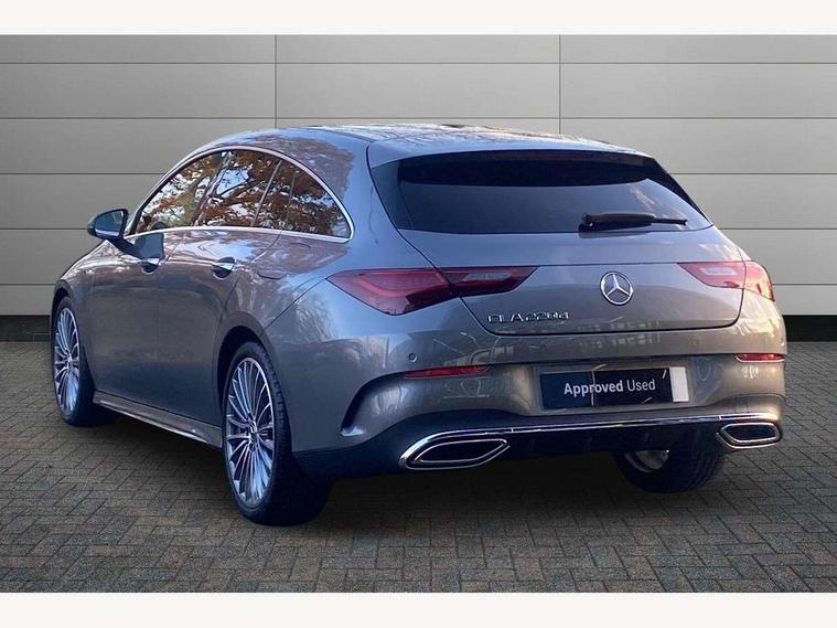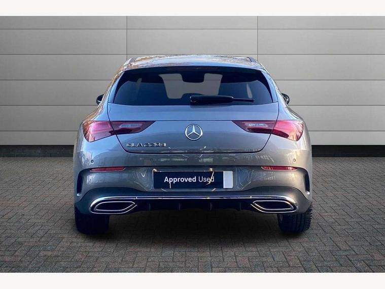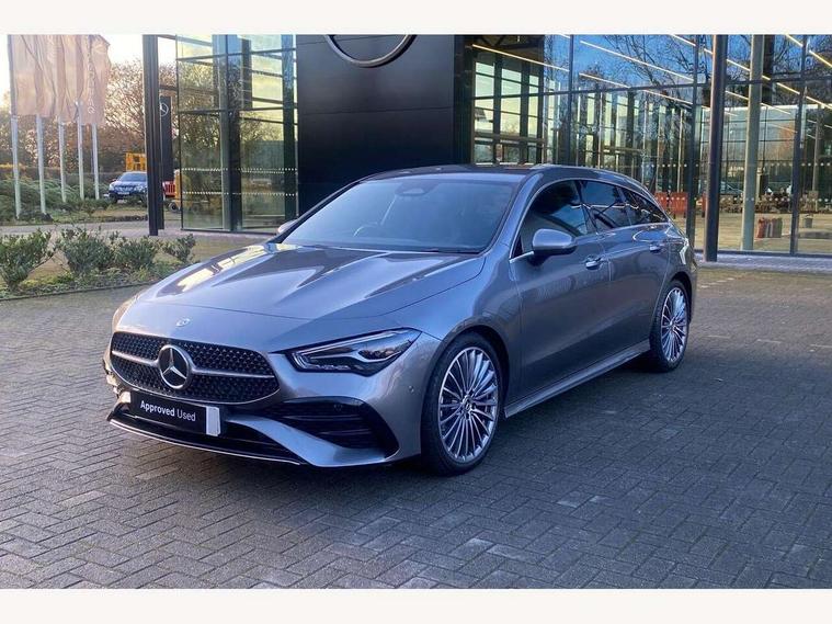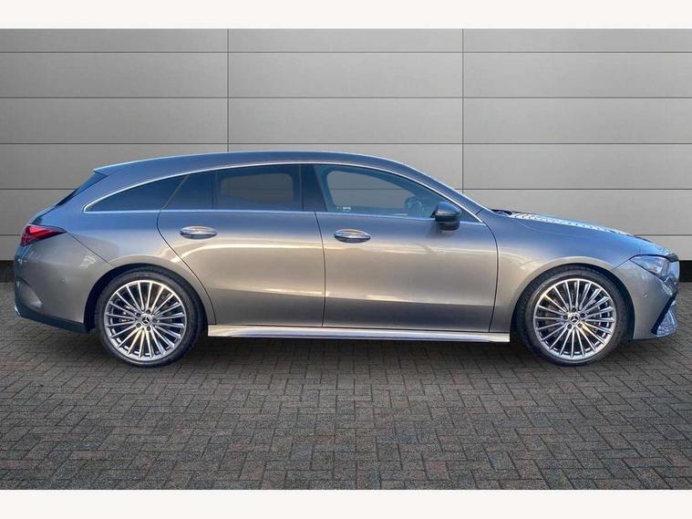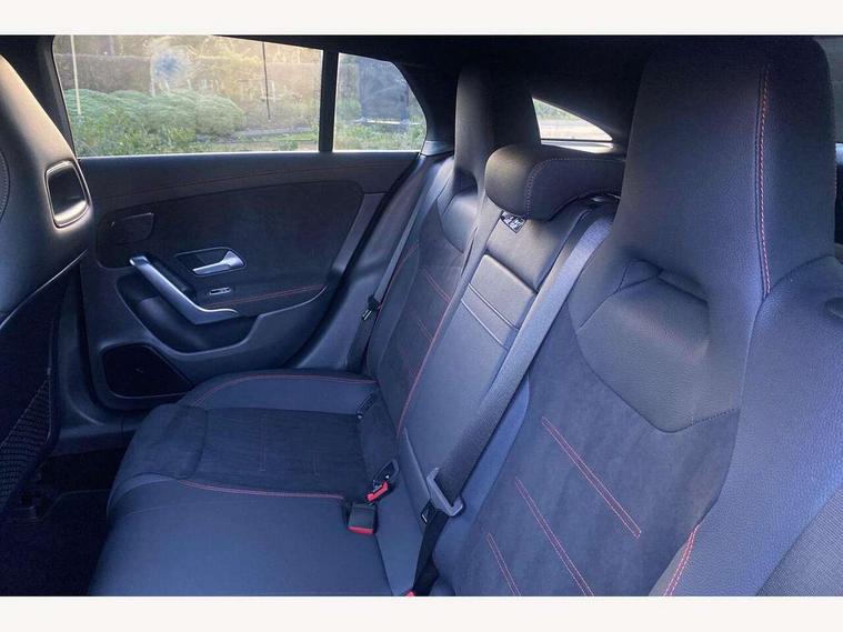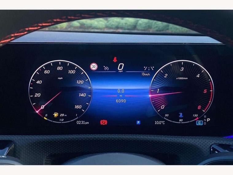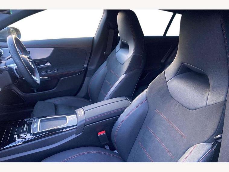 10.25 inch Instrument display with digital cockpit, 10.25 inch touchscreen central media display, Active lane keeping assist, Attention assist - Monitors steering behaviour and long journey fatigue, Blind spot assist, Bluetooth connection, Car wash mode, Cruise control with limiter, Direct steer system, DYNAMIC SELECT with a choice of driving modes (ECO, Comfort, Sport and Individual), ECO start/stop function, Fingerprint sensor, Fluid level warning indicator for fuel, oil, coolant and washer fluid, Hard-disk navigation, Hey Mercedes Voice activation, Lamp failure indicator, Mercedes me connect including emergency call system, accident recovery, breakdown and maintenance management, Mercedes me remote services, Outside temperature gauge, Owners manual in English, Pre-installation of private car share, Radio aerial integrated into front and rear windshields, Service indicator (ASSYST), Smartphone integration with Apple CarPlay and Android auto, Speed limit assist, Tailgate, Trip computer in multifunction display with current consumption indicator, Wireless charging in the front centre console, Comfort suspension with ride height lowering, Rear axle multi-link, DAB digital radio tuner, MBUX multimedia system, Mercedes Benz advanced sound system (225 W) with 10 speakers, 1 central speaker, speakers on doors, a tweeter on door, one sub woofer + boost amplifier, Pre installation for Mercedes Benz Link, Adaptive brake lights, AMG body styling with AMG front apron and rear apron and visible exhaust tailpipe in chrome trim elements, Body colour door handles, Electric windows, Electrically adjustable and heated door mirrors with integrated LED indicators, Exhaust system with 2 Visible tailpipe trim elements and rear apron with trim in chrome, Hand free access, Headlamp assist automatic headlamp activation, Heated glass rear windscreen + timer control, High level LED third brake light, Interior mirror with black reading lamps and frameless, LED high performance headlamps with integrated LED daytime running lights and adaptive highbeam assist, LED tail lamp, Privacy glass with dark tinting on rear side windows and rear window, Radiator grille with Mercedes-Benz pattern in chrome and central Mercedes star, single louvre in high-gloss black with chrome inserts, Rain sensing windscreen wipers with two sensitivity settings, Rear fog lamp, Rear side wing doors, Rear wiper, Variable front intermittent wipers, 3 seat bench in 2nd row, 3 twin spoke flattened multifunction steering wheel in nappa leather - horizontal twin spoke in high gloss black, vertical twin spoke in silver chrome, 40:20:40 split folding rear seat backrests, Air conditioning - Two zone thermotronic luxury automatic climate control with display, Air vents with surround in silver chrome, Artico man-made leather/Microcut microfibre upholstery, Automatic child seat recognition sensor, Black roof lining, Brushed stainless steel sports pedals with rubber studs, Electrically adjustable front memory seats including 4 way lumbar support, Floor mats with stitched AMG lettering, Fluorescent jacket, Front centre armrest with stowage, Galvanished gear shift paddles in silver chrome, Interior lighting - 64 colour Ambient lighting, Luggage net on driver/front passenger seat backrest, Manually height and reach adjustable steering column, Rear armrest with two integral cup holders for drinks, Rear head restraints, Single front passenger seat, Sport seats with fixed head restraints, Stowage compartment in centre console with retractable cover, Sunvisors with illuminated vanity mirrors, Twin front cupholders, Two outer rear seat isofix and top tether child seat fixing points, Keyless go comfort pack - CLA with easy pack tailgate, Light and sight pack - CLA, Mirror pack - CLA, Night package - CLA, Parking pack with reversing camera - CLA, Seat comfort pack - CLA, USB package plus - CLA, Winter pack - CLA, Active bonnet pedestrain safety measure which detects an impact and raises bonnet by 65mm, Active brake assist includes forward collision warning system with autonomous braking, Adaptive brake assist with hold function and hill start assist, Anti lock braking system (ABS) with brake assist, Bonnet with power domes, Brake calipers with Mercedes-Benz lettering, Brake pad wear warning indicator, Childproof locks manually operated for rear doors and electrically operated for rear power windows, Crash responsive emergency lighting, Crystal grey seat belts, Driver and front passenger head and sidebags, Driver and front passenger windowbags, Drivers knee airbag, Dual stage driver and front passenger airbags, Electric parking brake, Electronic stability programme with acceleration skid control, ESP curve dynamic assist, Exit warning, Front and rear seatbelt reminder, Front passenger seat occupancy sensor, Perforated front brake discs, Sports braking system, Three point rear seat belts, Tyre pressure monitoring system, Warning triangle and first aid kit, Alarm system with immobiliser and interior protection -Thatcham category 1, Guard 360 deg vehicle protection - tow away protection with visual, acoustic warning, interior monitoring, preinstallation for parking damage, Remote central locking and crash sensor with emergency opening function, Light aluminium with longitudinal grain interior trim, 19" AMG 5 twin spoke light alloy wheels painted in high gloss black with high sheen finish, Summer tyres, Tirefit tyre sealant kit,