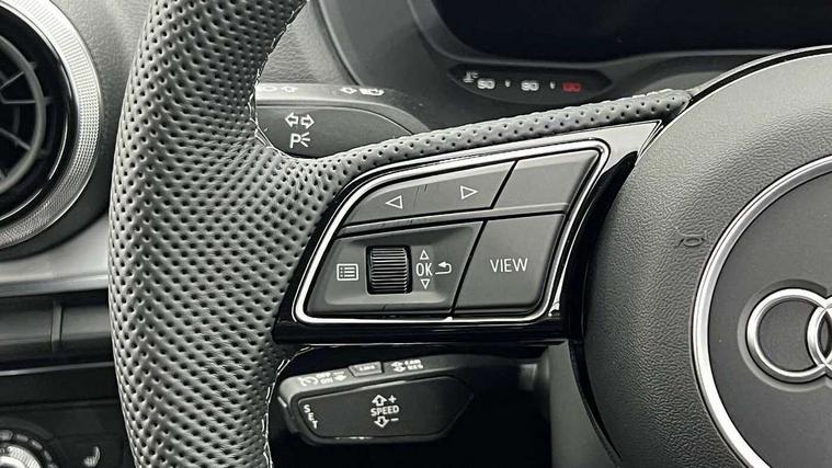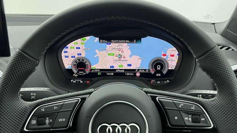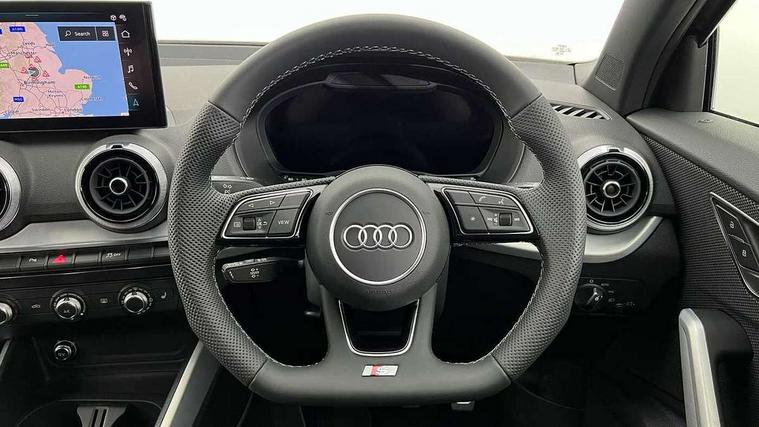 3D map display, Audi connect navigation and infotainment includes innovative services, Audi connect remote and control connects your vehicle to your smartphone, Audi drive select: power steering assistance + engine (modes: comfort, auto, dynamic, individual), Audi smartphone interface - Apple carplay/Android Auto, USB connect, 2xSDXC card readers, voice control for navi, telephone, music and 3rd party apps, Audi virtual cockpit, Automatic start/stop system with recuperation, Bluetooth interface includes bluetooth audio streaming, Camera based traffic sign recognition, Cruise control, Distraction and Fatigue warning, E-call, Jukebox hard drive memory for music (10GB), Lane departure warning, MMI navigation plus with 8.8" touchscreen, Natural voice recognition, Power operated tailgate, Progressive steering, Rear parking sensors, Sport suspension, 6 passive loudspeakers, DAB Digital radio, USB type C port, Audi beam, Auto dimming rear view mirror, Black window trims, Bumper in full body colour paint finish, Electrically adjustable, folding, auto dimming and heated door mirrors with integrated LED side indicators, Front windscreen with grey tinted sunband, LED daytime running lights, LED headlights with dipped beam, high beam, position lights, indicators, LED rear lights, LED third brake light, Privacy glass - dark tinted rear and rear side windows from B-pillar backwards, Rear side wing doors, Rear wiper, Variable front intermittent wipers, Wheel arch trims in manhattan grey, 12V socket in front, 3 seat bench in 2nd row, 3 spoke flat bottomed multi-function leather sport steering wheel, 4-way electric lumbar support for front seats including manual seat height adjustment for both front seats, 60/40 split folding rear seat bench, Black carpets, Black cloth headlining, Front and rear head restraints, Front centre armrest, Front sport seats, Front/rear floor mats, Height/reach adjust steering wheel, Illuminated door sill trims with S logo, ISOFIX child seat mounting in front passenger and rear outer seats, Manual air conditioning, Single front passenger seat, Stainless steel pedals, Black styling pack - Q2, 3x3 point rear seatbelts, 6 airbags - Front, curtain and front side airbags, Electromechanical parking brake, Electronic stabilisation control including ABS, ASR and EDL, Front passenger airbag deactivation, Hill hold assist, Pre-sense front with pedestrian recognition, Seatbelt monitoring, Tyre pressure warning light with visual and acoustic warning, Warning triangle and first aid kit, Anti theft alarm, Anti theft wheel bolts, Electronically operated child locks, Remote central door locking, Aluminium interior element, Black dashboard, Gloss black centre console, Matt brushed aluminium trim inlays, Tool kit,