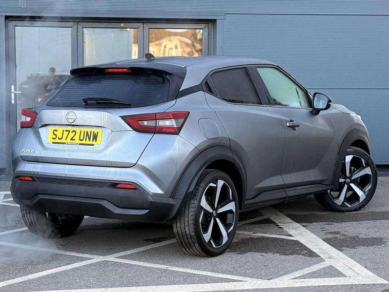 7" full colour TFT screen combimeter, Apple CarPlay and Google Android auto, Drive modes select (Eco, normal and sport), Emergency and breakdown call, Front parking sensor, Idle start/stop system, Intelligent lane intervention, Lane departure warning system, Nissan connect 8" touch screen entertainment system, Nissan connect nav with TomTom traffic, Nissan connect services and Wifi connection, Outside temperature sensor, Power Steering, Rear parking sensor, Traffic sign recognition, Trip computer, Voice recognition, Gasoline particulate filter, 10 Bose speakers 6 speakers and 2 headrest speakers for driver/passenger seats, Bluetooth system, USB, Aux-in and 12V socket, Bose personal sound stage control, DAB Digital radio, Rear console USB port, Auto dimming interior rear view mirror, Auto headlights, Automatic hazard signal with emergency stop signal, Body colour bumpers, Body colour door handles, Electrically adjustable door mirrors with integrated indicators, Follow me home headlights, Front and rear electric window with one touch driver window, Heated and auto folding door mirrors, High beam assist, LED daytime running lights, LED front fog lights, LED headlamps, LED rear fog lamp, LED rear lamps, Rain sensor windscreen wipers, Rear privacy glass, Rear side wing doors, Rear wiper, Thermaclear heated windscreen, Three blink turn signal, 3 height adjustable rear headrests, 3 seat bench in 2nd row, 60/40 split folding rear seat, Automatic climate control, Card holder on driver sunvisor, Door ambient lighting, Driver and passenger sliding and reclining seats, Driver seat back pocket, Driver side rear coat hanger, Driver/passenger sunvisors and vanity mirrors, Front and rear cabin lights, Front armrest, Front door pockets with bottle holders, Front head restraints, Front passenger isofix child seat anchorage point, Front/rear passenger grab handles, Gear console ambient circle lighting, Grey synthetic leather kneepad, Heated front seats, Height adjustable driver's seat, Height adjustable passenger seat, Internal chrome door handles, Leather gearshift knob, Leather steering wheel, Luggage board, Luggage space lighting, Monoform sporty seats, Multifunction steering wheel, Passenger seat back pocket, Rear door bottle holders, Single front passenger seat, Synthetic leather upholstery, Telescopic steering wheel adjustment, Two cupholders in front centre console, Two rear isofix child seat anchorage points with top tether, Welcome light and console tray ambient lighting, Advanced safety shield pack - Juke, ABS with EBD and brake assist, Active ride control, Active Trace Control, Driver and passenger airbags, Driver and passenger side airbags, Electric handbrake with auto hold function, Electronic Stability Programme (ESP), Front and rear curtain airbags, Height adjustable seatbelts, Hill start assist, Intelligent emergency braking with pedestrian and cyclist recognition, Rear door child safety locks, Seatbelt reminder for driver/front passenger and rear seats, Single tone horn, Three 3 point rear seatbelts, Traction control, Tyre pressure monitoring system, VDC Dynamic Vehicle Control, Ventilated rear brake discs, Alarm, Immobiliser, Intelligent key and start push button with walk away lock and approach unlock functions, Remote central locking,
