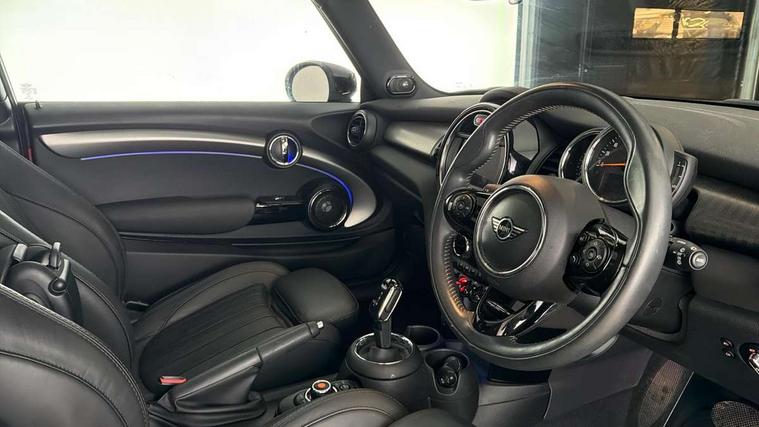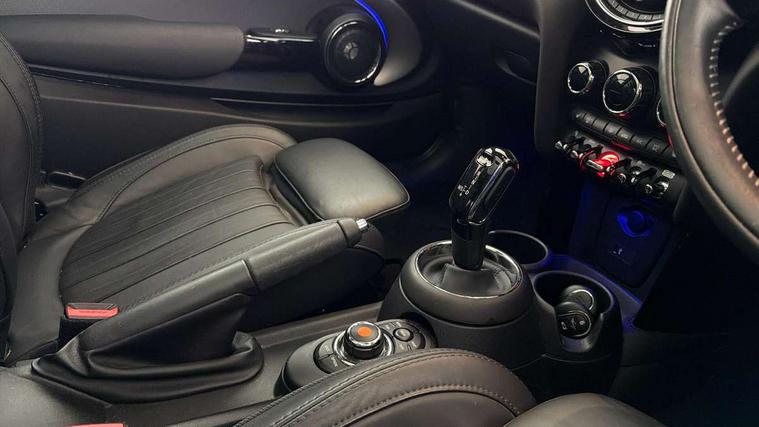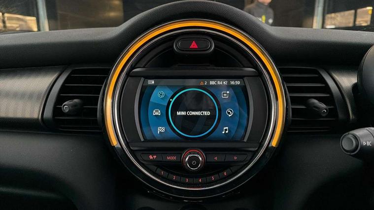 Automatic start/stop function with brake energy recuperation, Compatible mobile phone bluetooth with audio streaming, Electro-mechanical speed dependant steering assistance, Instrument cluster, Mini E-call, MINI TeleServices, On board computer, Service interval indicator, Double Vanos system, Fully variable valve control, Gear change indicator display, High precision injection, Steptronic transmission with double clutch, 6.5" touchscreen with LED ring, FM tuner and DAB digital radio, Automatic headlight activation switch, Body colour fuel filler cap, Chrome border high gloss black slats radiator grille, Chrome line exterior, Dynamic brake lights, Electric front+rear windows, Heated rear window, Heated windscreen washer jets, LED headlight with closed ring and daytime driving lights, Left exhaust tailpipe with chrome finisher, Metal door sill strips with MINI imprint, Model logo Cooper on right of tailgate, Radiator grille bars, tailgate handle, lower front grille grating, rear central fog light in chrome, Rain sensor window wipers, Rear fog lights, Rear LED lights with union jack design, Rear window wiper, Side scuttle panel with integrated indicator, Sun/heat protection glass, White indicator lenses, 12V Accessory socket in centre console, 4 lashing eyes in luggage compartment, 60/40 split folding rear seat, Air vents, gear lever base, speakers in doors, door handles in chrome, Carbon Black colour line, knee roll and door armrests, Chrome interior highlights, Cupholders, Front and rear head restraints, Front and rear isofix with front passenger airbag deactivation, Glove compartment, Height and length steering column adjustment, Interior lighting with 12 basic colours selectable via toggle switch in roof, Leather gearshift lever and handbrake gaiters, LED reading lights, vanity mirror lights, front foot well light and spotlight on front seats, Manual air conditioning, Mechanical seat adjustment, driver seat height adjust, forward/back and front seats backrest, Mini logo projection on floor from drivers exterior mirror, MINI Yours leather steering wheel with silver contrasting stitching with MINI Yours badge, Multifunction steering wheel, Storage compartments in doors, Sunvisors with vanity mirrors, 3 point seatbelts on all four seats, 6 Airbags - front, side, head and seat belt tensioners, Anti-lock braking system (ABS), DSC - Dynamic Stability Control, Front and rear disc brakes, Hill start assist, Single tone fanfare horn, Tyre pressure monitoring system, Alarm system with tilt sensor, monitoring doors, bonnet interior and tailgate, Electronic vehicle immobiliser, Start/stop toggle with keyless go, Chrome line interior, Tool kit,