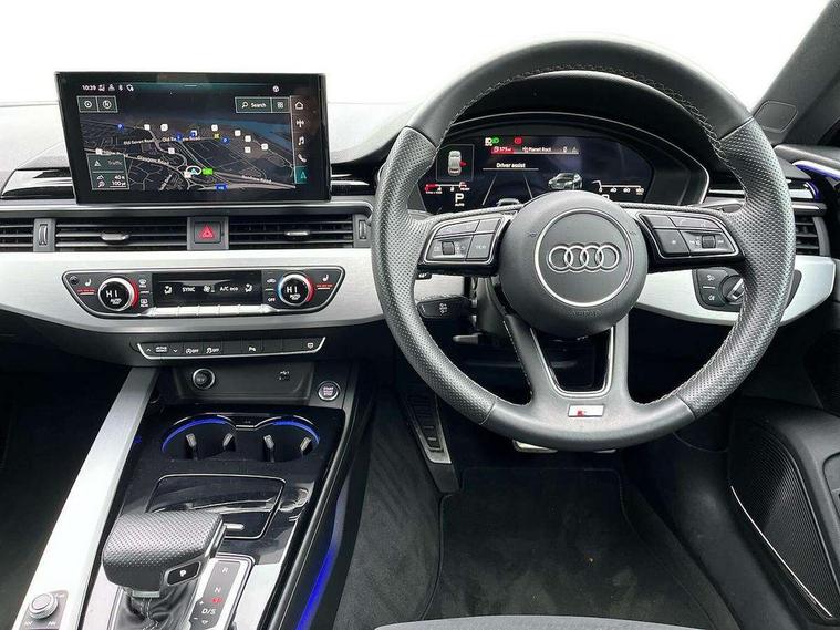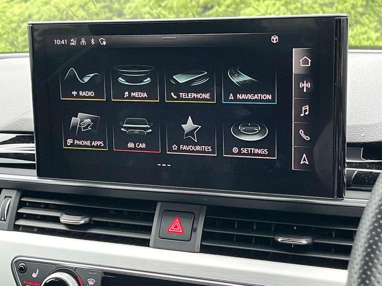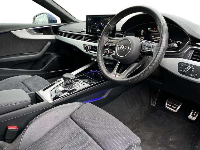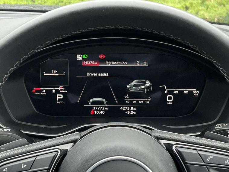 Audi connect safety and service (e-call), Audi connect with Amazon Alexa Integration, Audi drive select (Auto, Comfort, Dynamic, Efficiency and Individual), Audi parking system plus with front and rear sensors, Audi smartphone interface, Audi virtual cockpit - 12.3" full colour digital instrument cluster, vehicle/engine speed, Radio/media information+Driver assistance systems, Automatic start-stop system with coasting functionality and efficiency programme, Bluetooth interface, Electro-mechanical power steering, Email, calendar and text messages displayed via MMI, MMI nav+ with MMI touch - 10.1" high resolution MMI display, touch sensitive, 3D map, route/country info, dynamic route guide, personal route assist, Power operated tailgate, Rear view camera, Service interval indicator, Voice control system, Diesel particulate filter, Sports suspension lowered by 23mm, 8 passive loudspeakers, CD player, DAB digital radio reception, Two additional USB ports for rear passenger in rear centre console, Two SDXC card slots, Audi matrix LED headlights with LED rear lights + dynamic front and rear indicators, Auto dimming door mirrors, Auto dimming rear view mirror, Body colour bumpers, Body colour door handles, Body colour front spoiler lip, Body colour side sill trim, Body coloured door mirrors, Electric adjustable heated door mirrors, Electric folding door mirrors, Electric front windows, Front fog lights, Honeycomb structure radiator grille in grained matt black, Kerb-view function for passenger side, LED daytime running lights, LED side indicator lights integrated into door mirrors, LED third brake light, Matt aluminium silver tailpipe trim, Privacy glass, Rain and light sensors, Rear side wing doors, S line badges on front wings, S line front and rear bumpers with side skirts, S Line rear diffuser in matt titanium black with trim strip in matt aluminium silver, Side air inlets in grained matt black with matt aluminium silver inlay, Variable front intermittent wipers, Windscreen with acoustic glazing, 3 seat bench in 2nd row, 4 way electric lumbar support for driver and front passenger, 40/20/40 split folding 3 seater rear bench seat, Adjustable steering column, Black cloth headlining, Black perforated leather gearknob, Contrast stitching on seats, steering wheel and gear lever gaiter, Deluxe 3 zone electronic climate control, Front centre armrest, Front head restraints, Front/rear floor mats, Heated front seats, Illuminated door sill trim with S logo, ISOFIX child seat mounting and top tether, Luggage compartment mat, Manual seat adjustment, Rear centre armrest, Rear headrests, Single front passenger seat, Stainless steel pedals, Sunvisors with vanity mirrors, LED interior light pack - A5/RS5, 3x3 point rear seatbelts, 6 airbags - Driver, front passenger, curtain and side airbags, Electromechanical parking brake, Electronic Stabilisation Control (ESC) including ABS, ASR and EDL, Front passenger airbag deactivation, Height adjustable front seatbelts, Hill hold assist, Manual child lock in rear doors, Multi collision brake assist, Pop-up bonnet for pedestrian protection, Pre sense city, Seatbelt monitoring, Tyre pressure warning, Variable restraint system, Warning triangle and first aid kit, Anti theft alarm system, Anti theft wheel bolts, Immobiliser, Keyless Go, Remote central locking, Matt brushed aluminium inlays, Tool kit, Tyre repair kit,